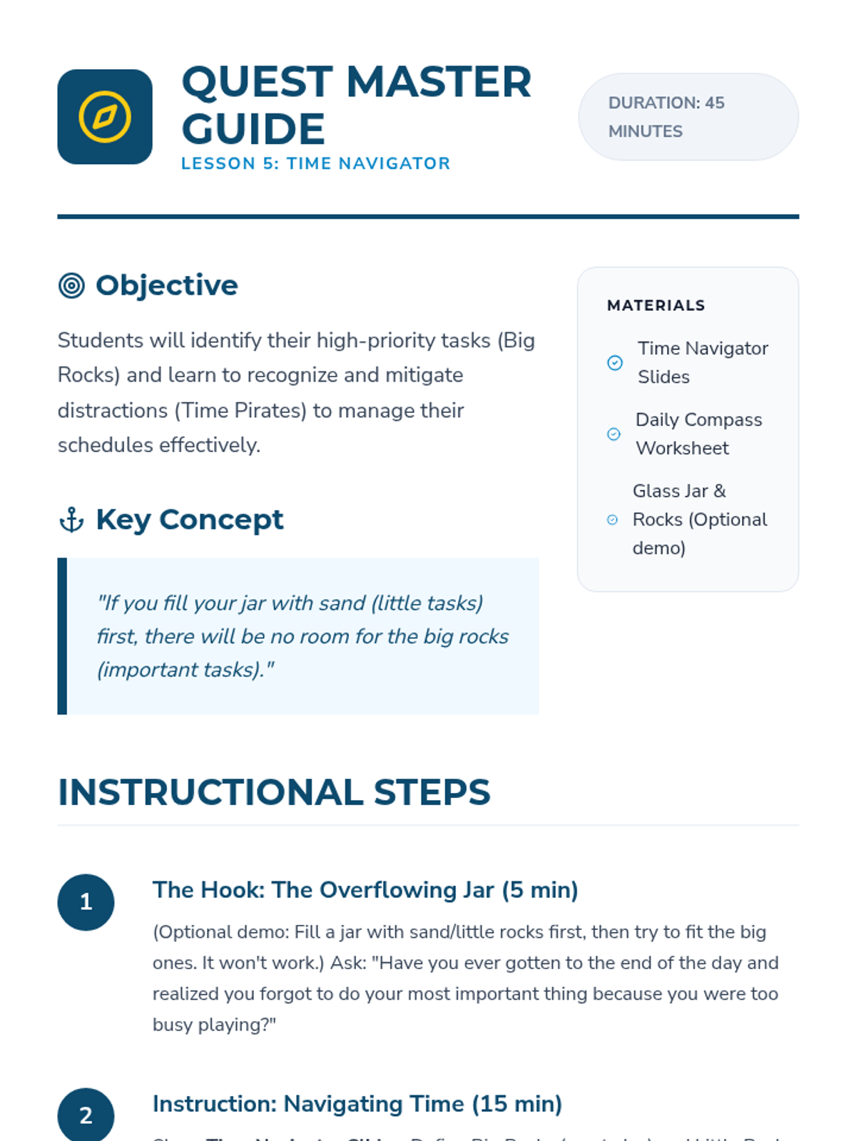 Equips students with organizational tools and prioritization techniques to manage schoolwork and personal responsibilities effectively.