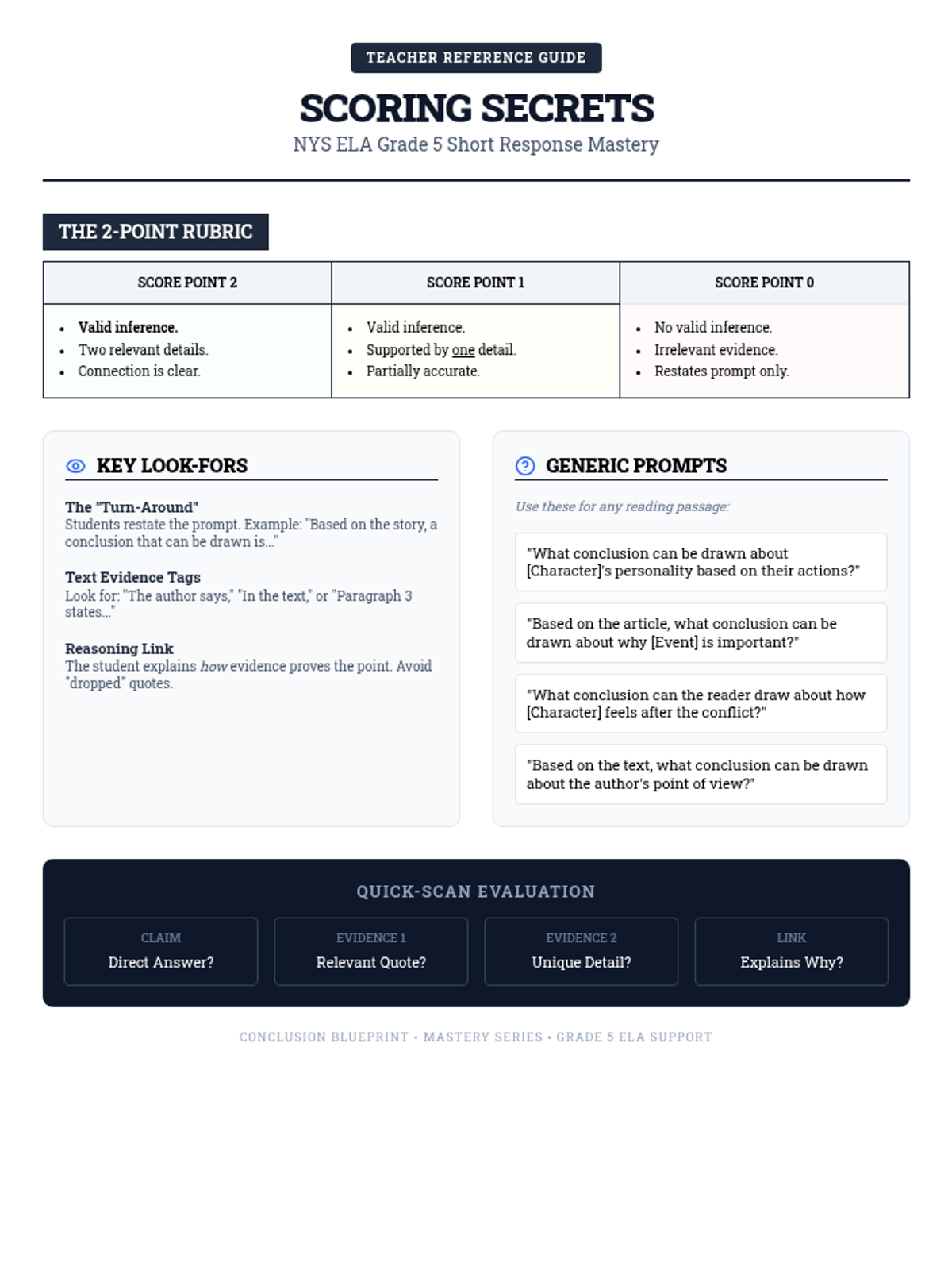 A focused lesson on mastering the 5th Grade NYS ELA short-response format for drawing conclusions using text evidence.