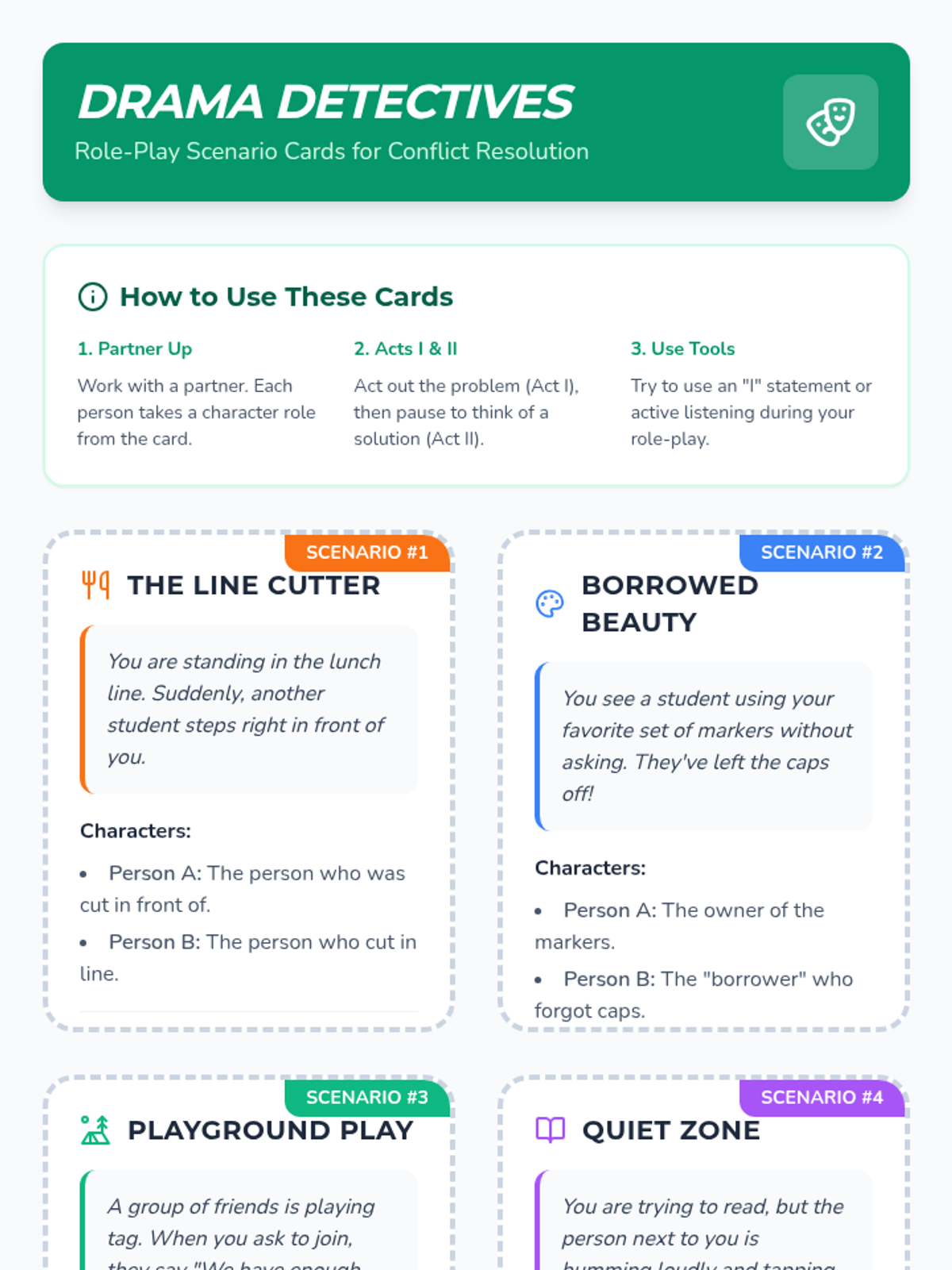 A comprehensive lesson teaching students the 'Pause Button' technique to improve impulse control. Using a detective theme, students learn to identify triggers and practice self-regulation through interactive scenarios and visual tools.