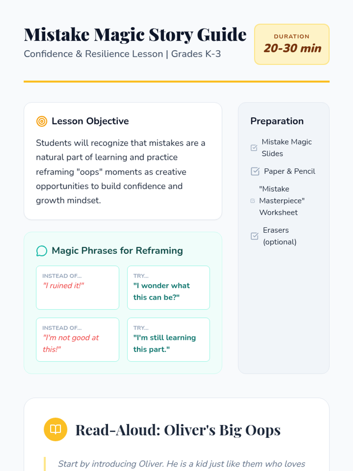 A lesson focused on developing a growth mindset toward change, equipping students with practical strategies for adapting to new routines and communicating their feelings effectively.