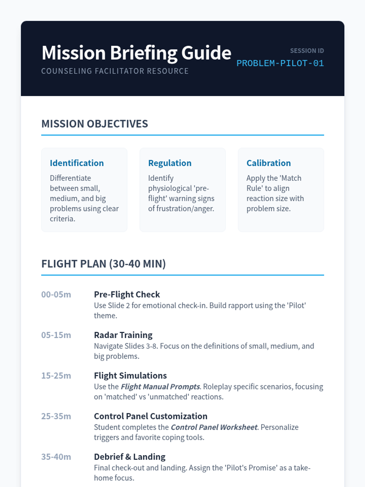 Teaches 1st-grade students simple self-regulation strategies like deep breathing and grounding to manage big feelings.