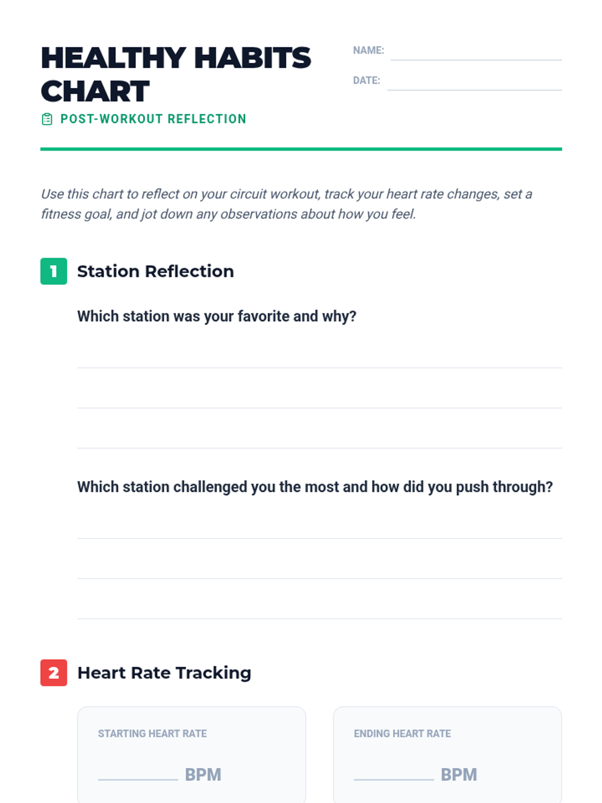 A comprehensive guide to circuit training, covering the five components of fitness, key terminology, and practical application. Includes an instructional handout, a comprehension worksheet, and an answer key.