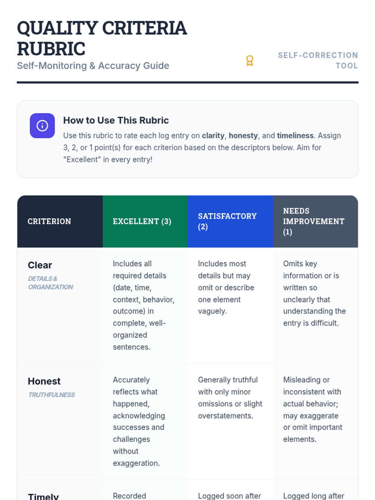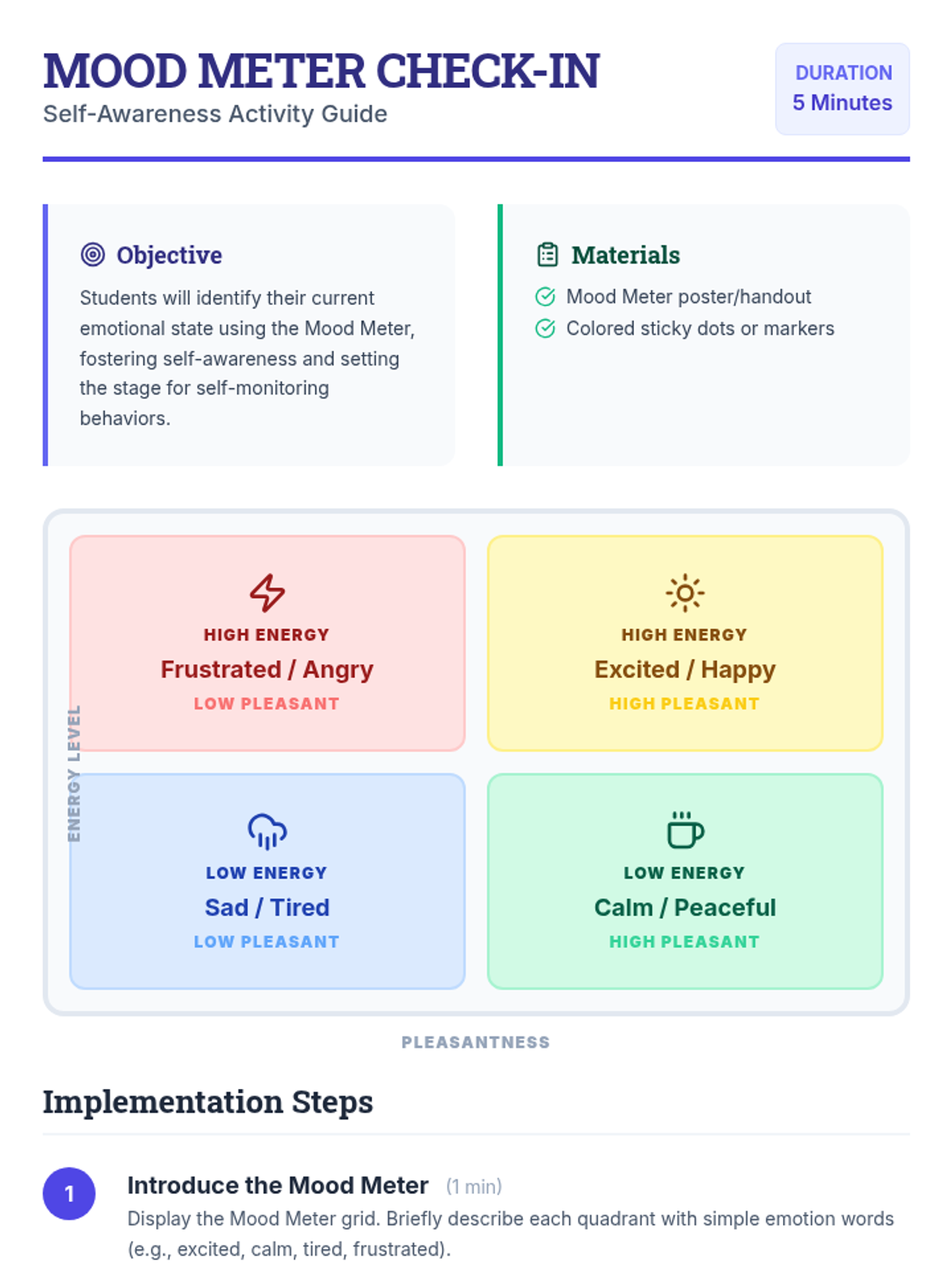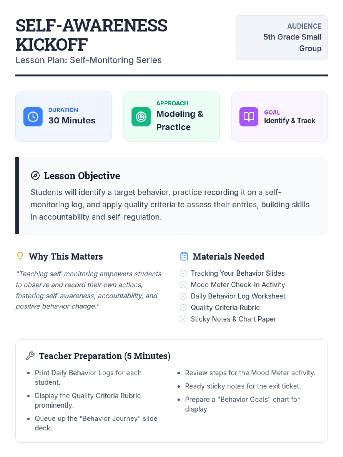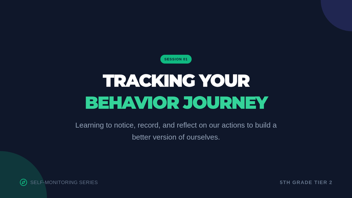 A Tier 2 small-group lesson designed to teach 5th graders the fundamentals of self-monitoring, behavior tracking, and progress reflection using clear quality criteria.