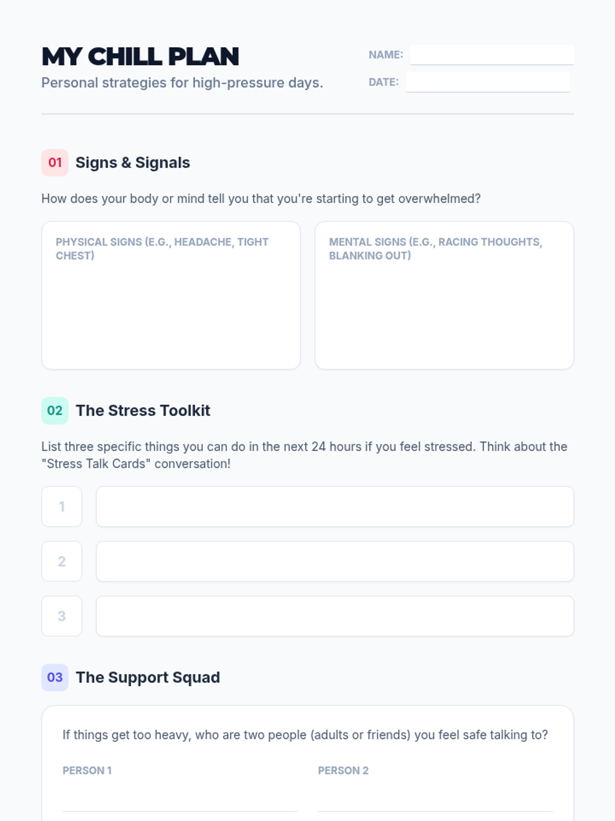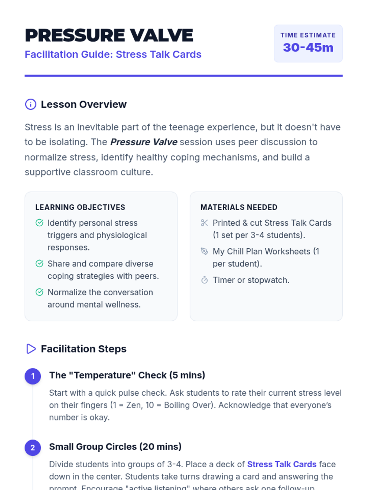 A lesson designed to help teenagers identify stress triggers and develop healthy coping mechanisms through peer discussion and personal reflection.