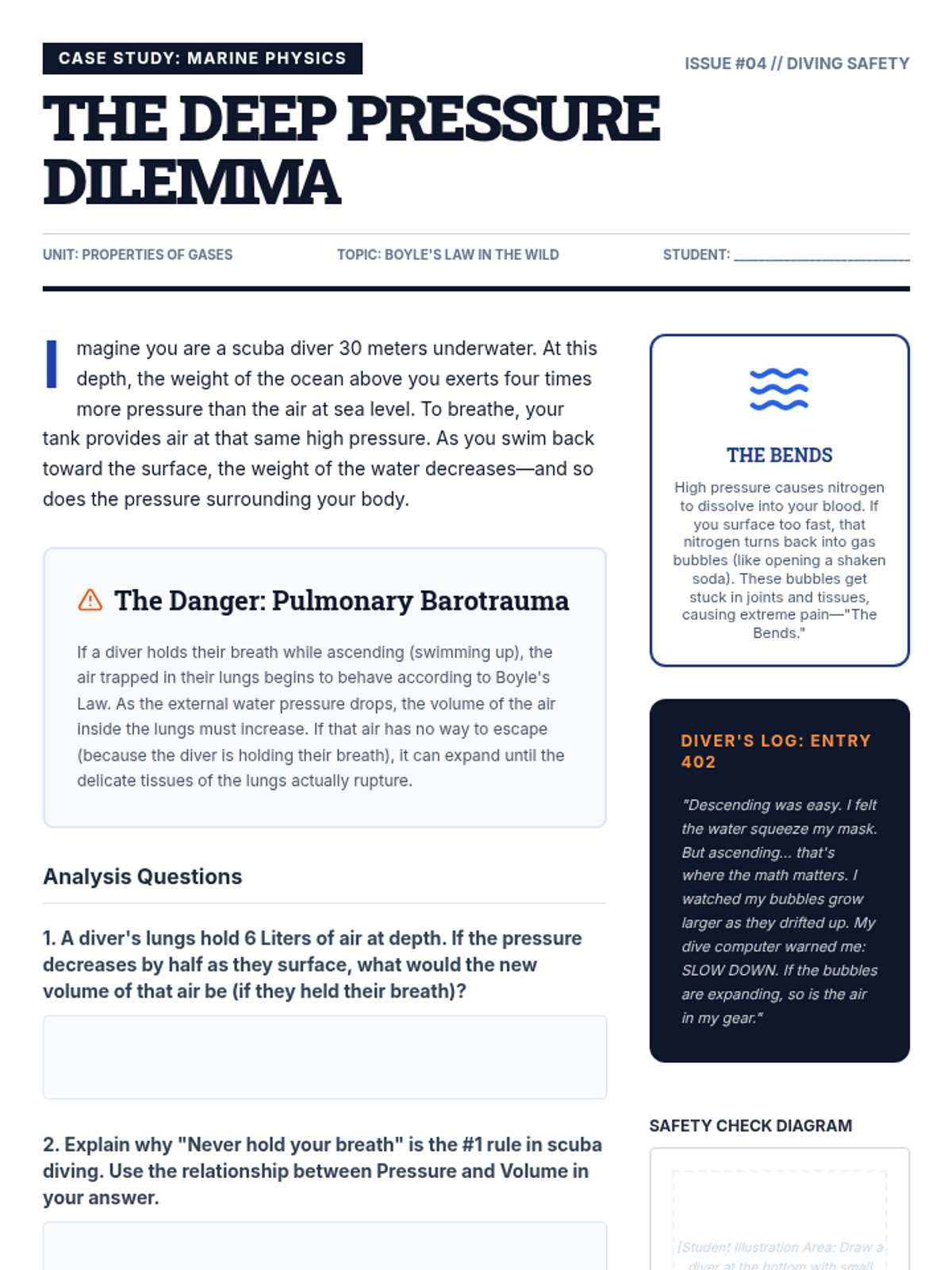 Applying Boyle's Law to the physics of scuba diving and the physiological effects of pressure changes.