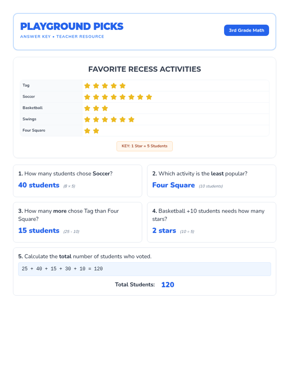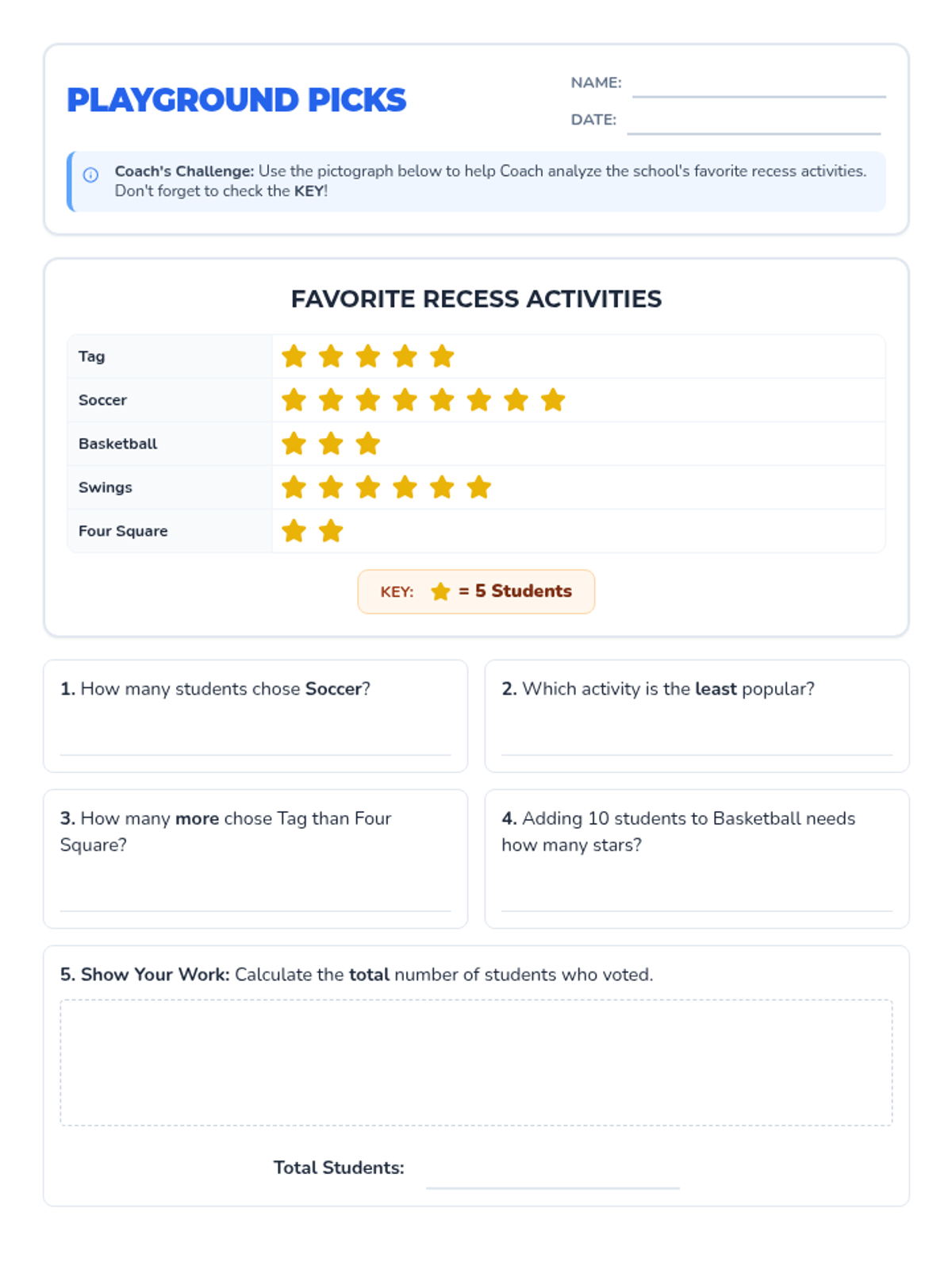 Students will learn to interpret and analyze data presented in pictographs within the context of favorite recess activities, focusing on understanding scales and keys.