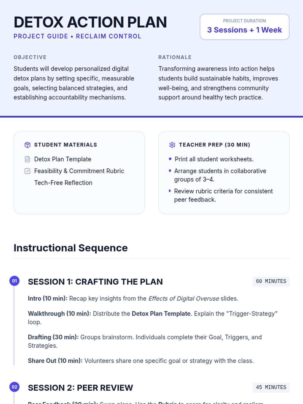 The capstone of the project where students synthesize their learning to create and implement a personal digital wellness plan.