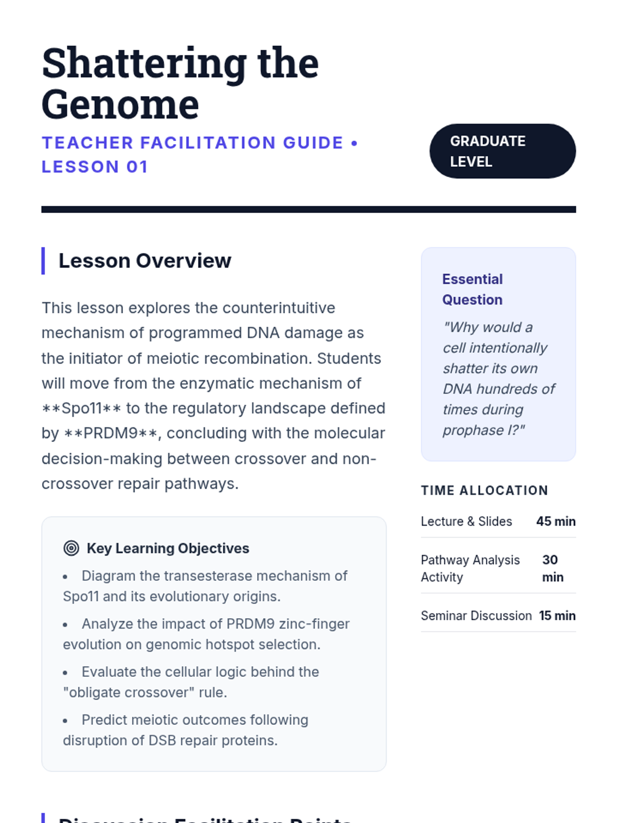 Examine the programmed induction of DNA damage by Spo11, the regulation of break sites, and the molecular decision-making between crossover and non-crossover repair pathways.