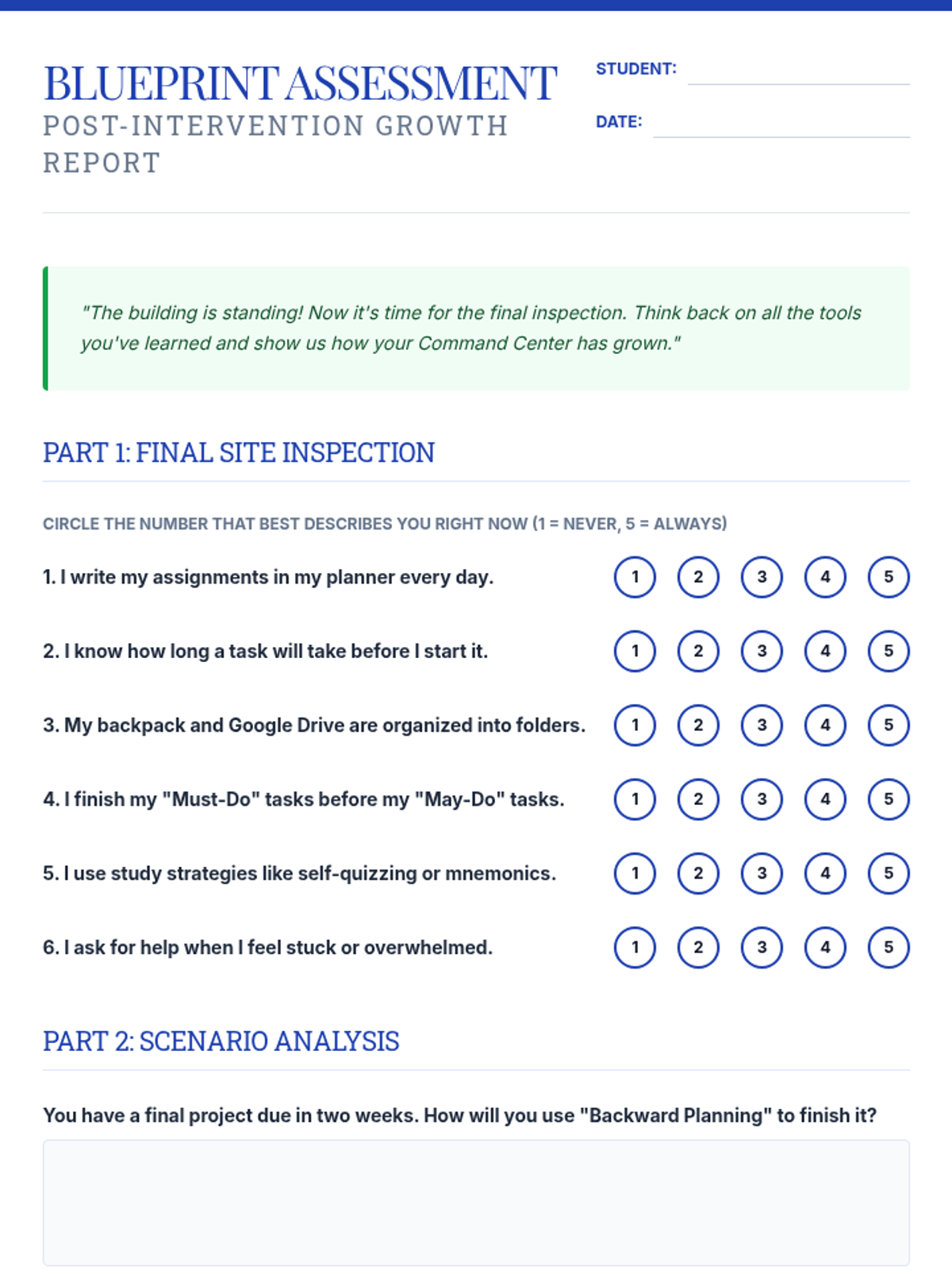 Reviewing skills learned, troubleshooting obstacles, and practicing self-advocacy for future success.