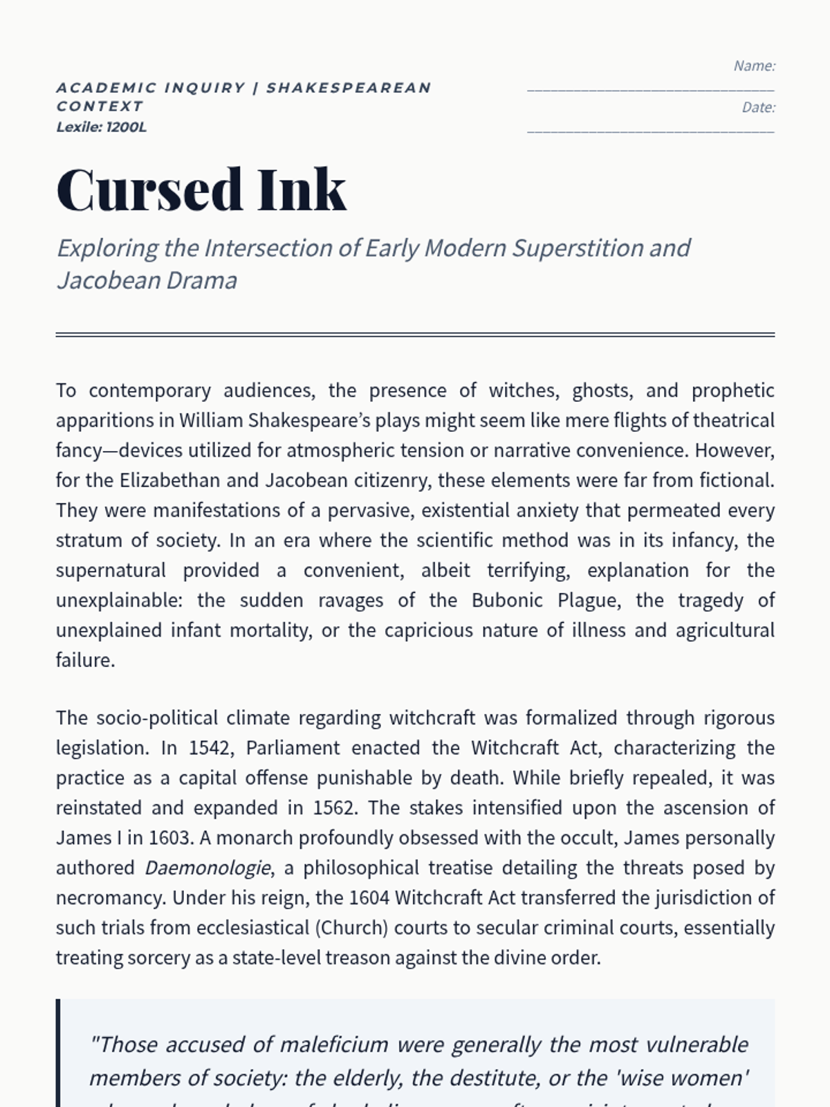 A deep dive into the historical and cultural context of the supernatural in Shakespeare's plays, exploring the societal fears, royal obsessions, and dramatic techniques of the Elizabethan and Jacobean eras.