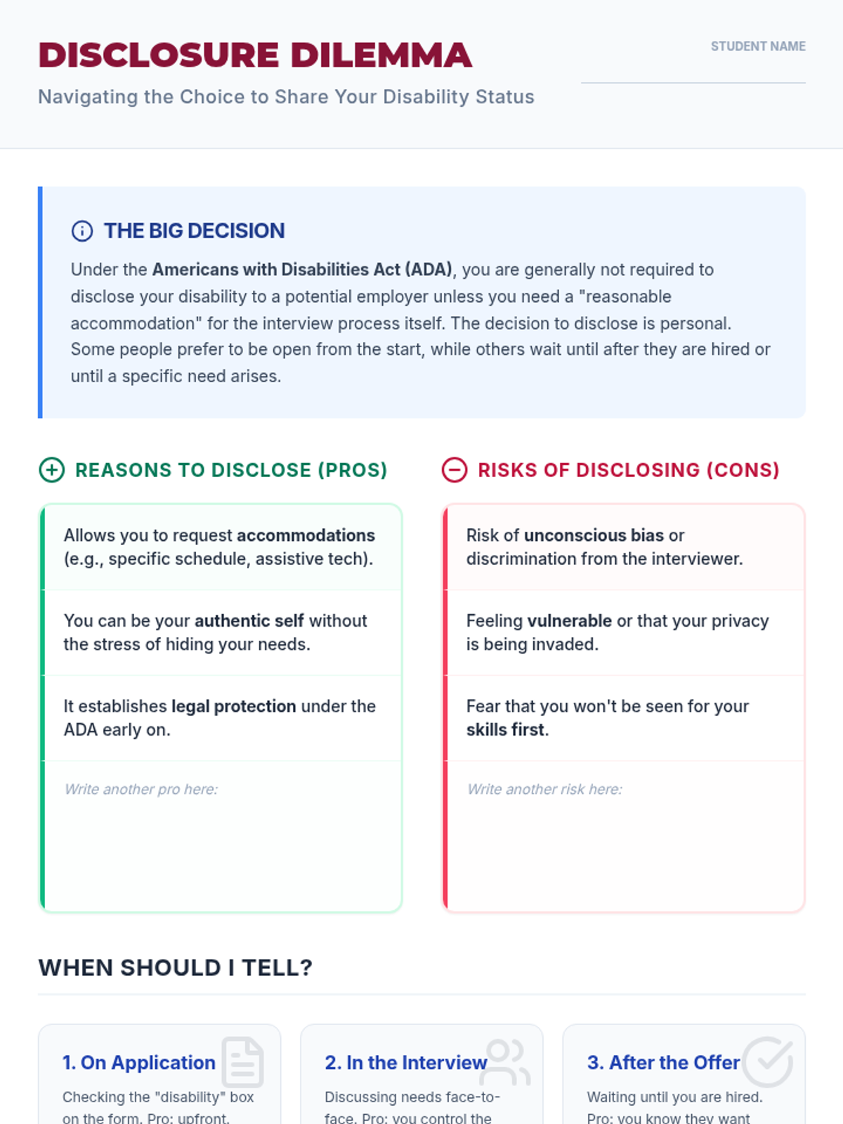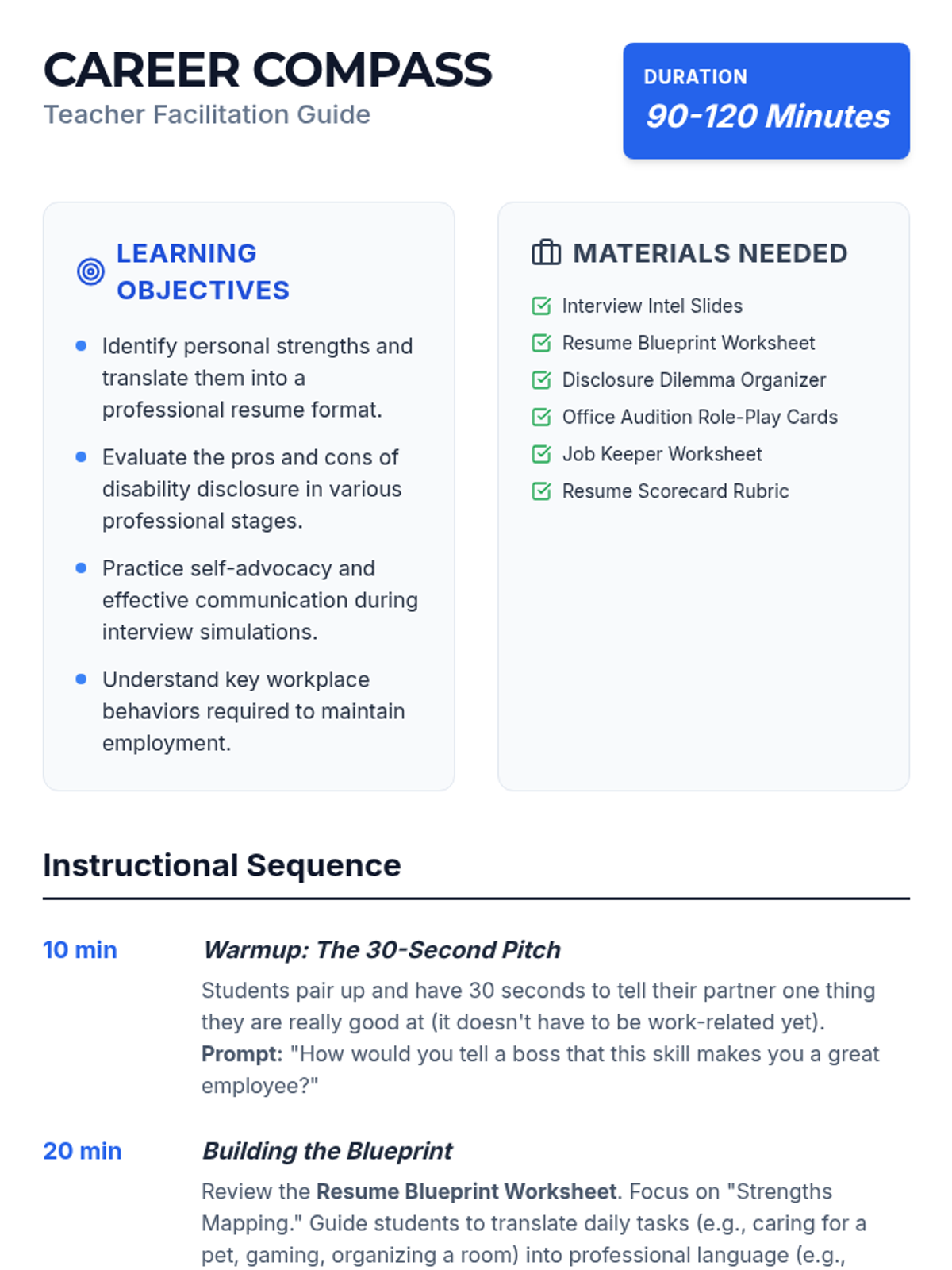 A comprehensive lesson on navigating the employment process, from resume building and interviewing to the nuances of disability disclosure and workplace communication.