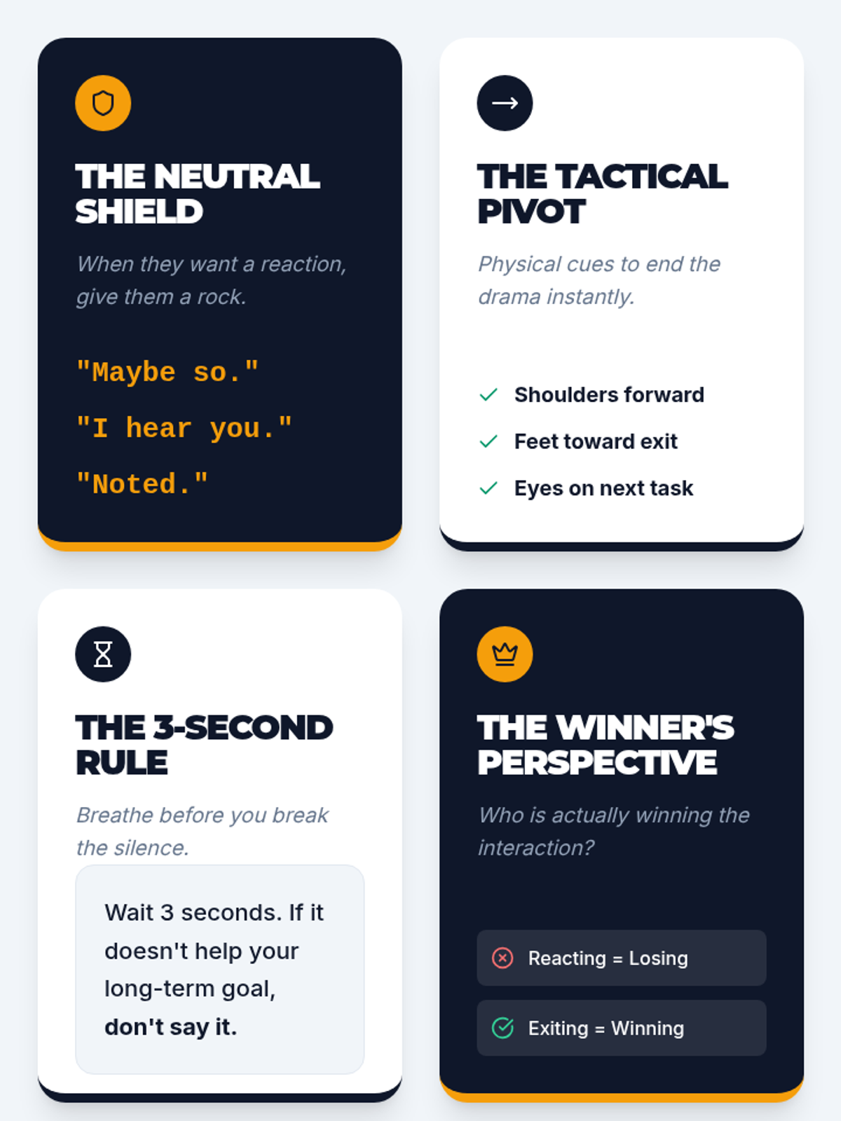 A 20-minute 1:1 session for 11th graders focusing on strategic disengagement and conflict resolution through high-stakes roleplay and discussion. This lesson emphasizes personal autonomy and 'winning the long game' by choosing when and how to exit a conflict.