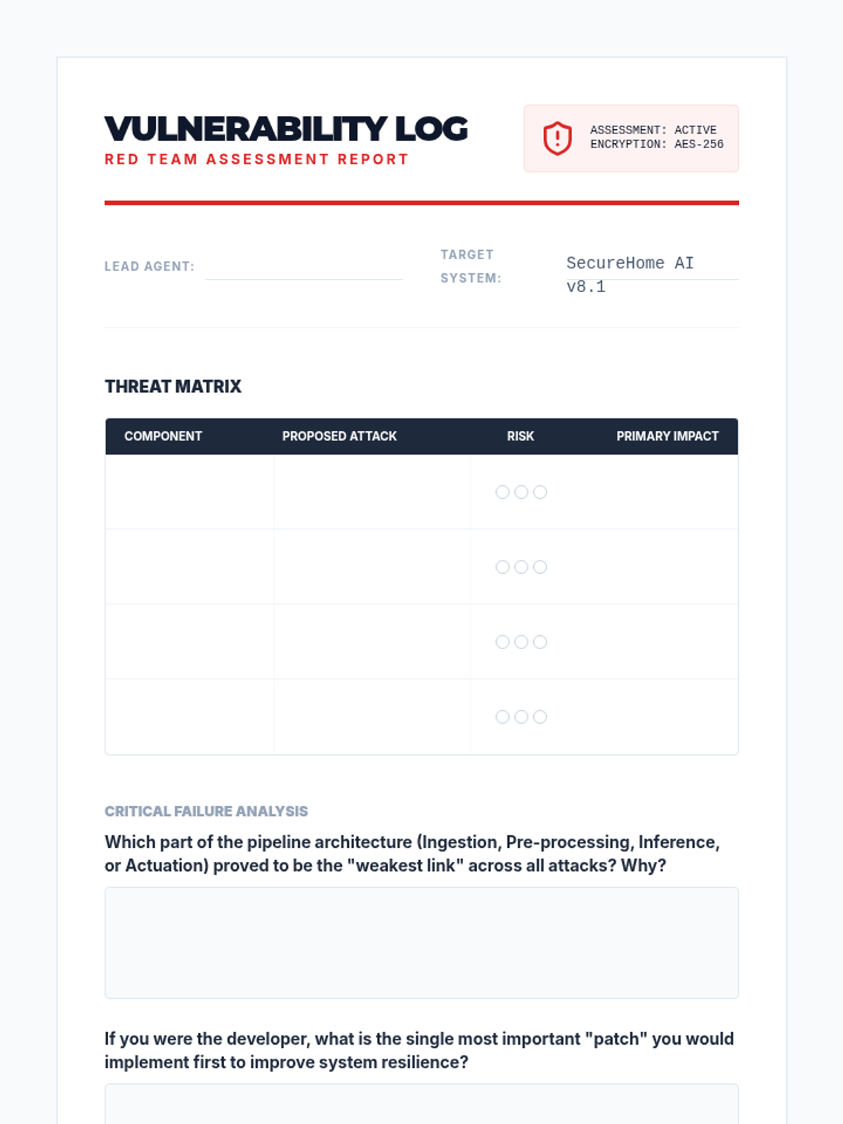 Students adopt an adversarial mindset to identify vulnerabilities in AI systems, simulating attacks like data poisoning and injection.