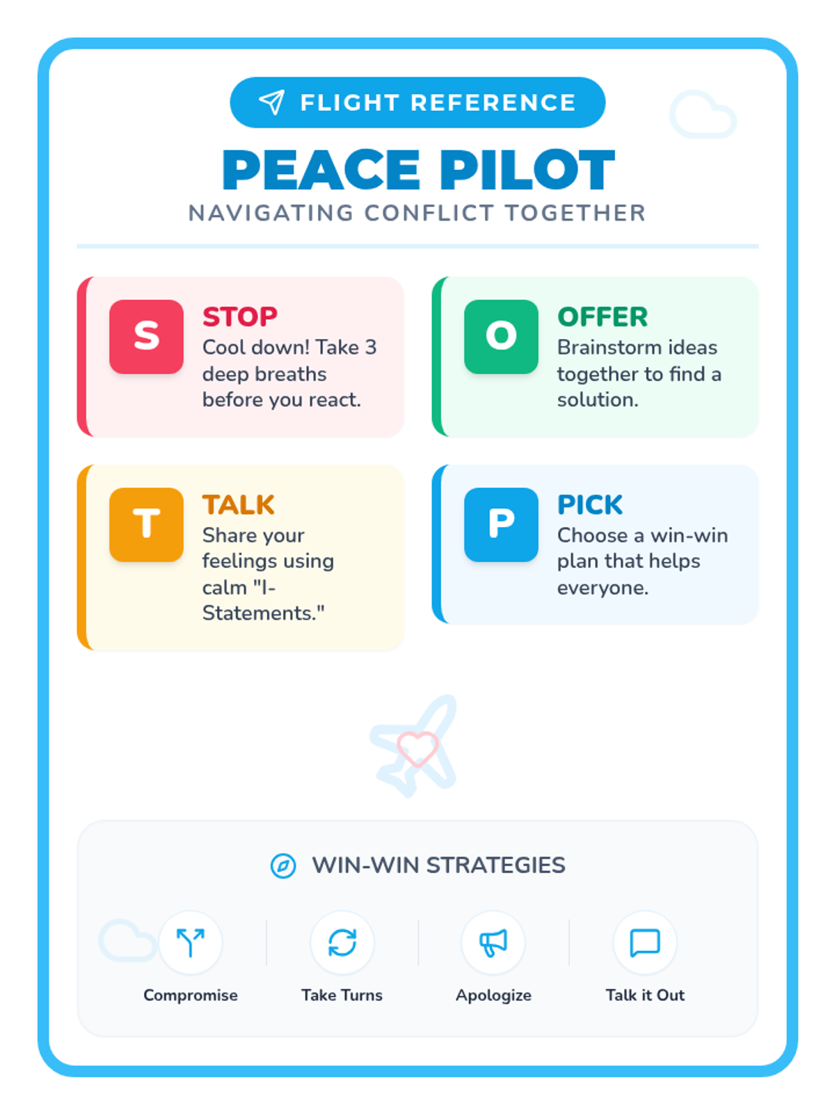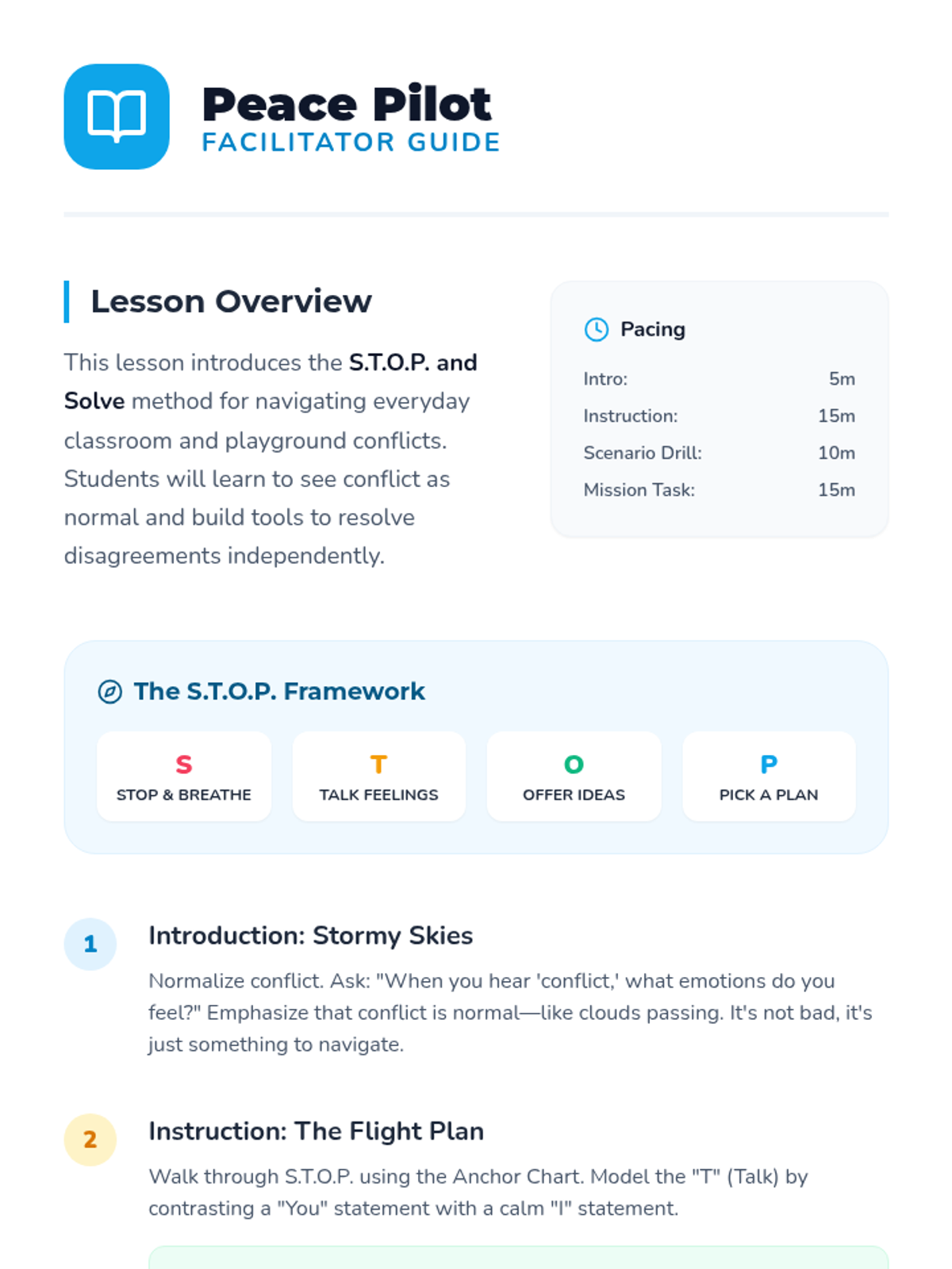 A foundational lesson on conflict resolution using the S.T.O.P. framework to help students navigate disagreements and find win-win solutions.