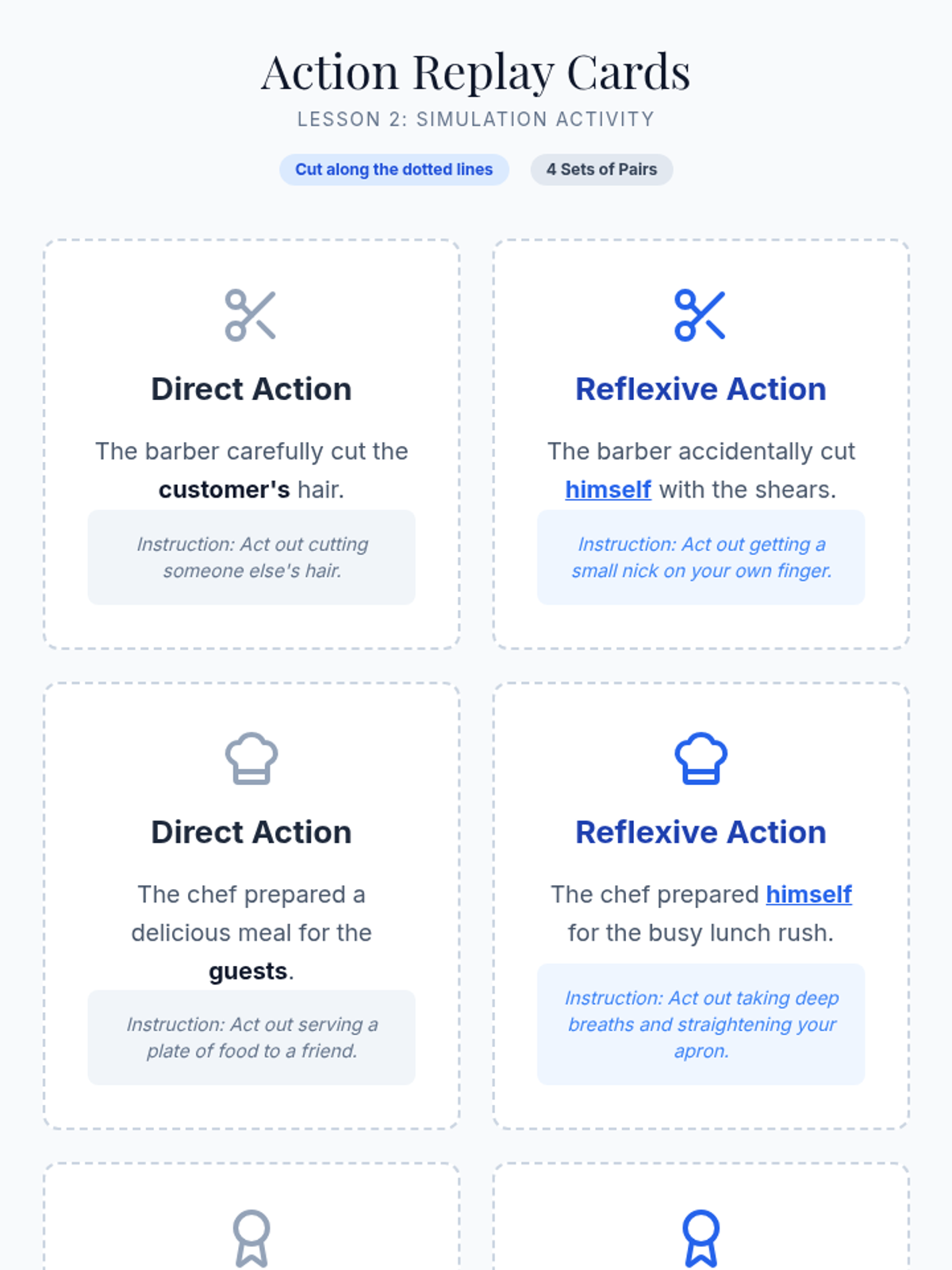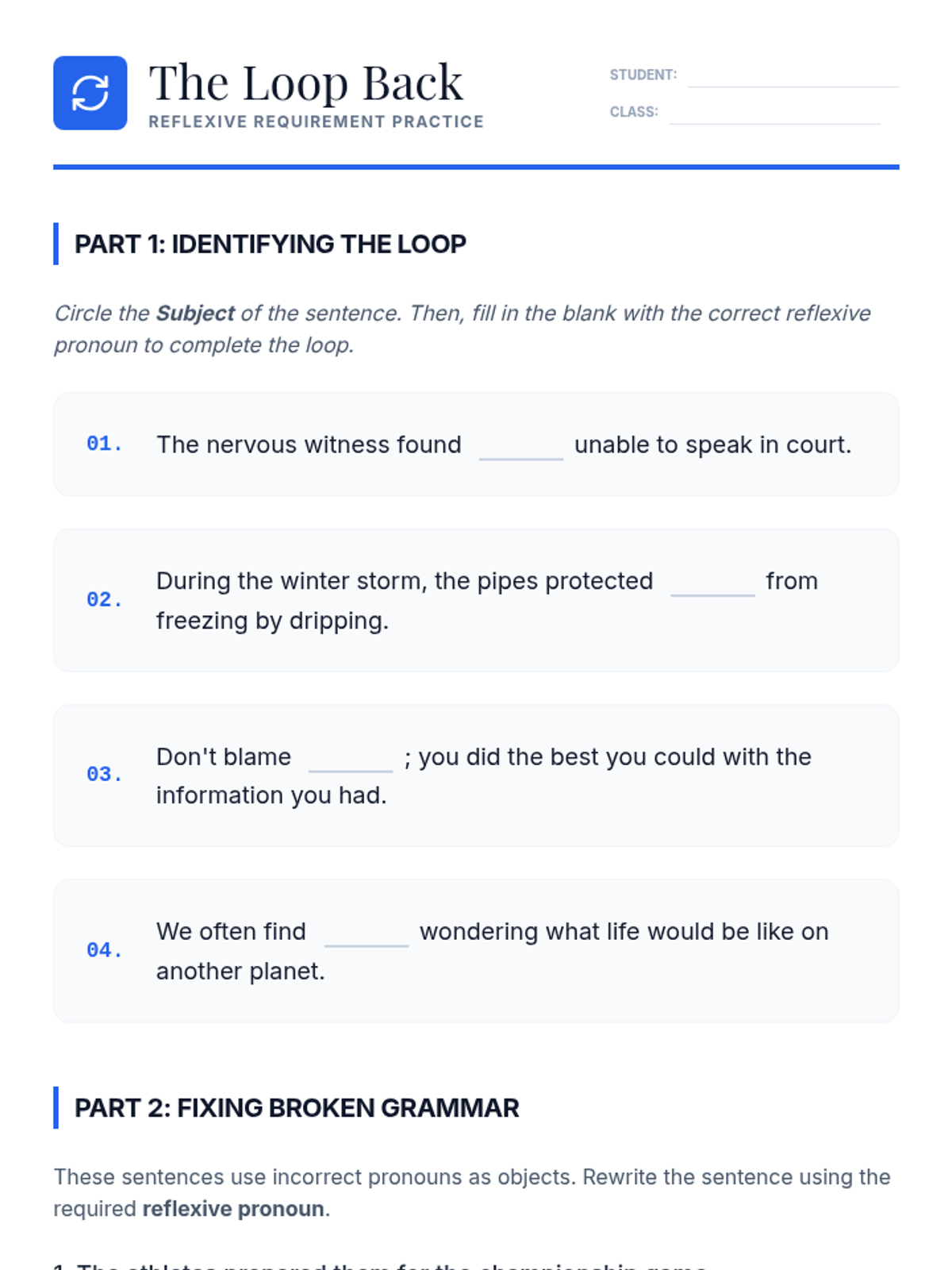 Focuses on the grammatical necessity of reflexive pronouns when the subject and object are the same person or thing.