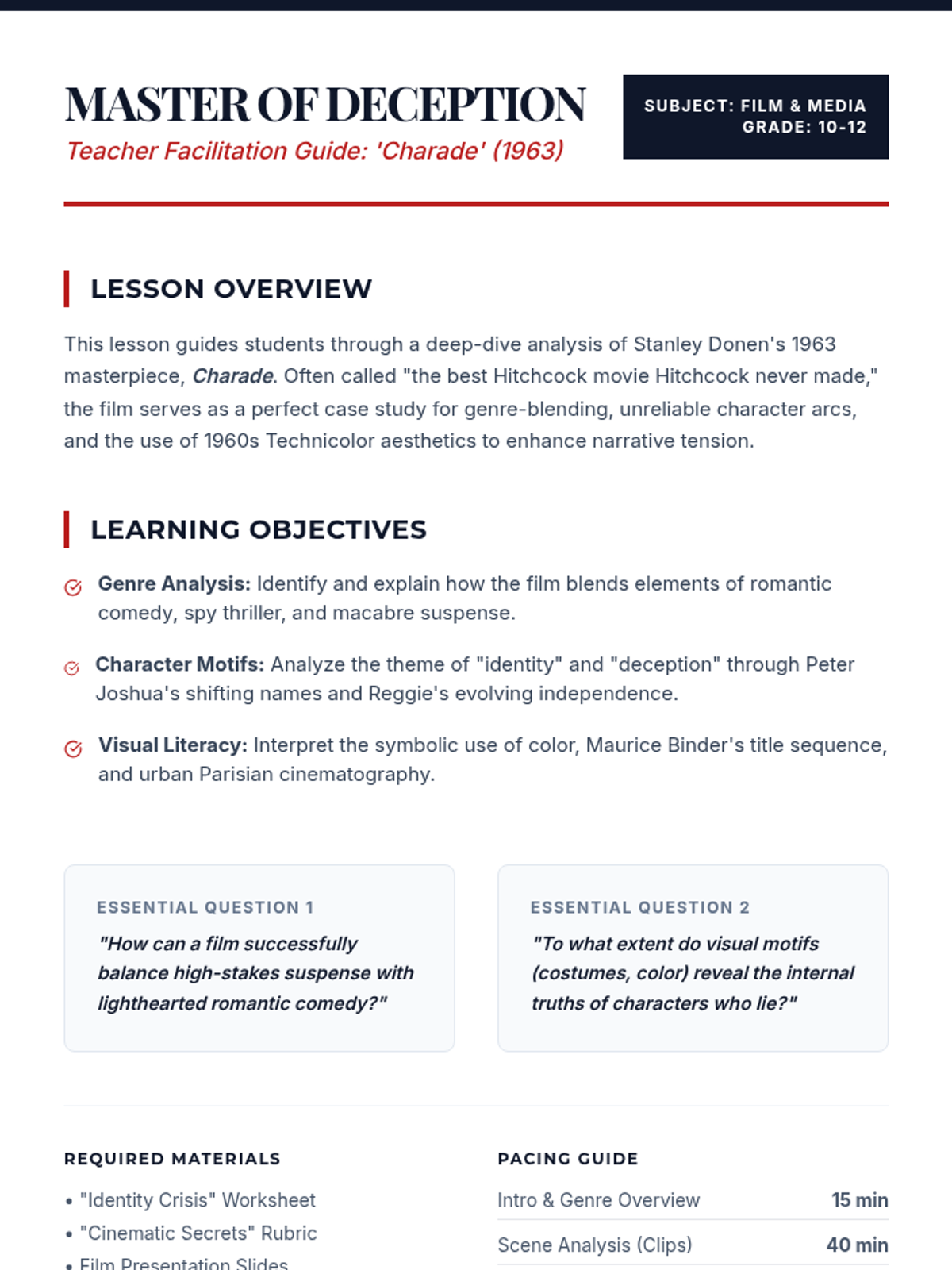 A lesson focused on using the dramatic technique of tableau to explore pivotal moments and emotional themes in Alan Gratz's 'Refugee'. Students will learn the five elements of tableau and work in groups to create living pictures of the three main characters' journeys.