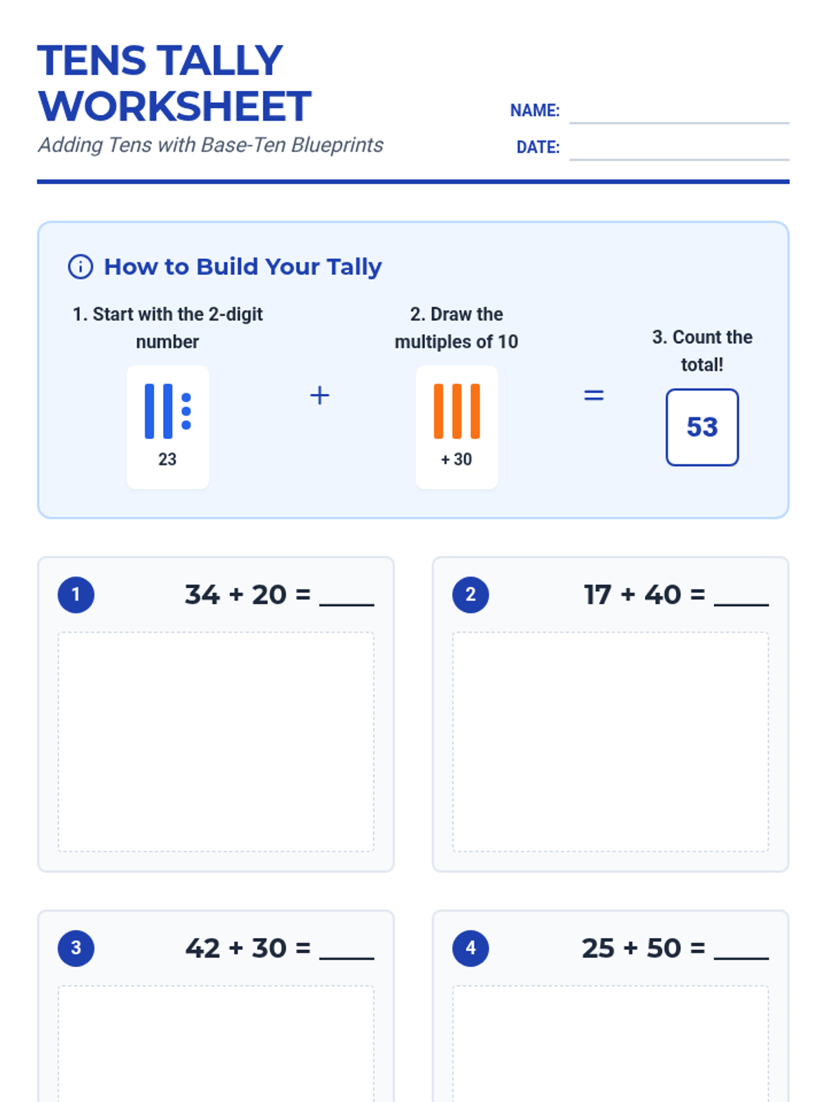 Students learn to add multiples of ten to any 2-digit number by drawing base-ten blocks (sticks and dots). This lesson focuses on visualizing the addition of 'tens' to the existing value while the 'ones' remain constant, all within 100.