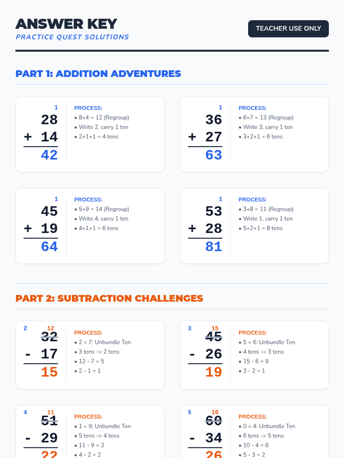 A set of 20 flashcards designed to help students master adding two-digit numbers and multiples of ten within 100. Includes a clean, athletic-themed design suitable for classroom drills.
