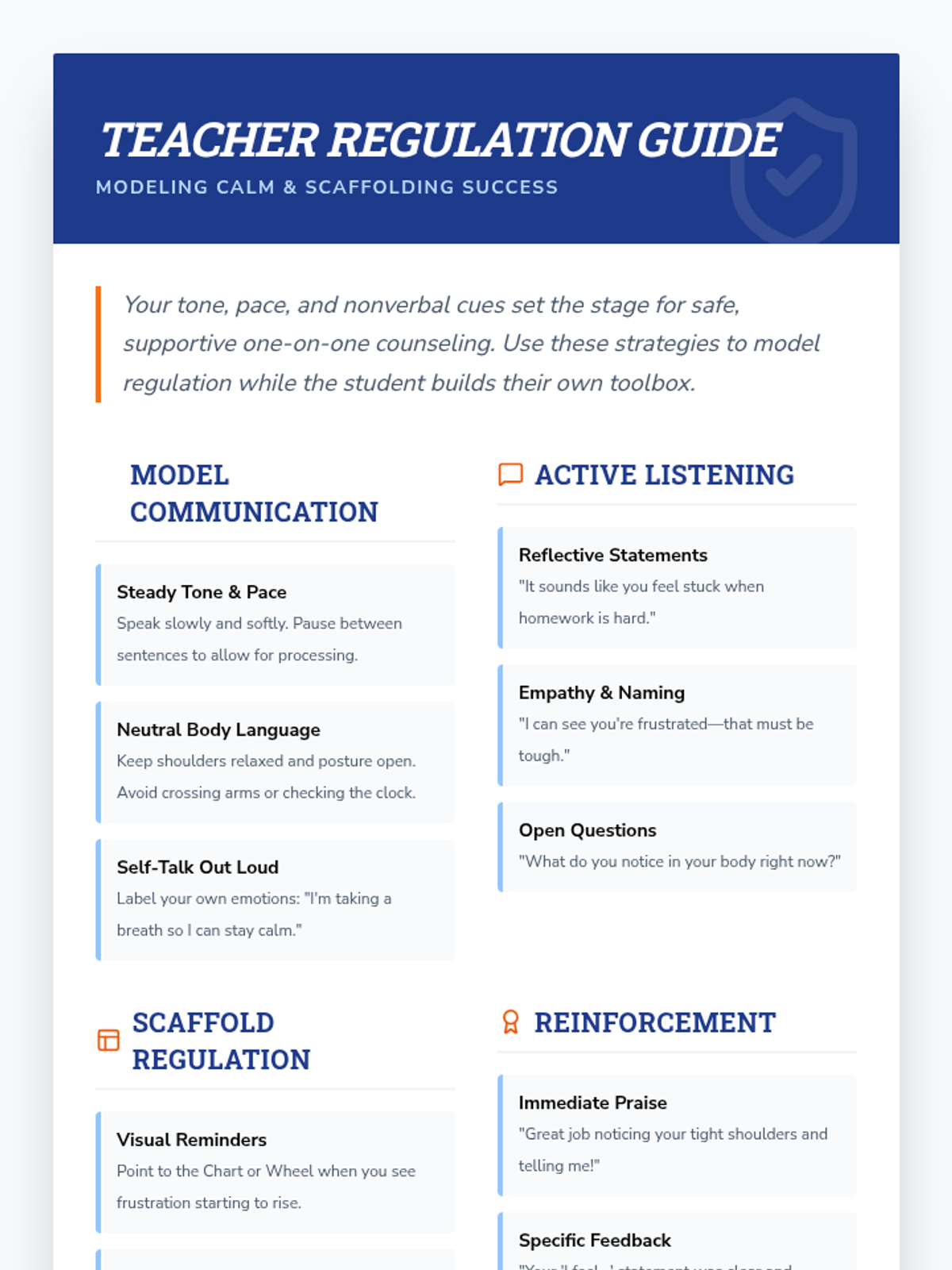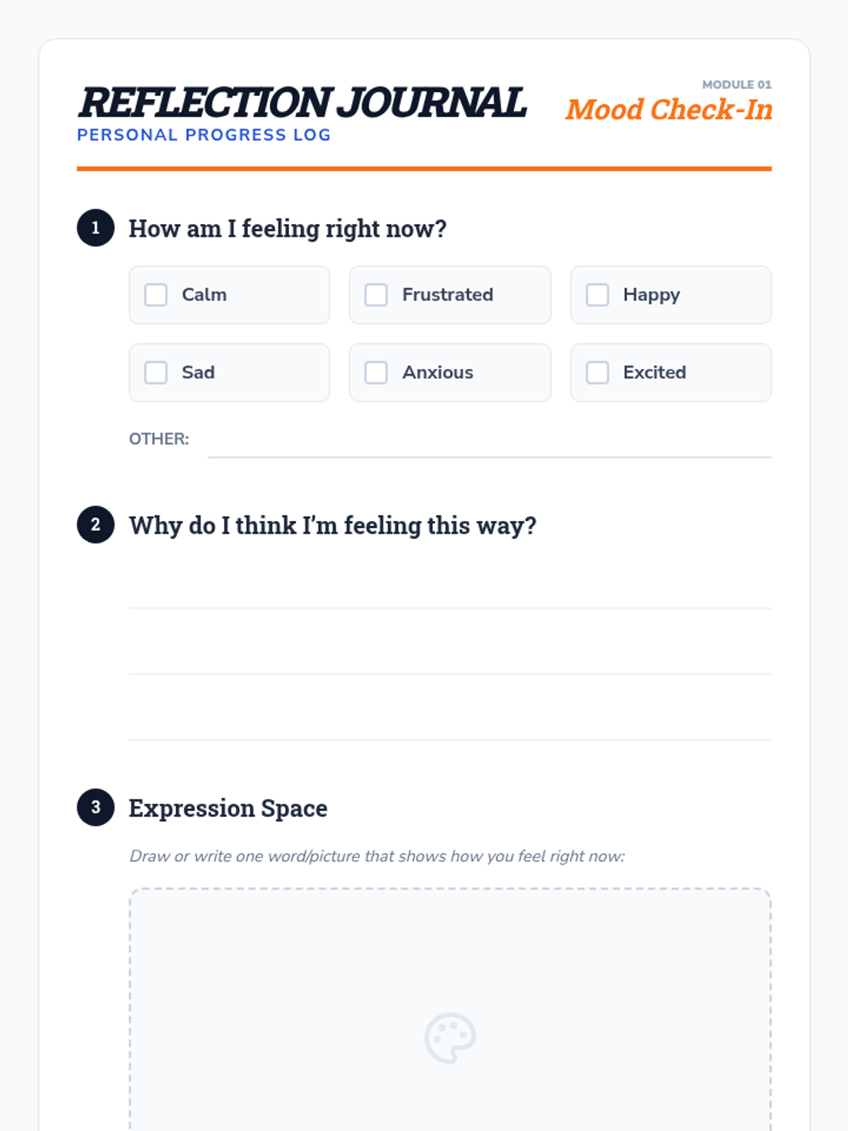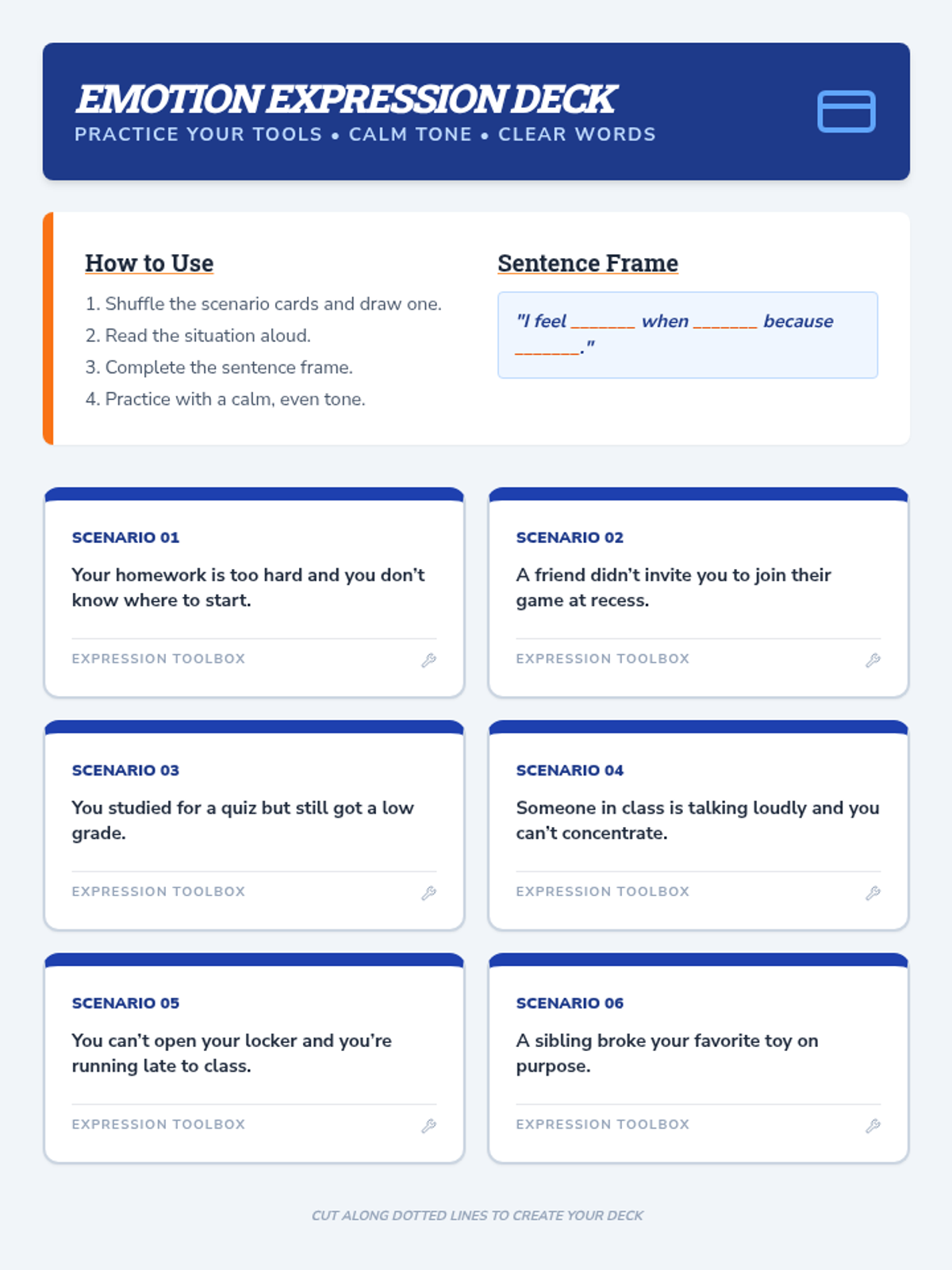 A 30-minute foundational counseling session where students identify physical frustration cues, practice 'I feel' statements, and select personalized coping strategies.