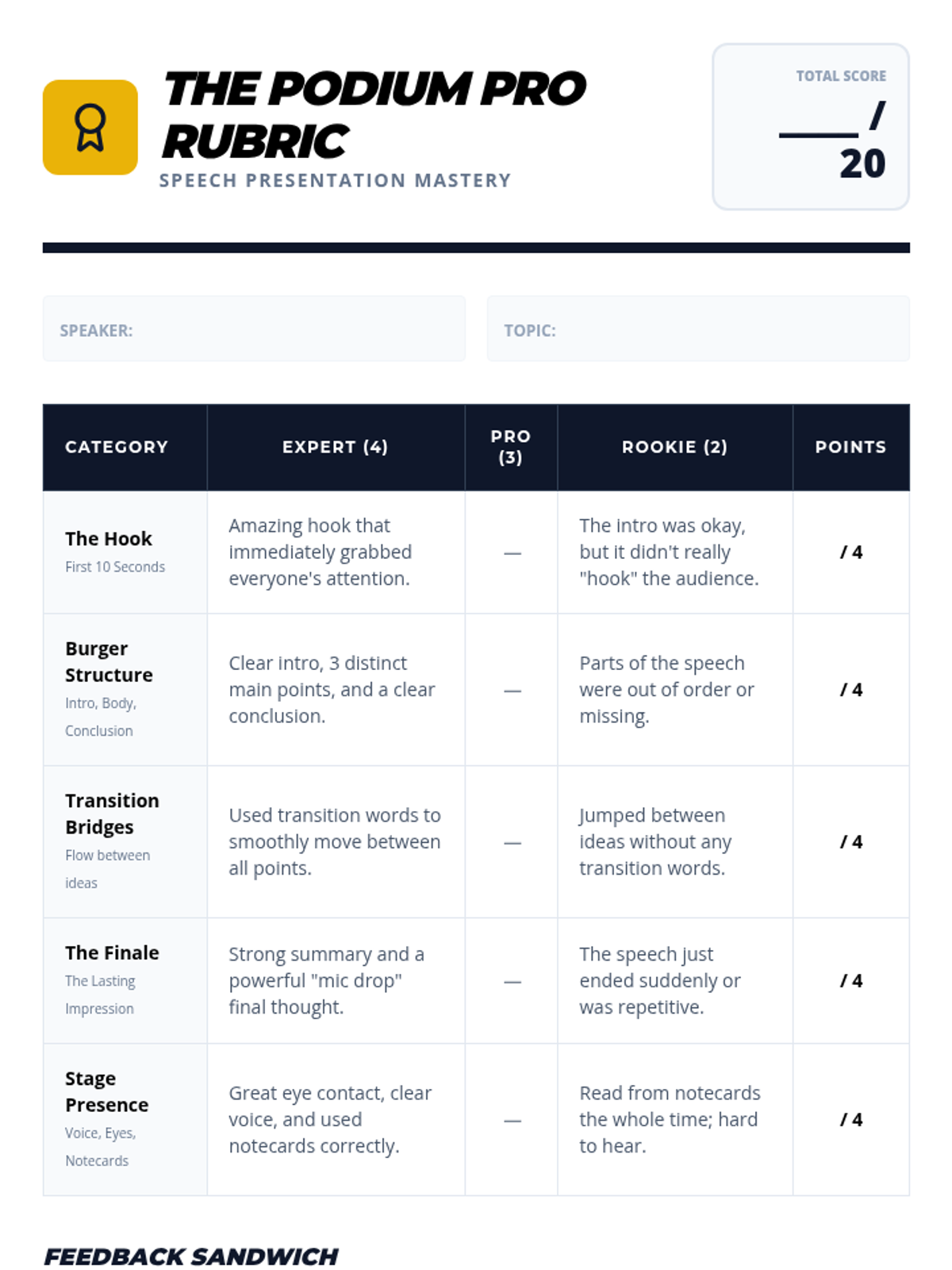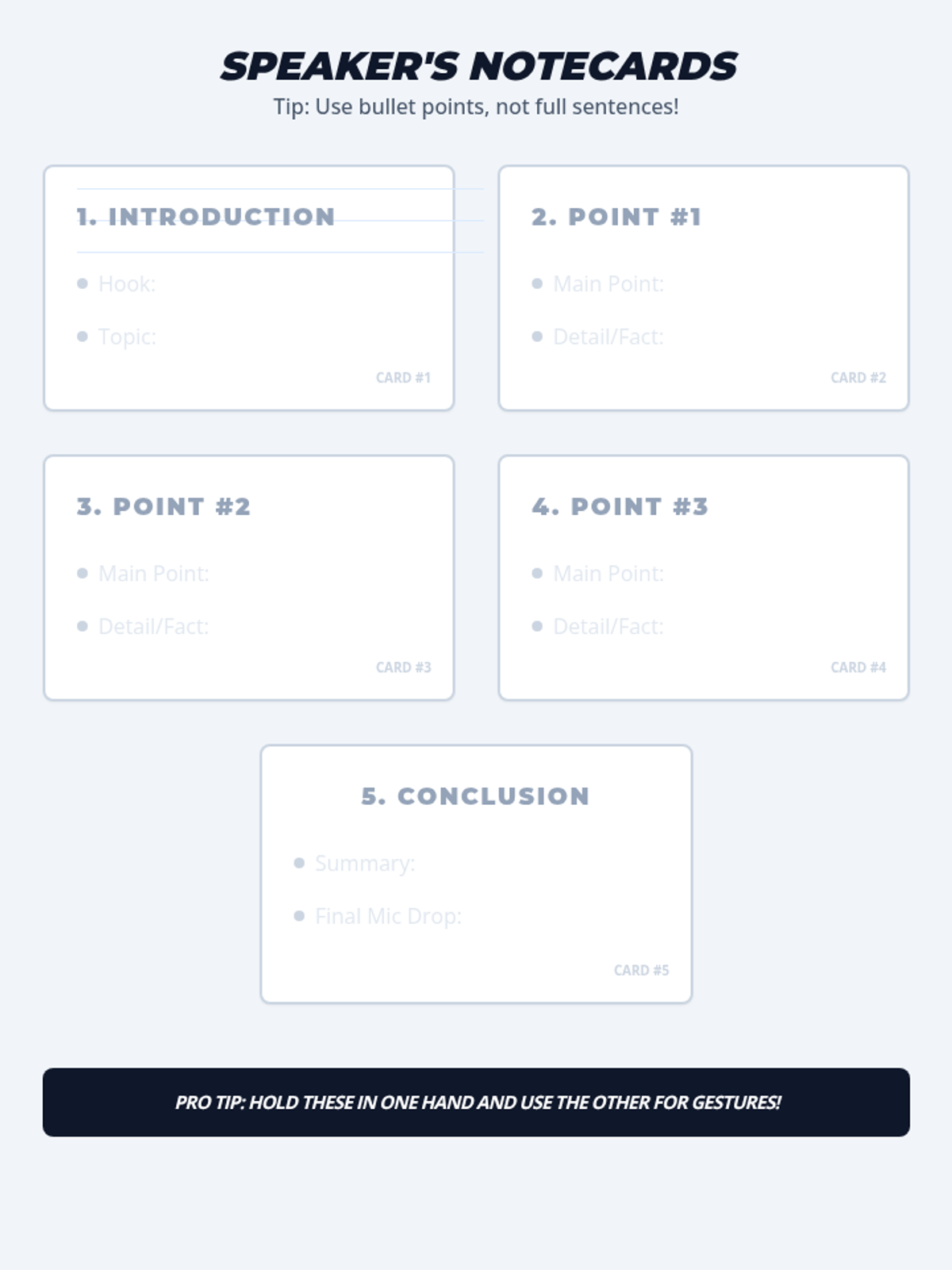 Students practice their full speeches using a 'feedback sandwich' model with peers. They focus on using notecards effectively—glancing rather than reading. The sequence concludes with a formal presentation of their speeches.
