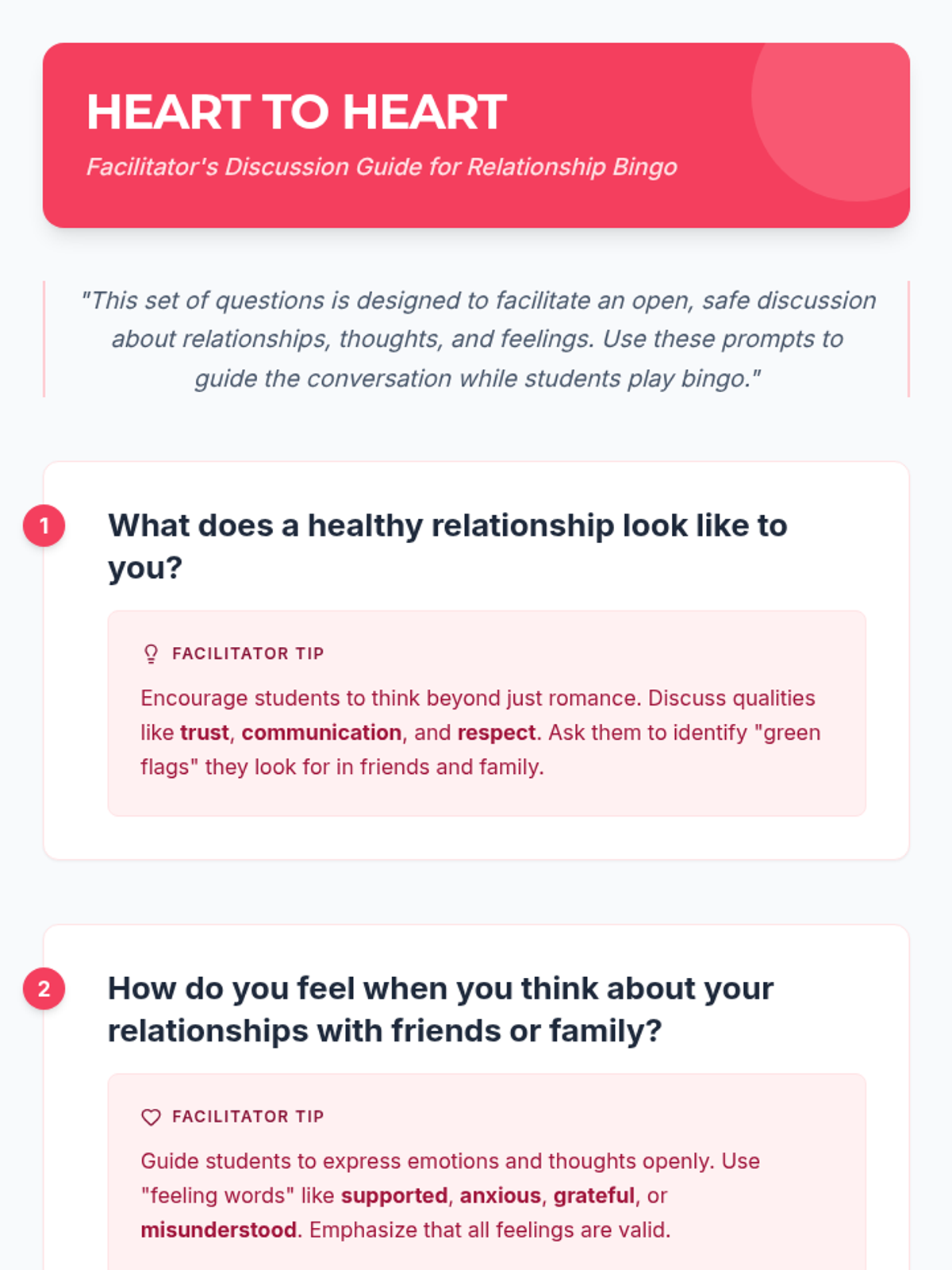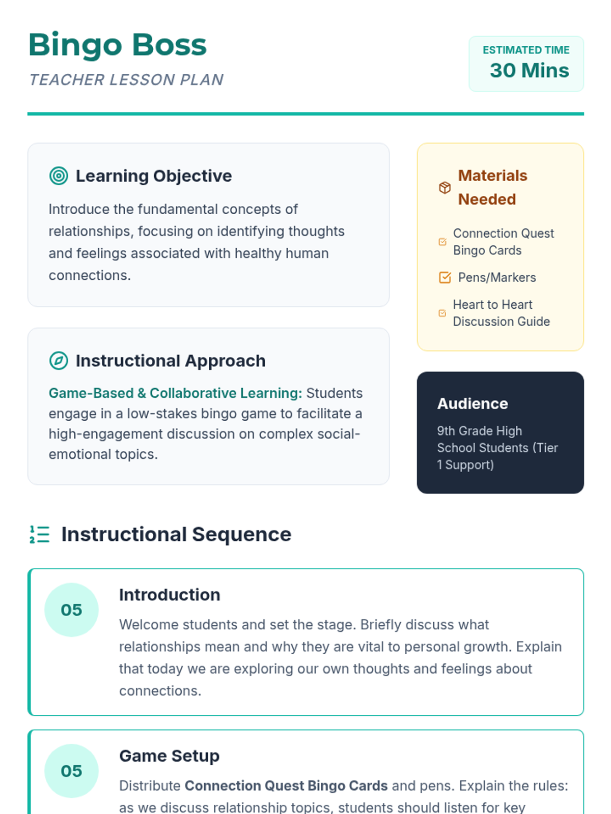 This lesson introduces 9th-grade students to the concept of relationships through a fun and interactive bingo game, fostering social-emotional skills and open communication.