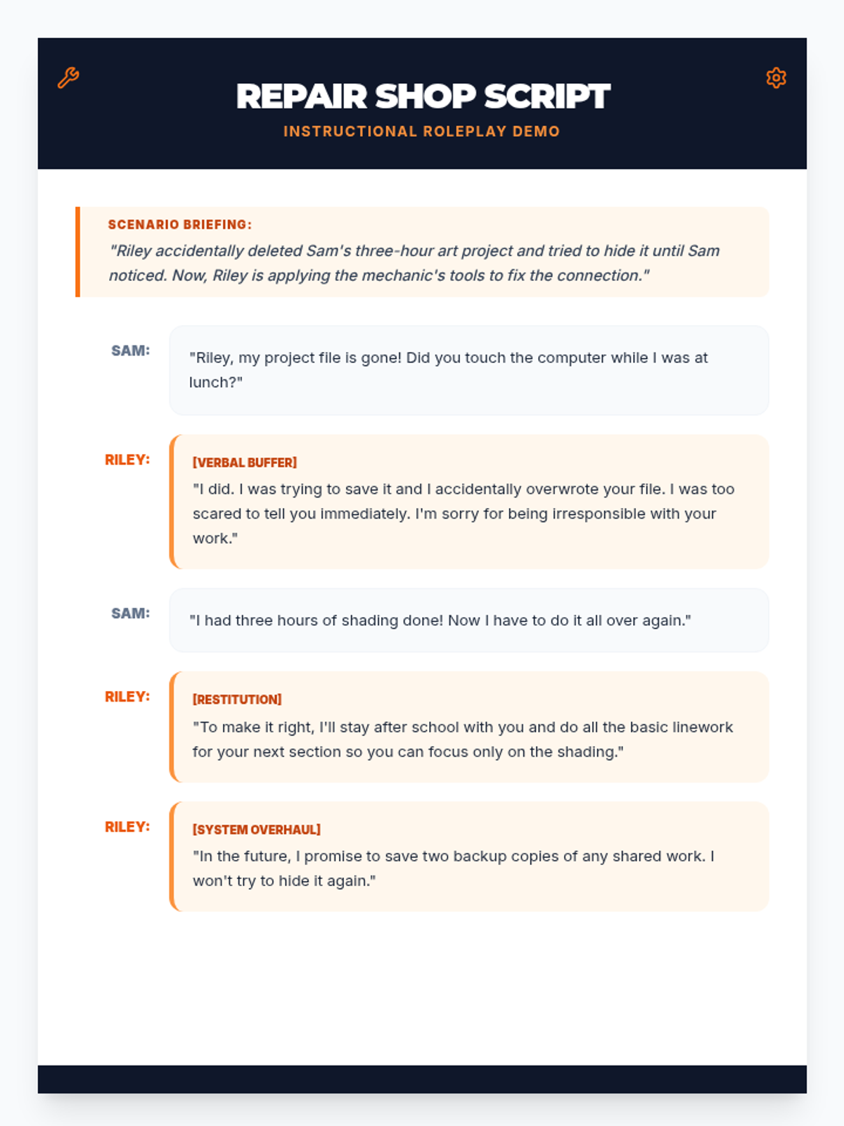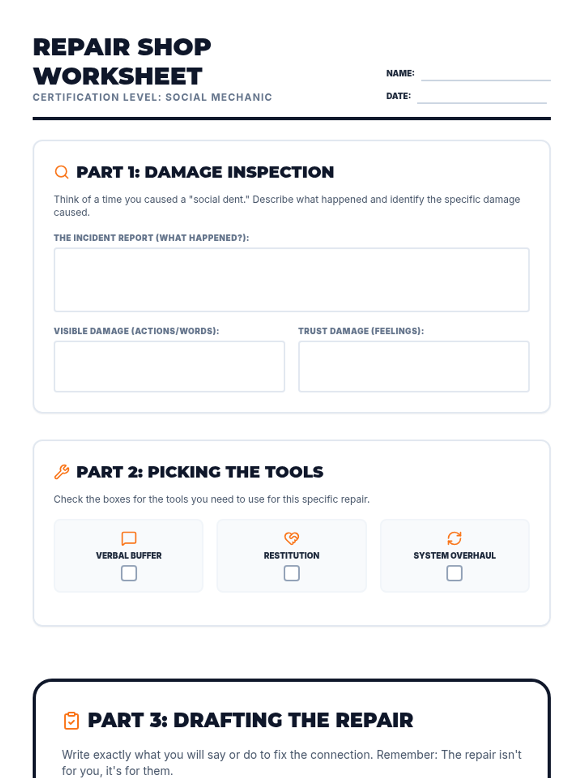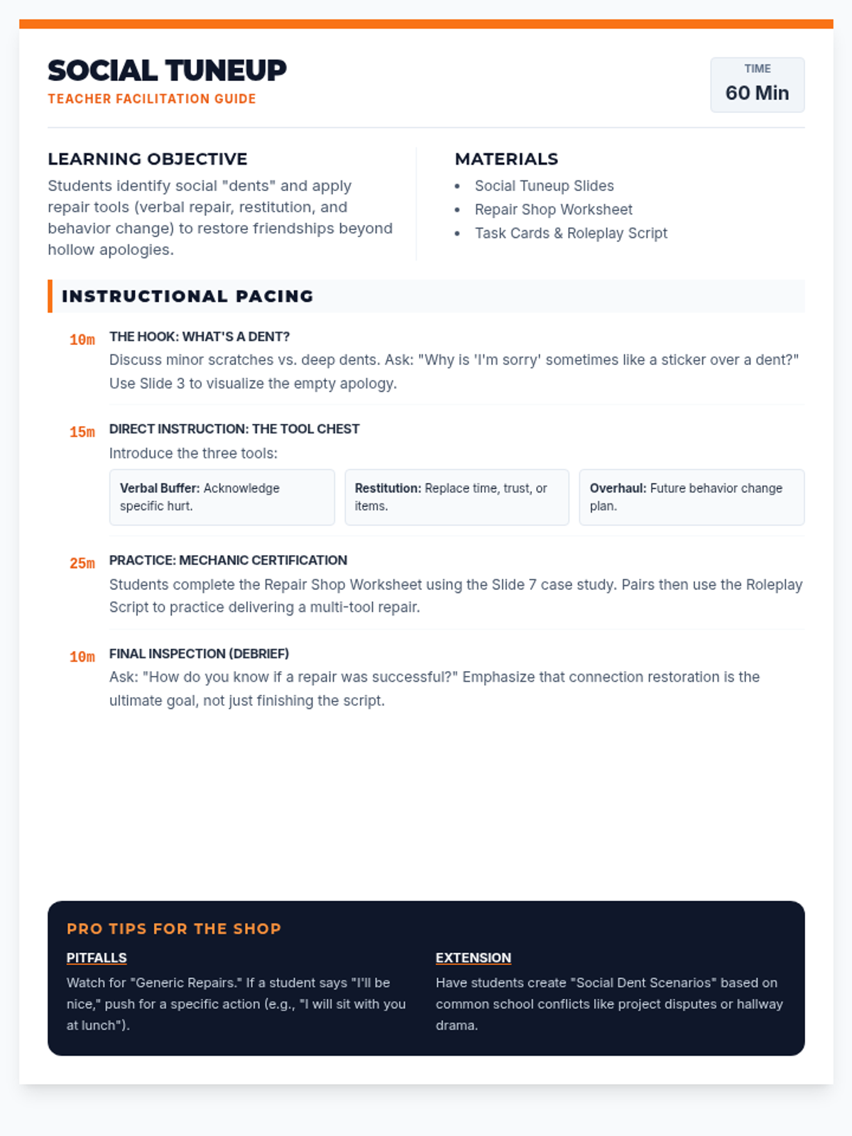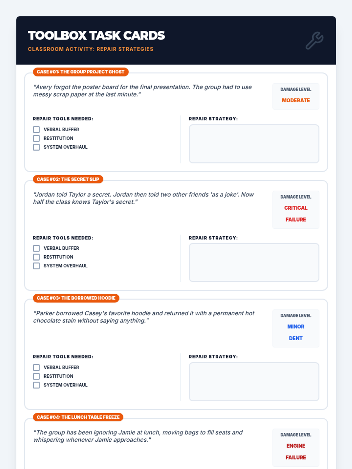 A social-emotional learning lesson for middle schoolers that uses a mechanical metaphor to teach genuine conflict resolution and restitution beyond basic apologies.