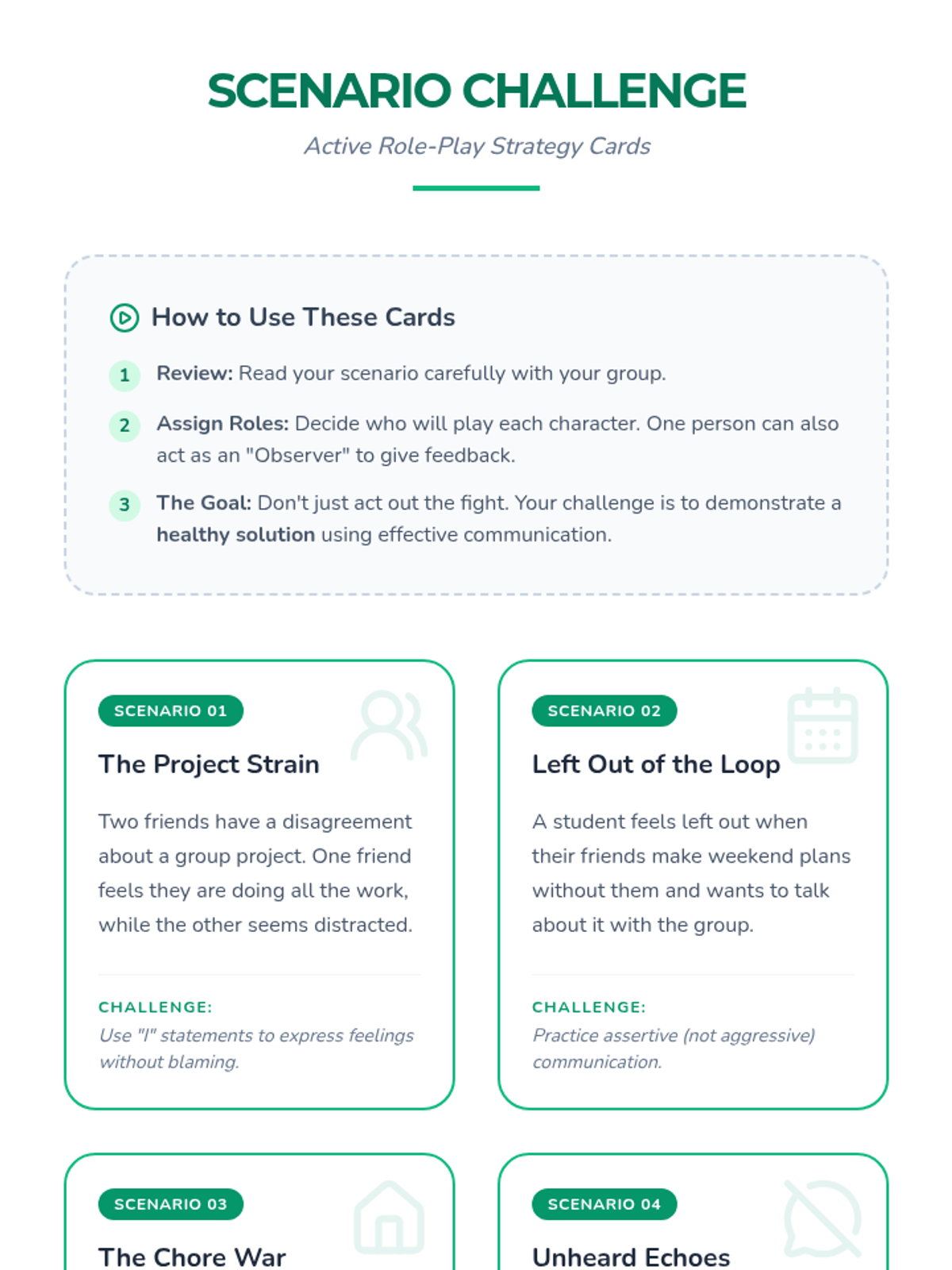 Students explore the foundations of healthy relationships and practice effective communication skills through group discussions and role-playing activities. This lesson builds social-emotional strength and conflict resolution abilities for middle schoolers.
