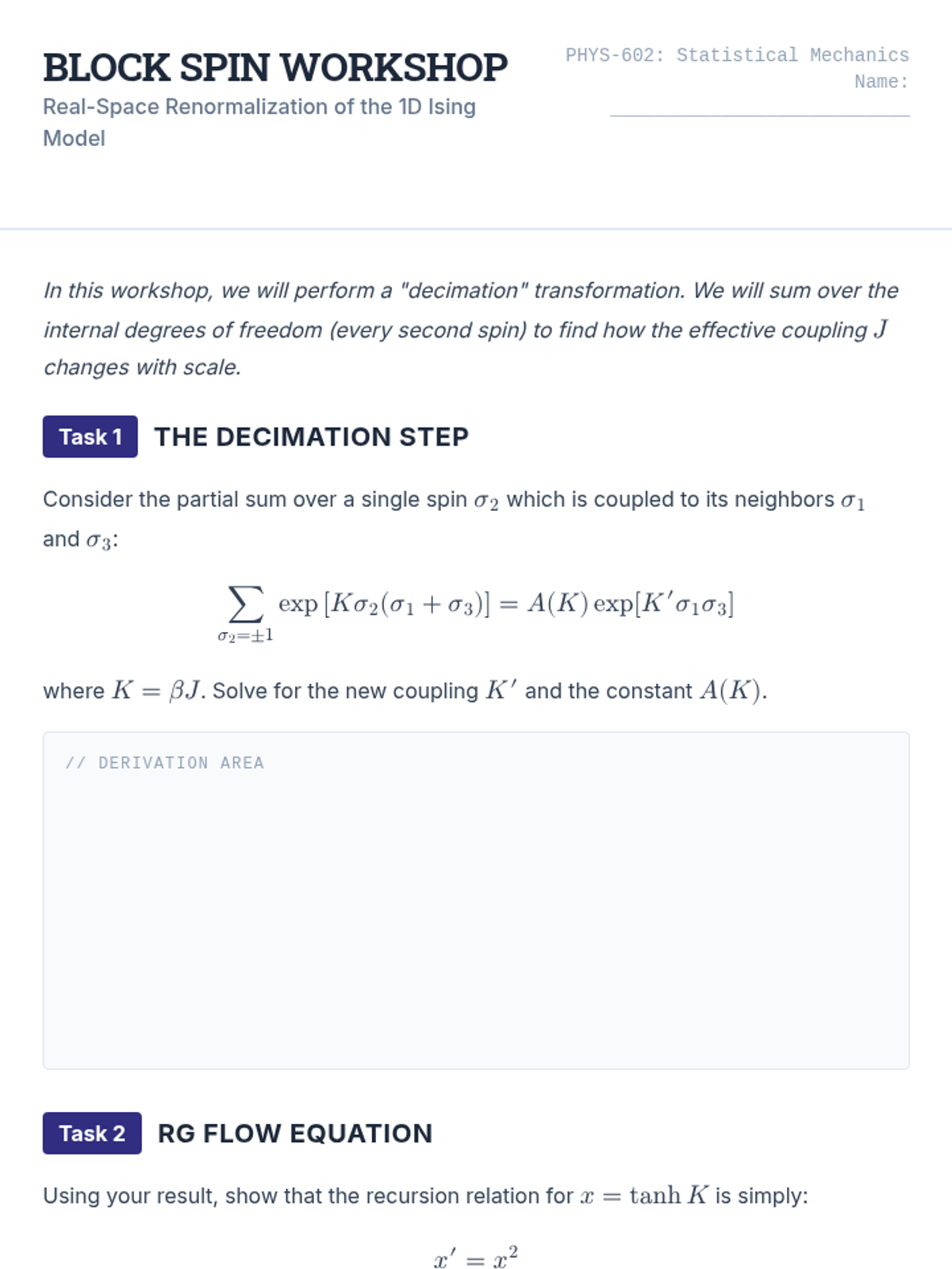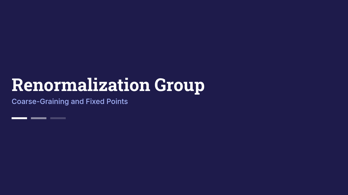 Introduction to the Renormalization Group (RG) framework, covering block spins, parameter flow, and fixed points.