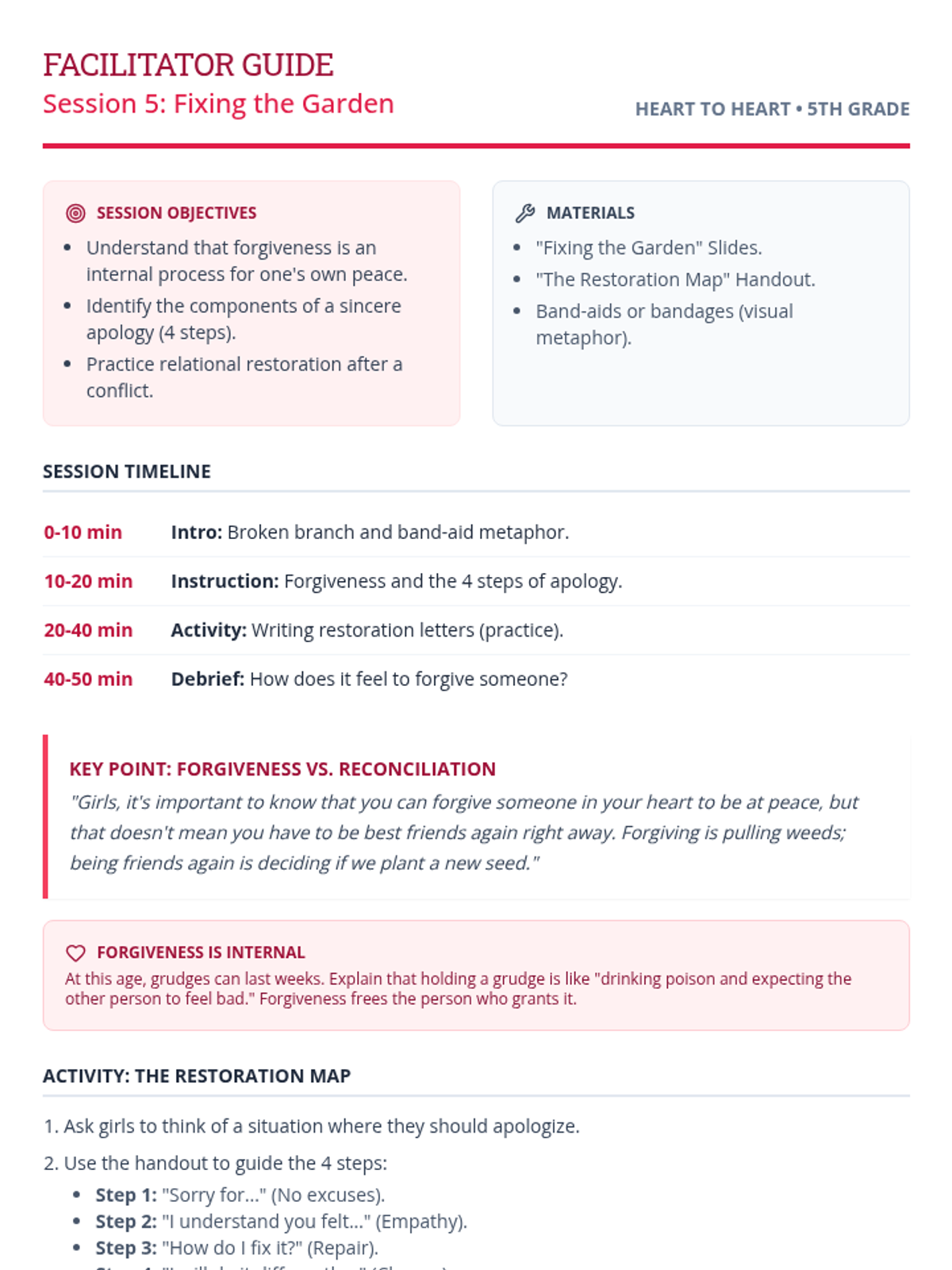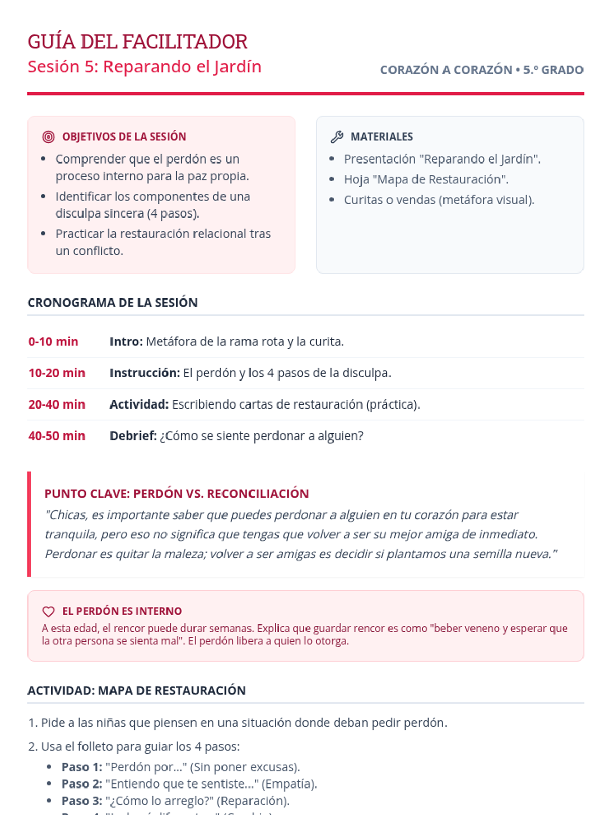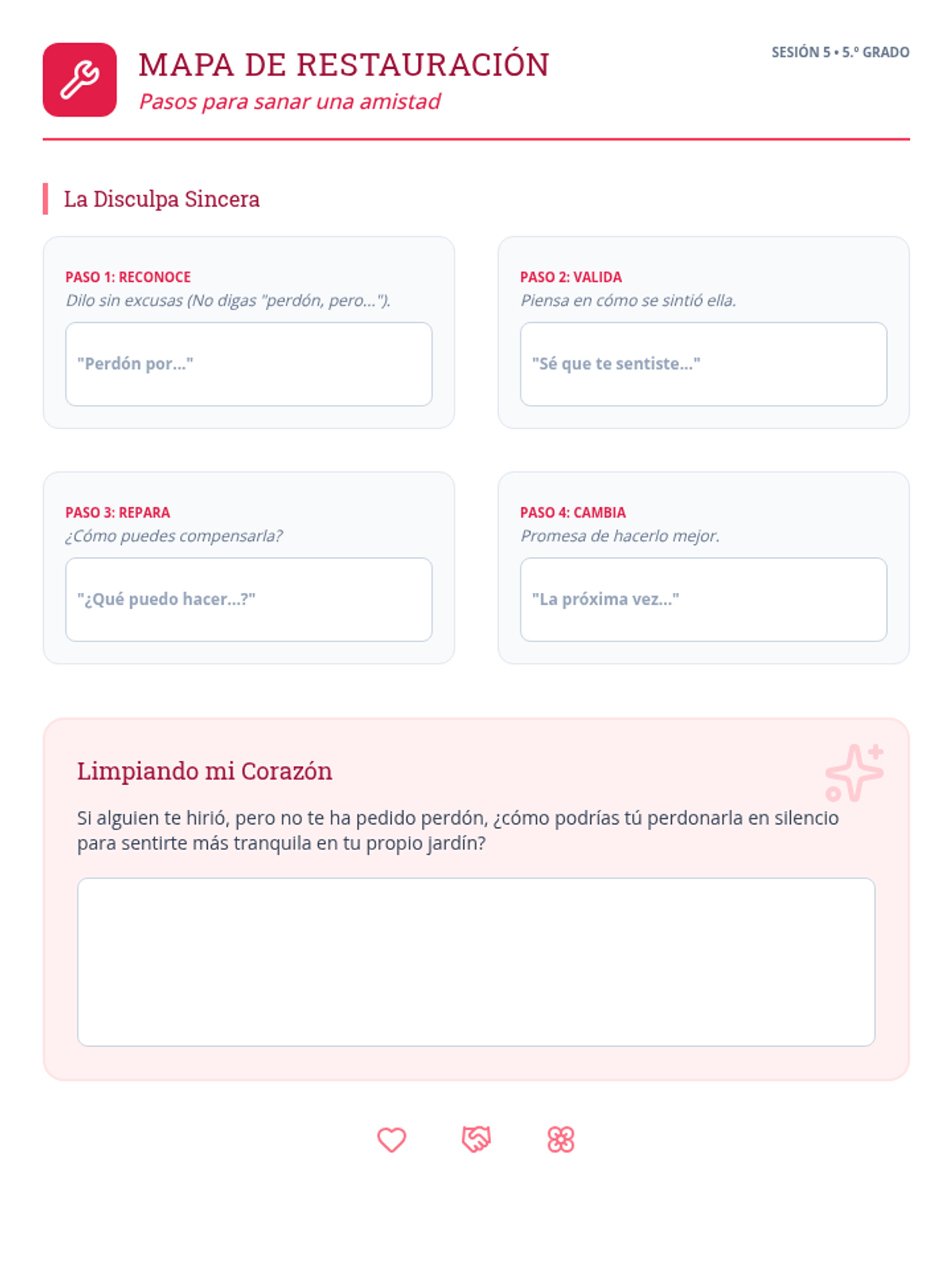 Enfoque en el perdón y la disculpa sincera, aprendiendo cómo "reparar" una rama rota en una amistad para que pueda volver a crecer con fuerza.