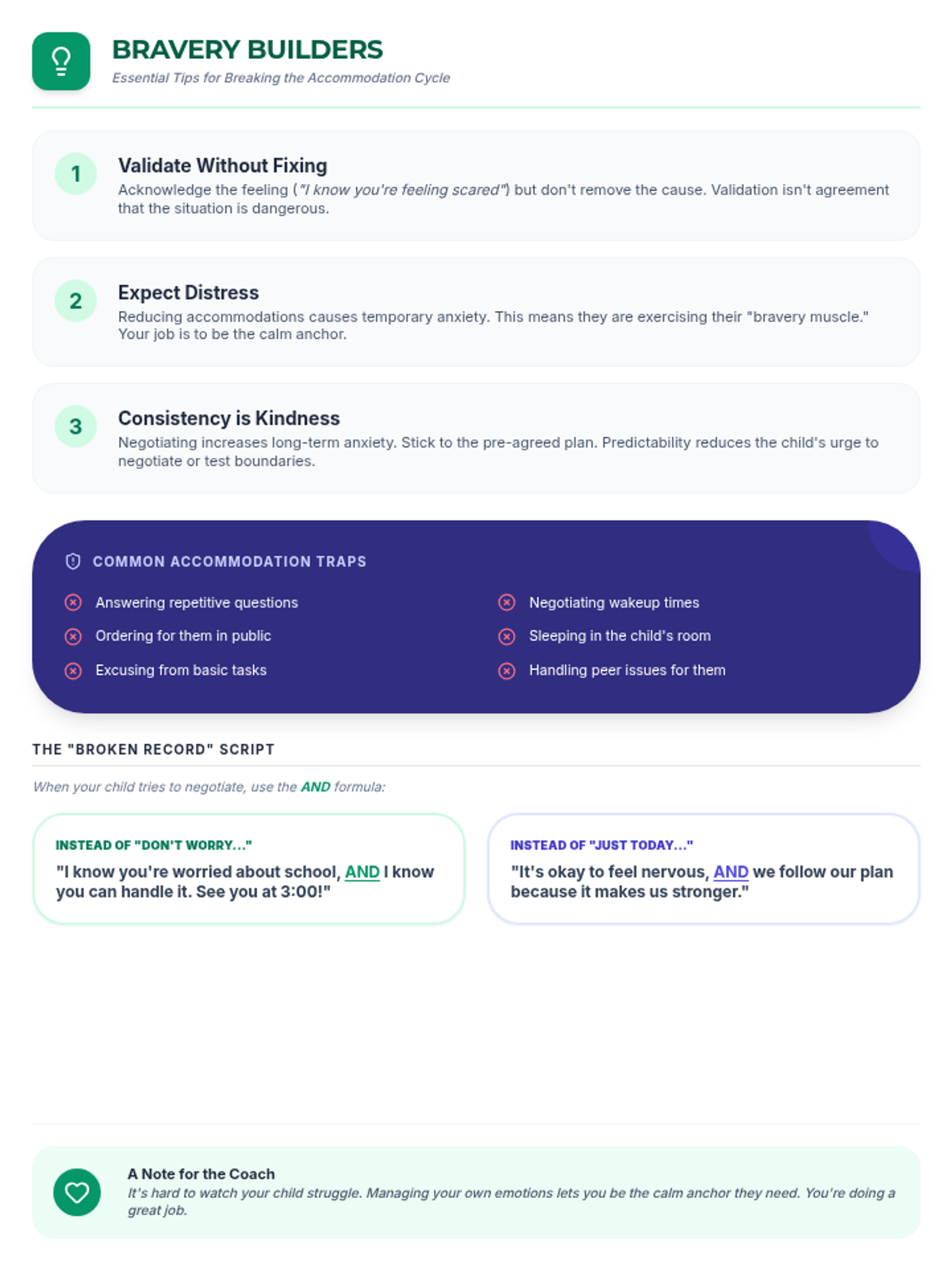 A collection of resources designed to help parents and educators identify, monitor, and systematically reduce anxiety accommodations, with a specific focus on overcoming school refusal and fostering child independence.