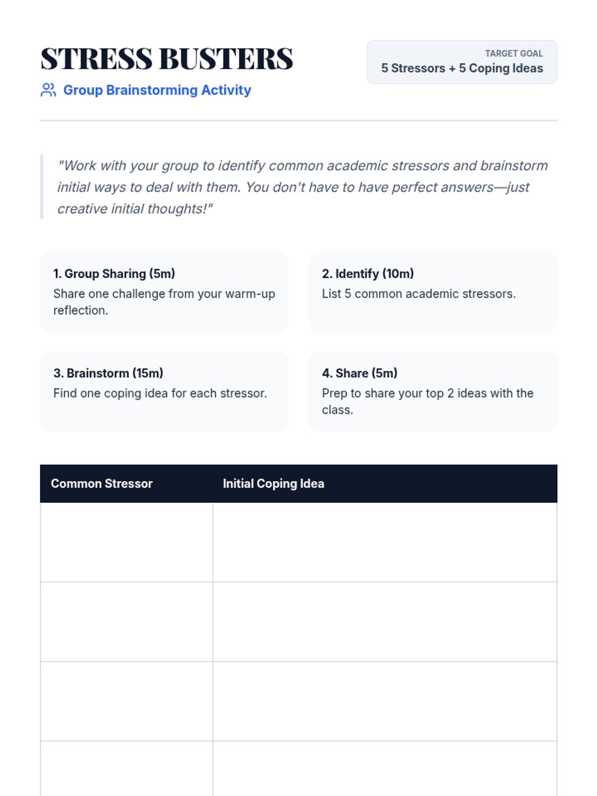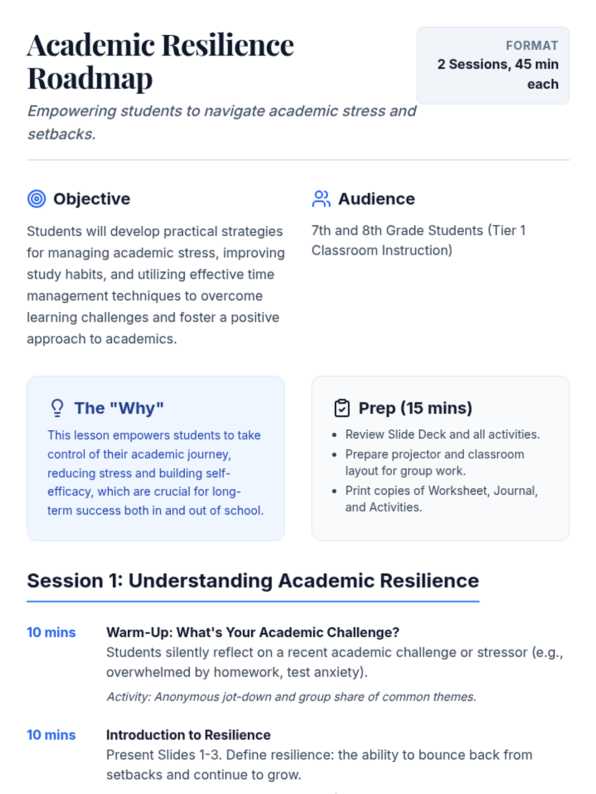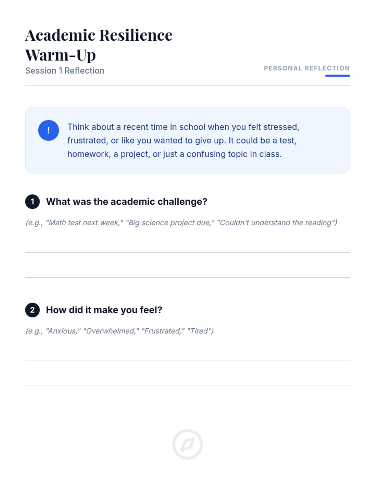 Students define academic resilience, identify their own stressors, and learn about the body's response to academic pressure.
