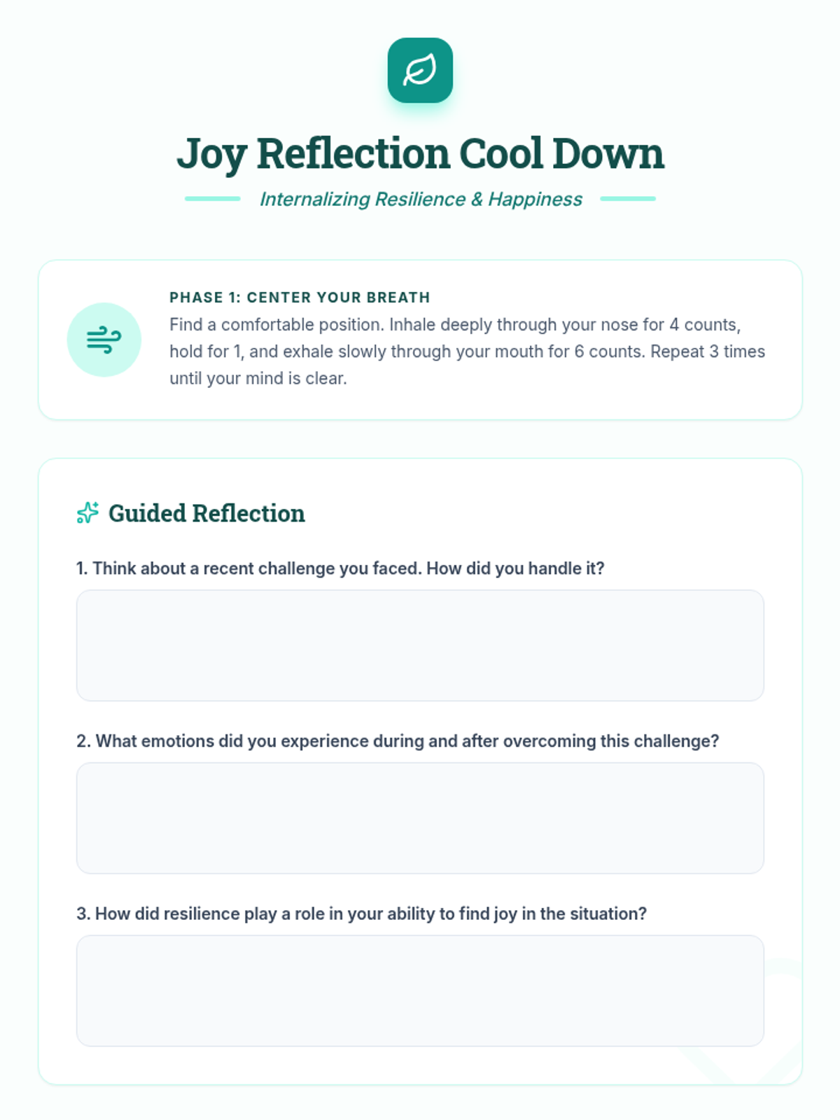 Students will explore a variety of sensory and cognitive coping strategies. They will evaluate which techniques work best for them and begin building their personal 'Coping Menu'.