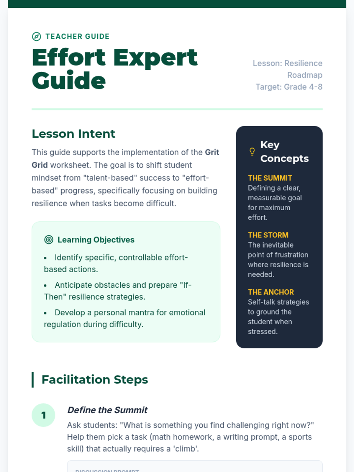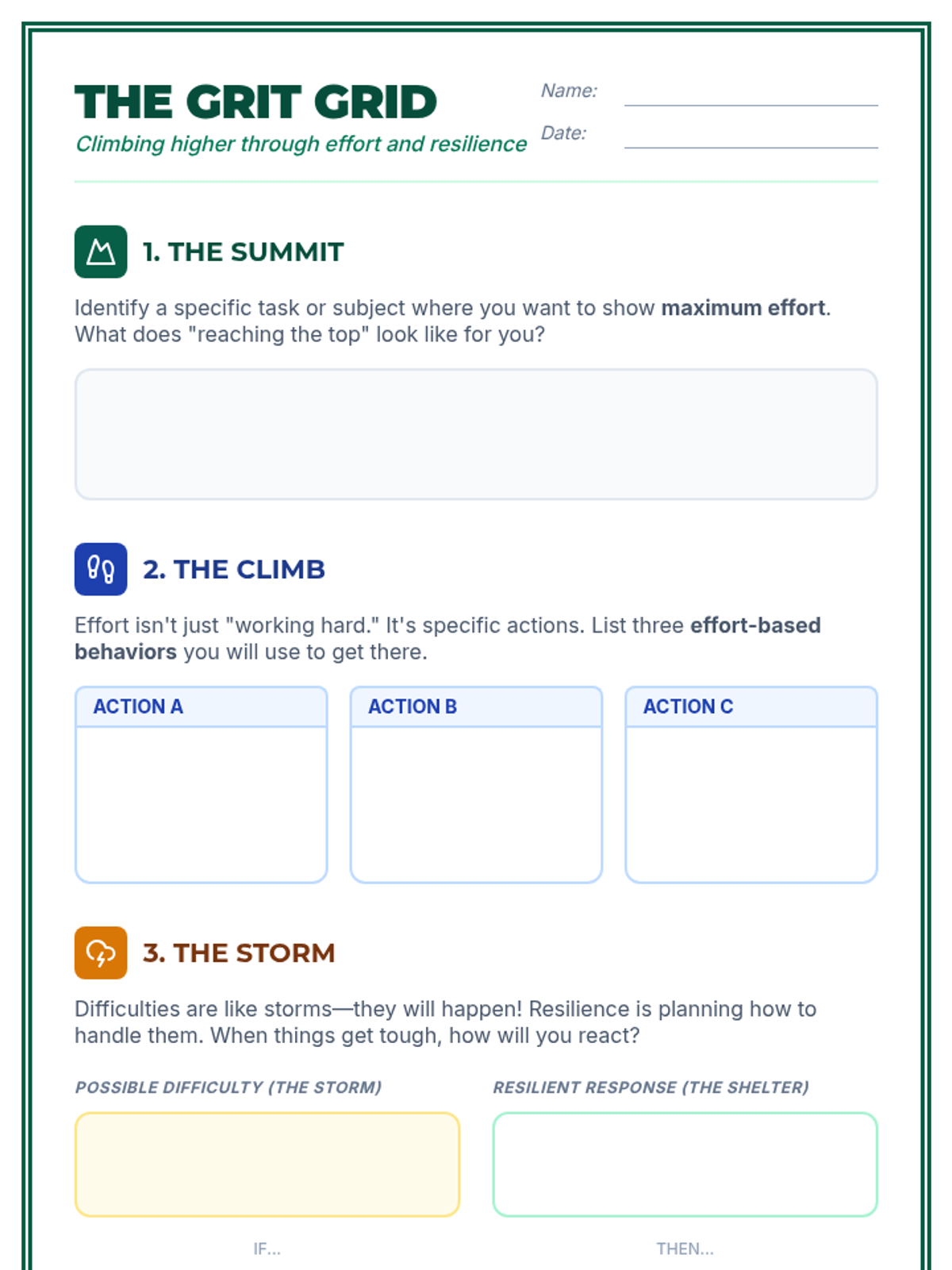 A lesson focused on helping students identify areas where they can increase their effort and develop specific strategies to persevere through challenges.