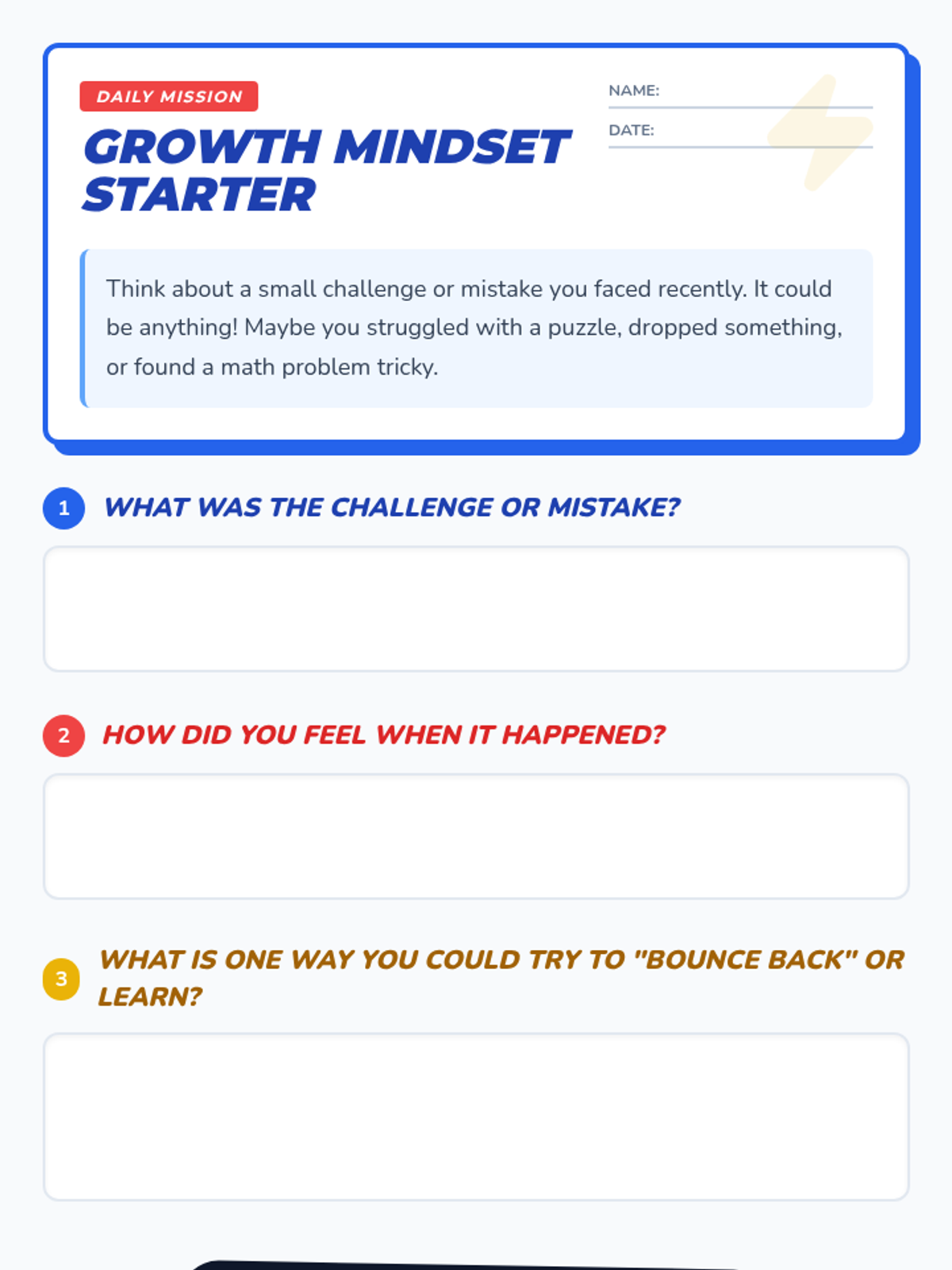 Introduction to the growth mindset. Focus on the 'Power of Yet' and building resilience when facing initial failure.