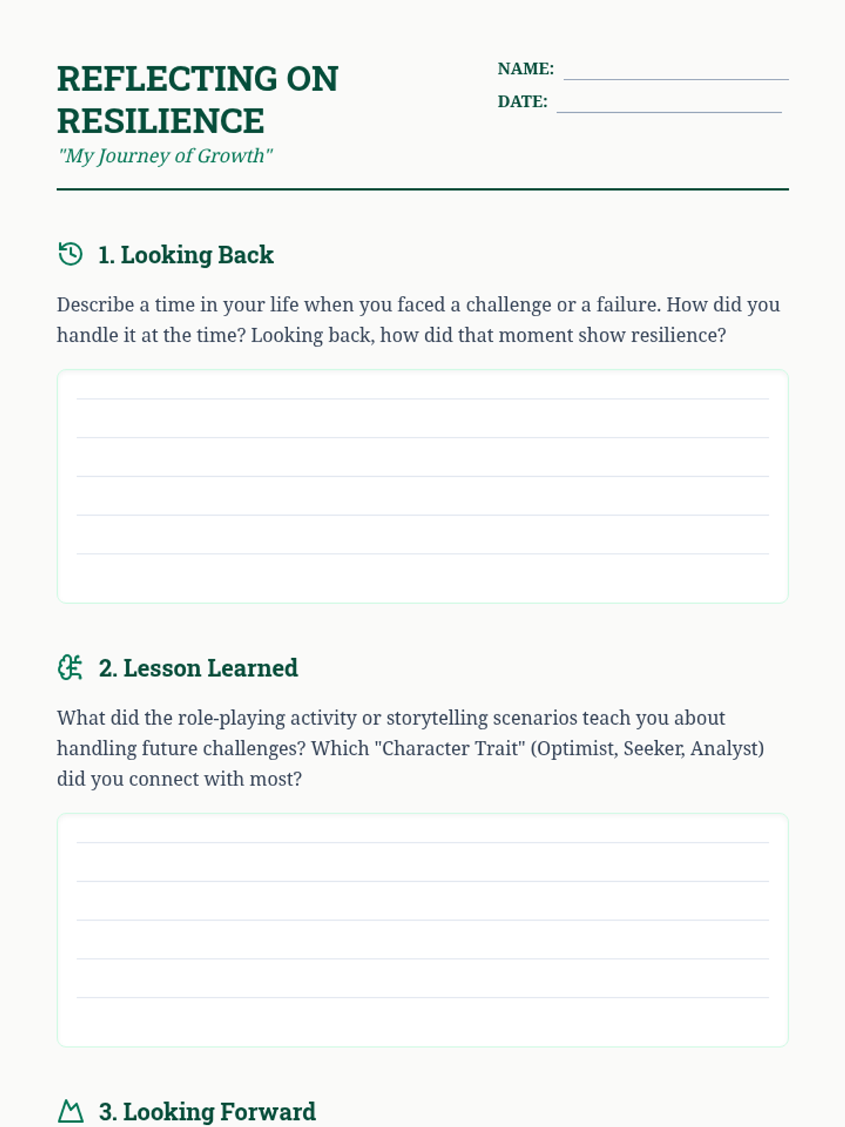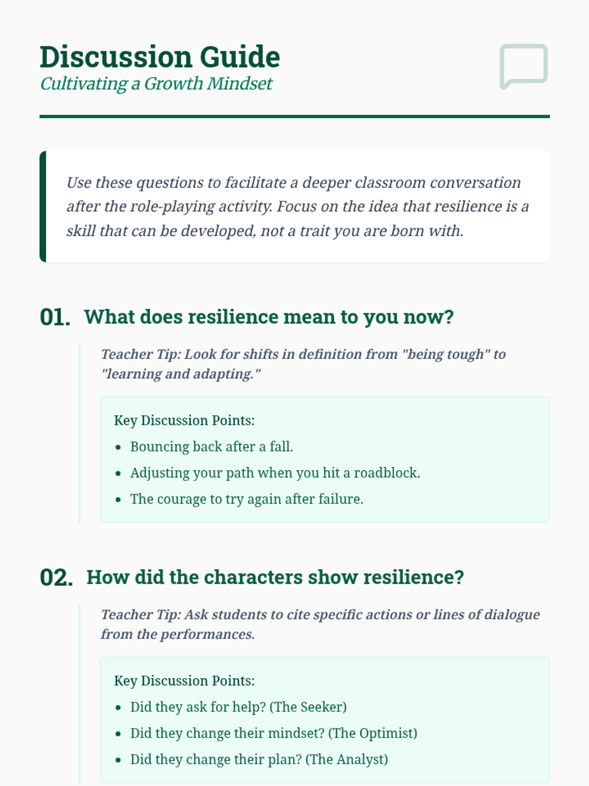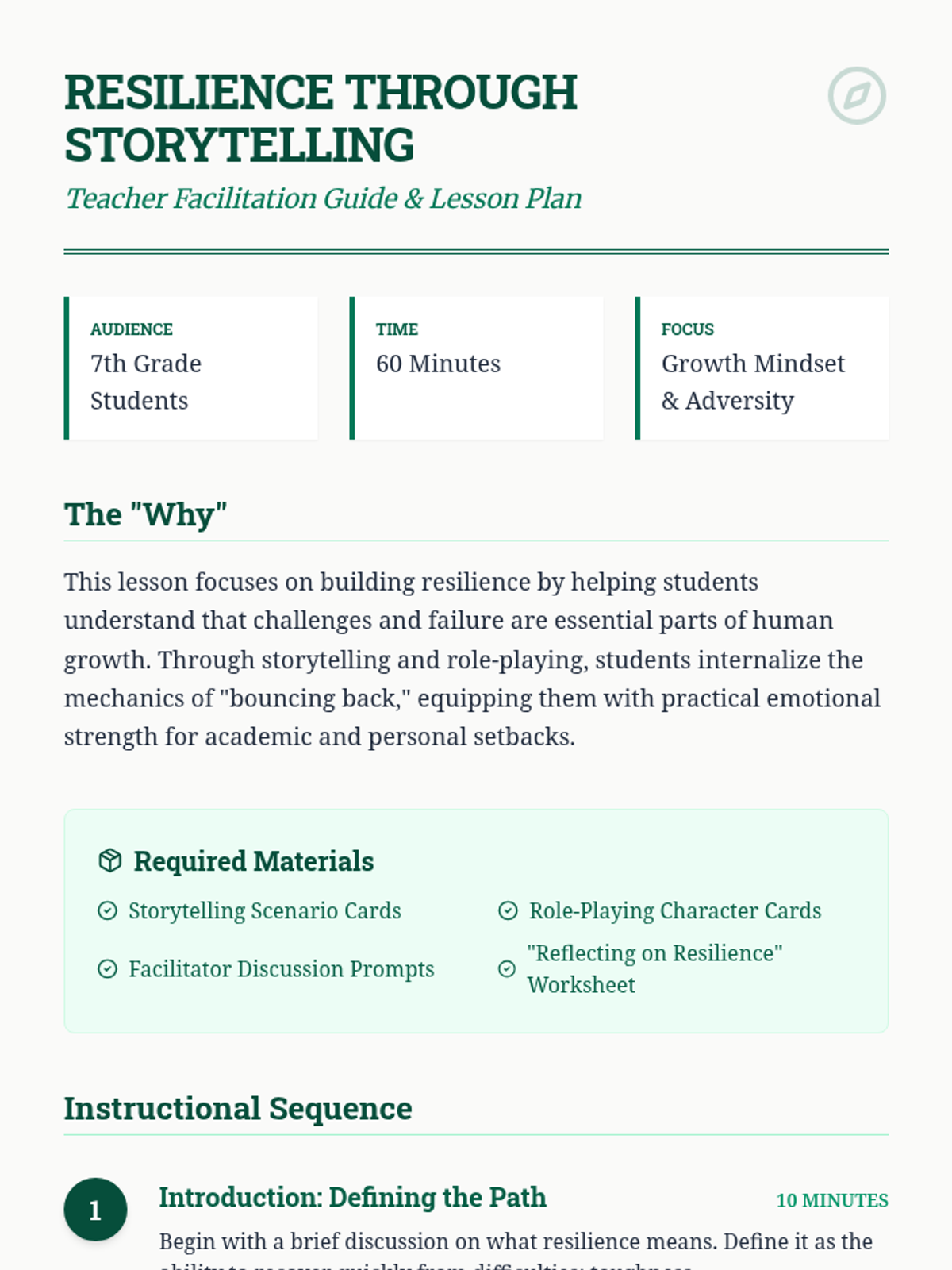 A 7th-grade lesson focusing on building resilience through storytelling and role-play, helping students view setbacks as opportunities for growth.