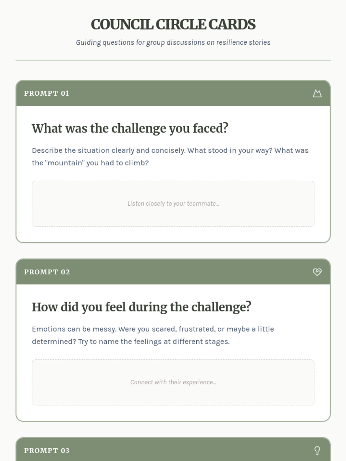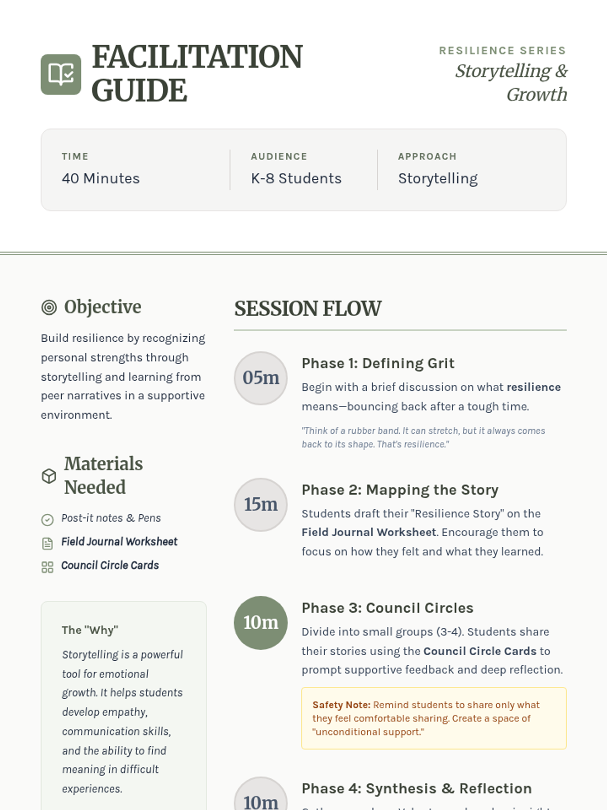 A lesson where students share personal stories of overcoming challenges to build resilience, empathy, and communication skills through a 'Field Journal' storytelling approach.