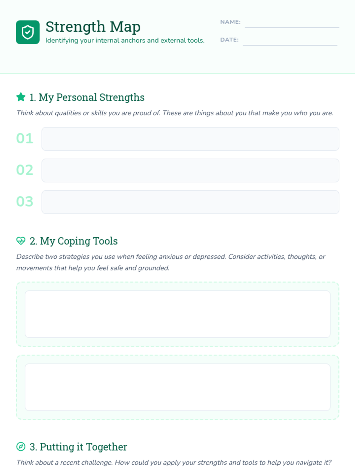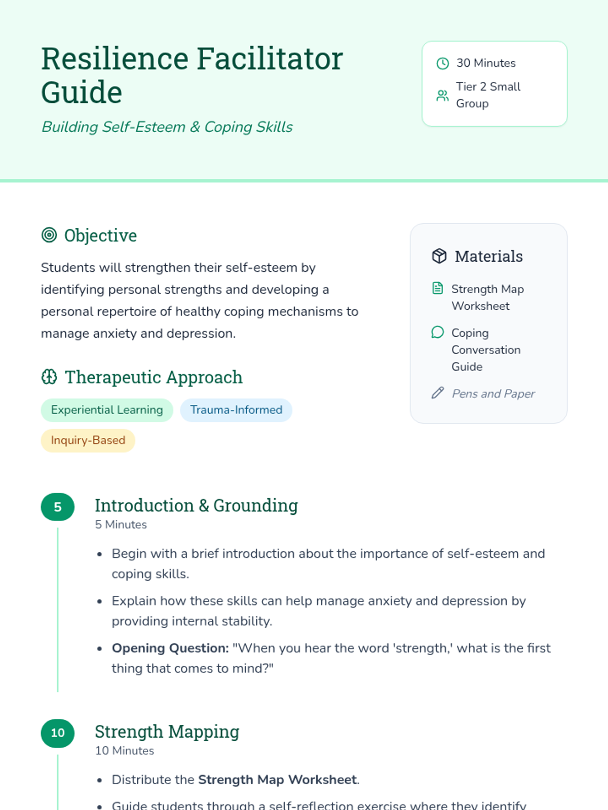 A Tier 2 intervention lesson designed to support students with anxiety and depression by identifying personal strengths and developing healthy coping mechanisms. This session uses experiential learning and trauma-informed practices to build emotional resilience.