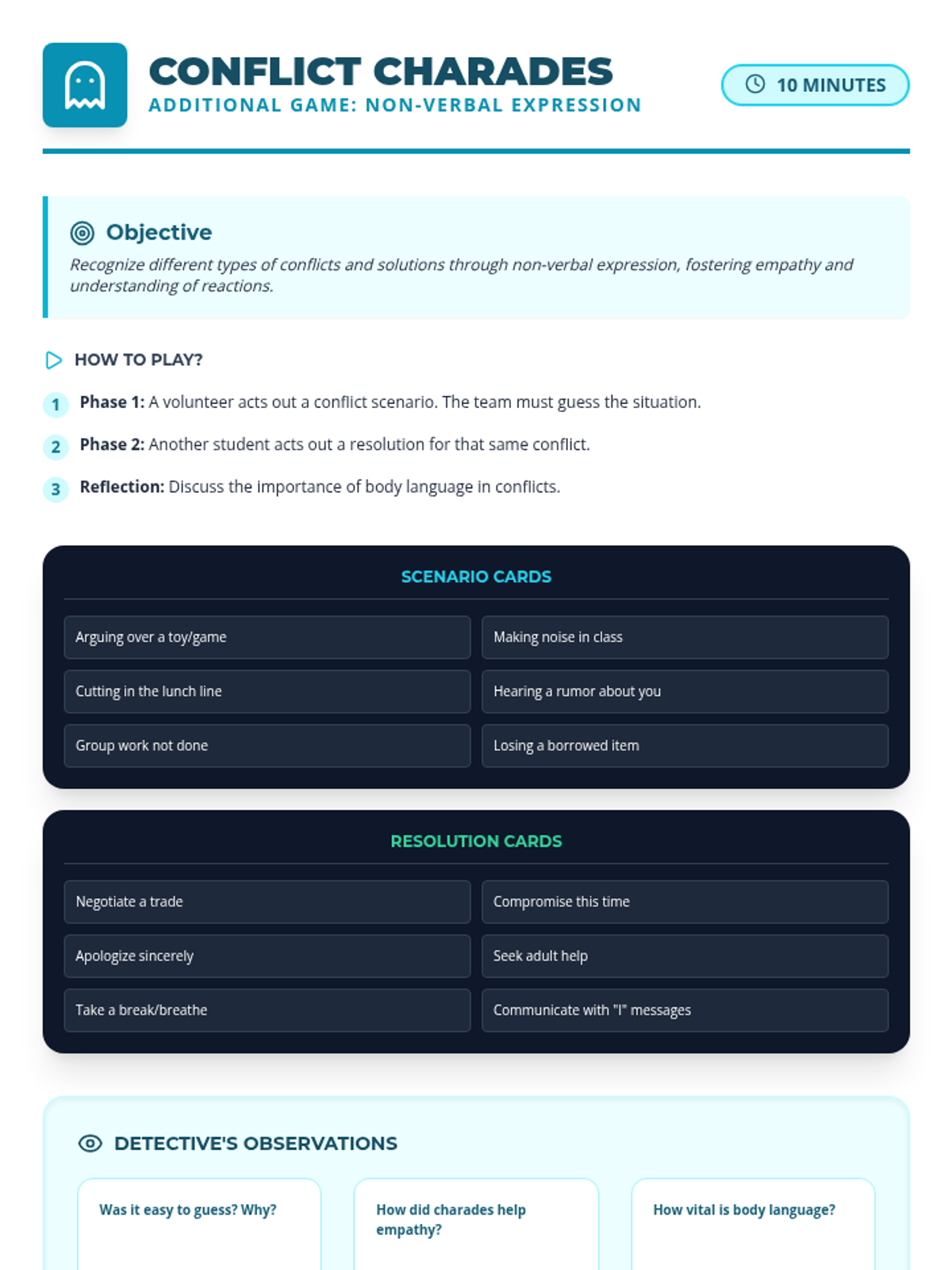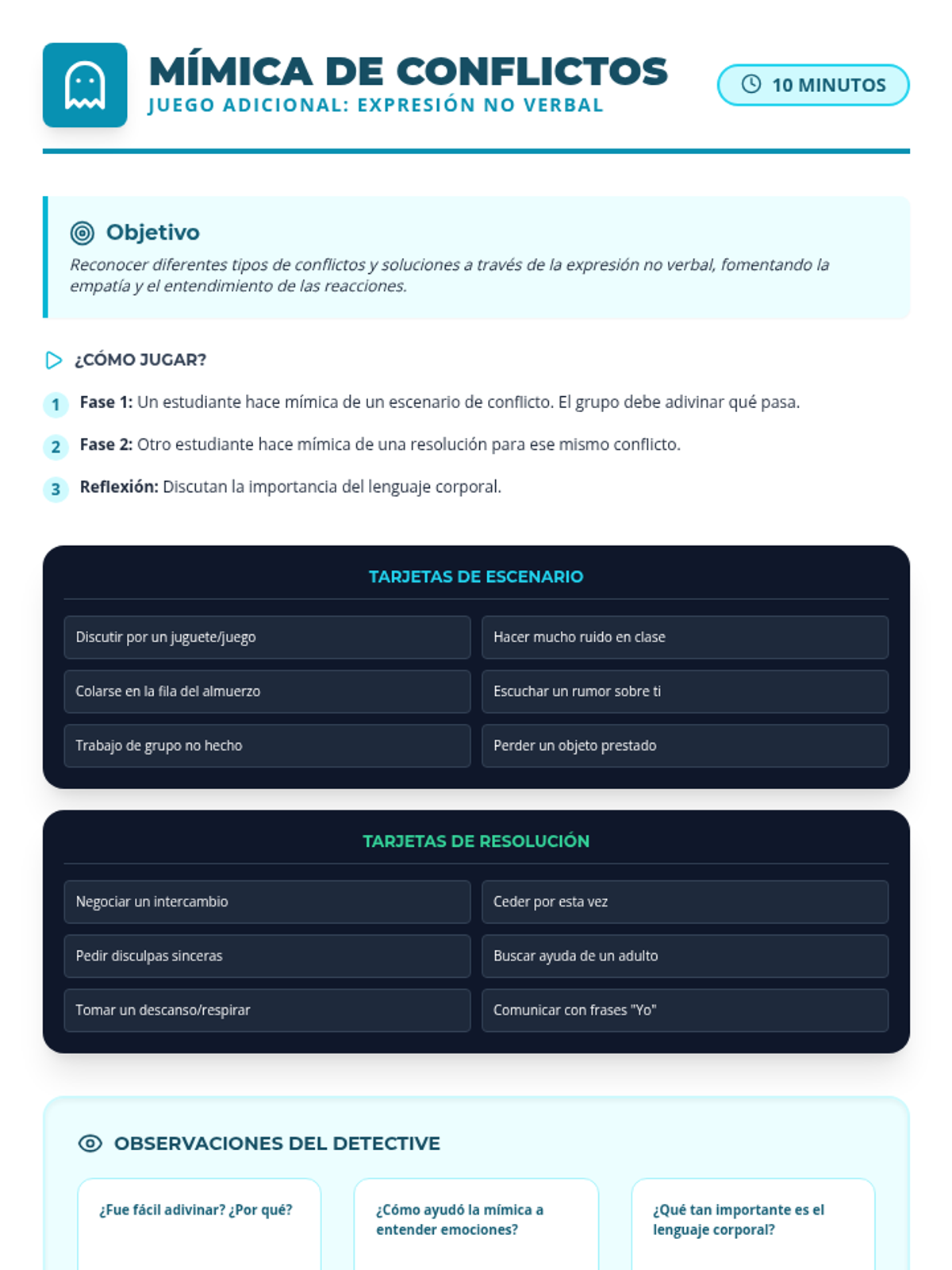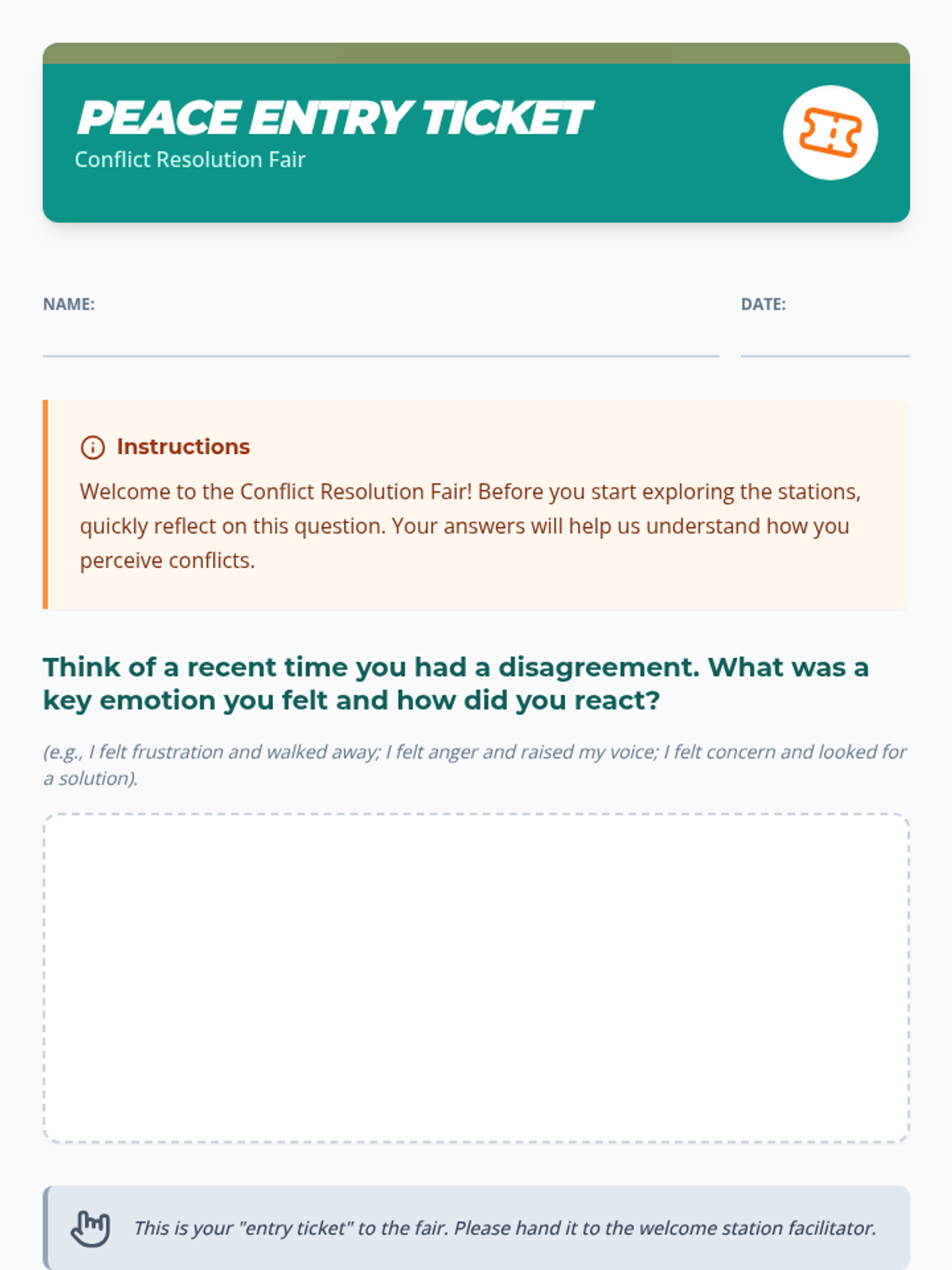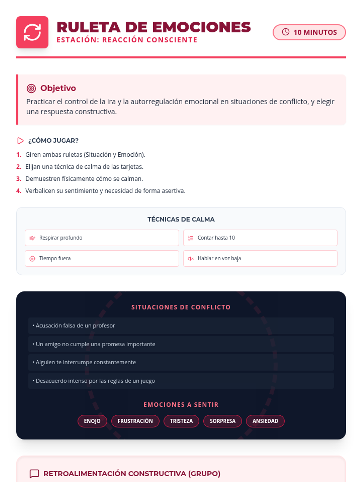 Una feria interactiva donde estudiantes de 6º y 7º grado exploran técnicas de negociación, comunicación asertiva y resolución de conflictos a través de estaciones dinámicas. / An interactive fair where 6th and 7th-grade students explore negotiation, assertive communication, and conflict resolution techniques through dynamic stations.