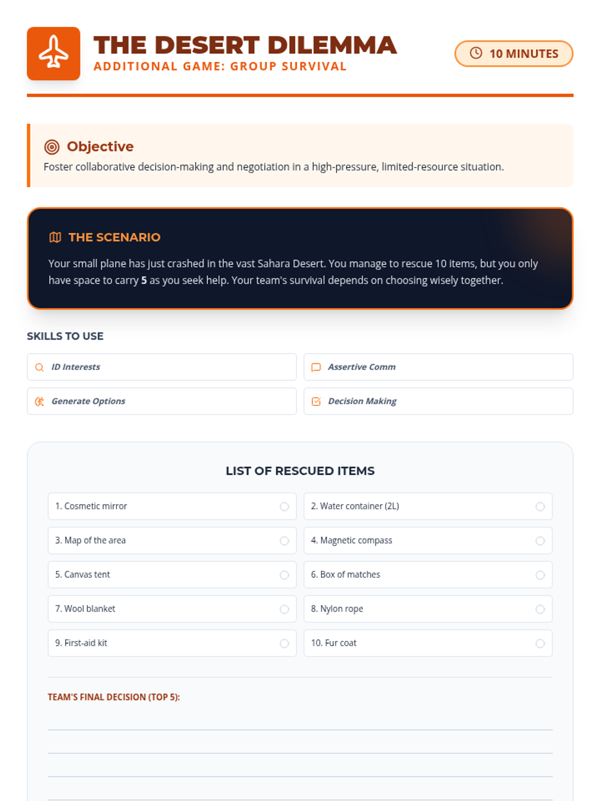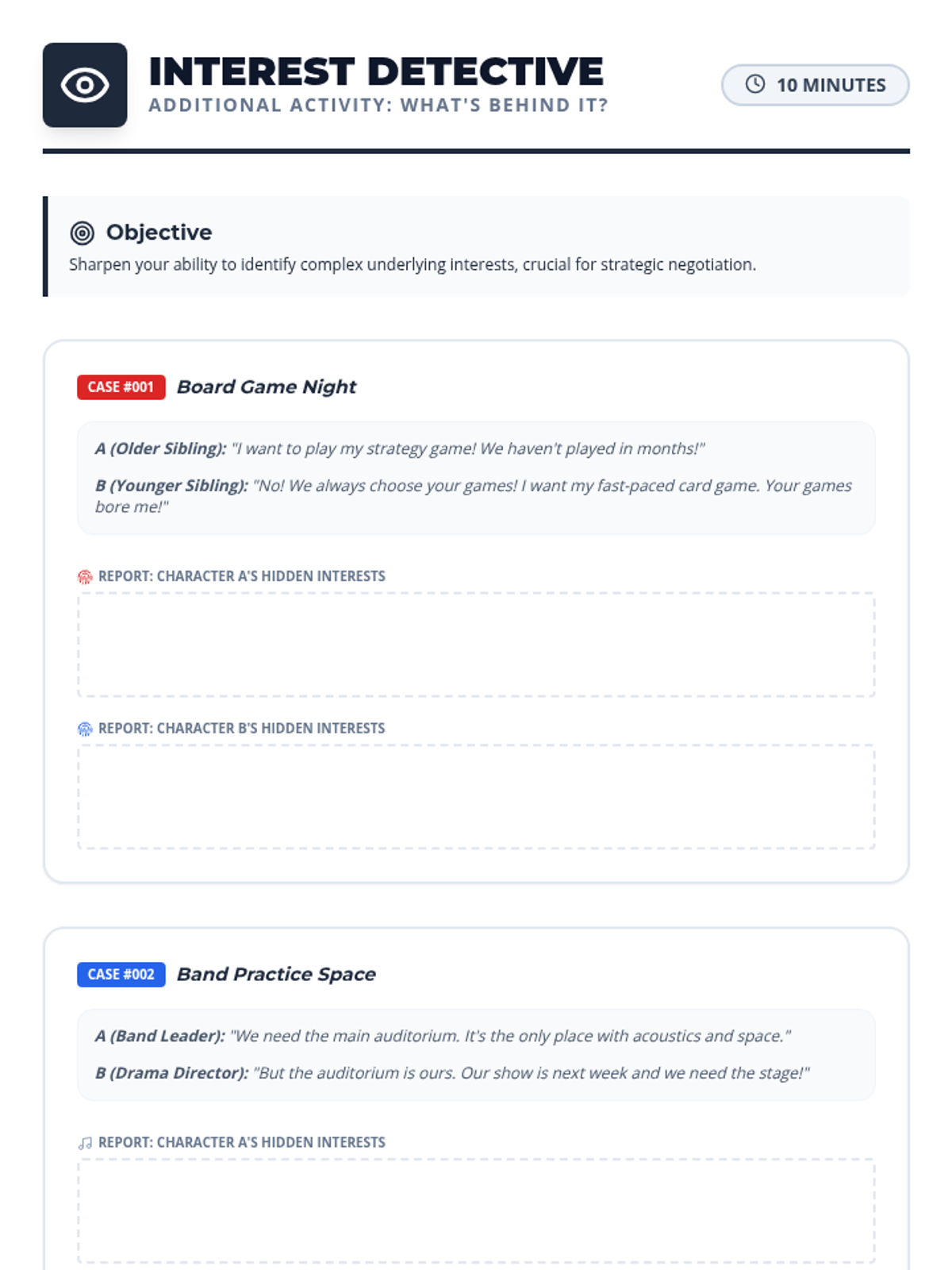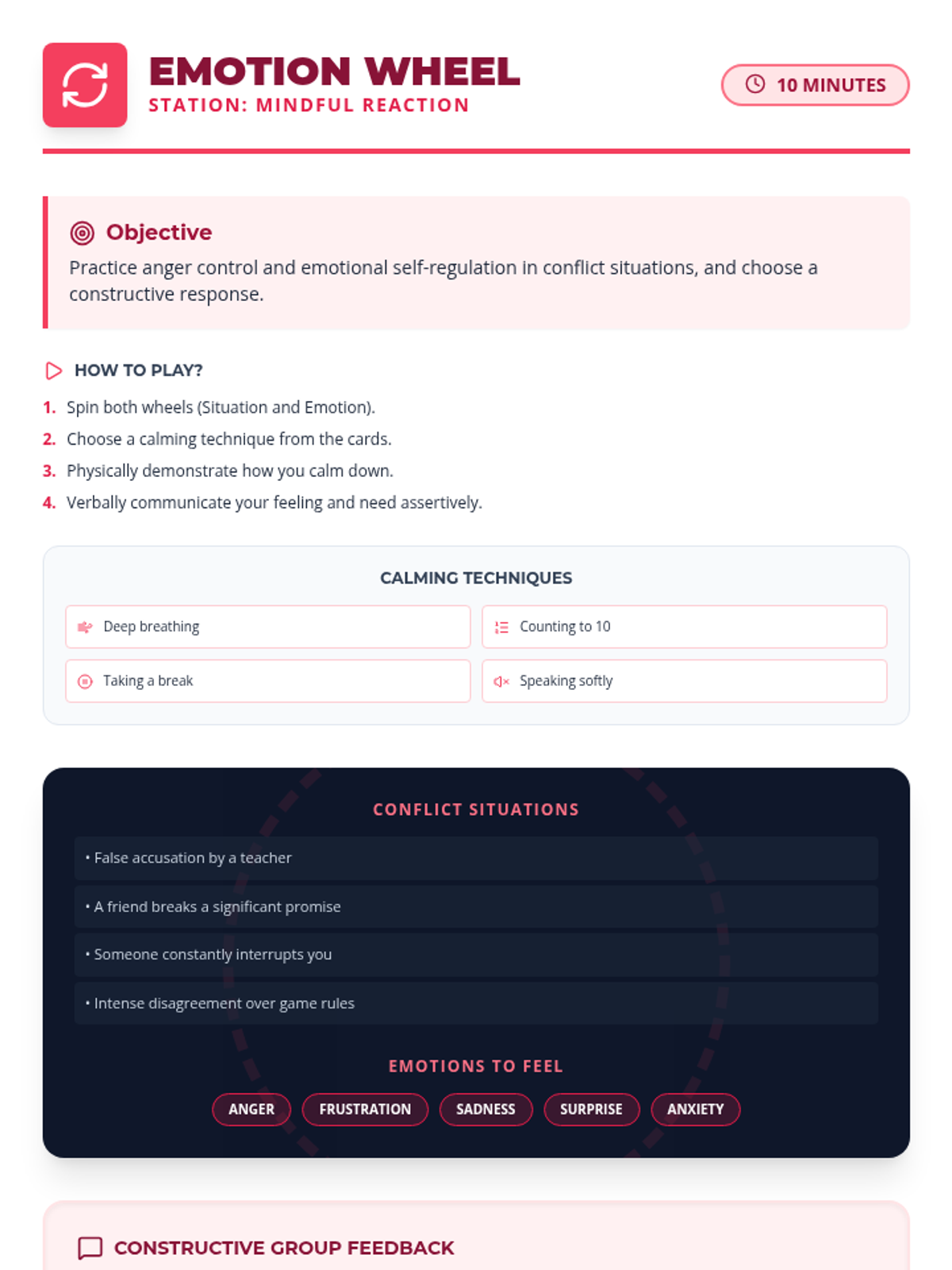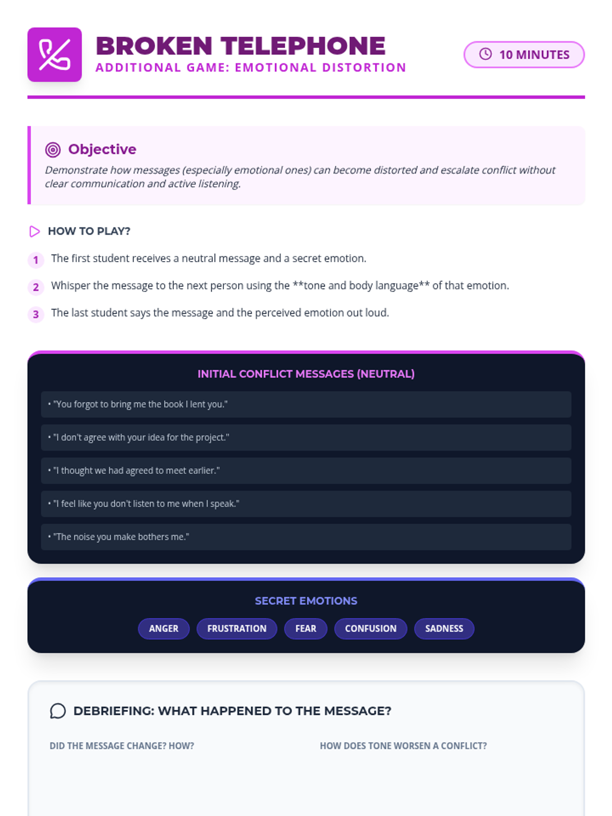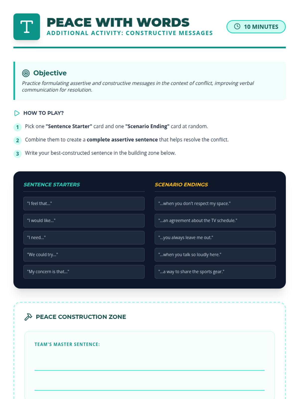 Una feria interactiva donde estudiantes de 6º y 7º grado exploran técnicas de negociación, comunicación asertiva y resolución de conflictos a través de estaciones dinámicas. / An interactive fair where 6th and 7th-grade students explore negotiation, assertive communication, and conflict resolution techniques through dynamic stations.