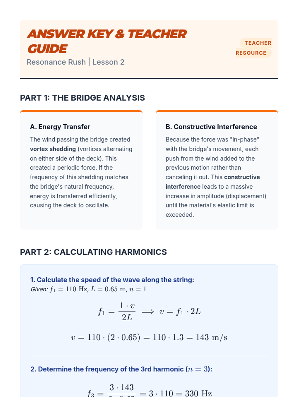 Analyze the phenomenon of resonance and natural frequency through case studies of structural failures and musical applications.