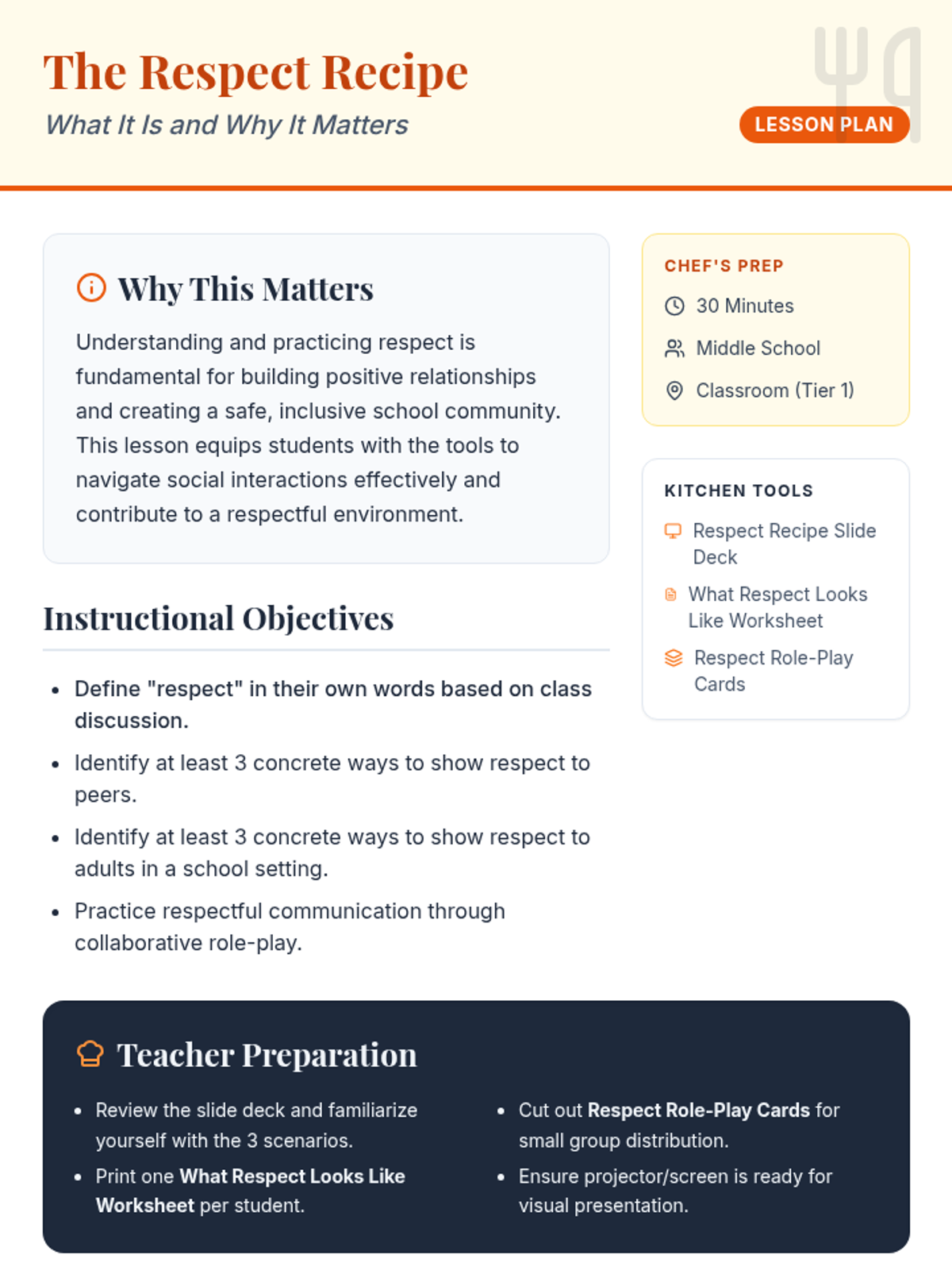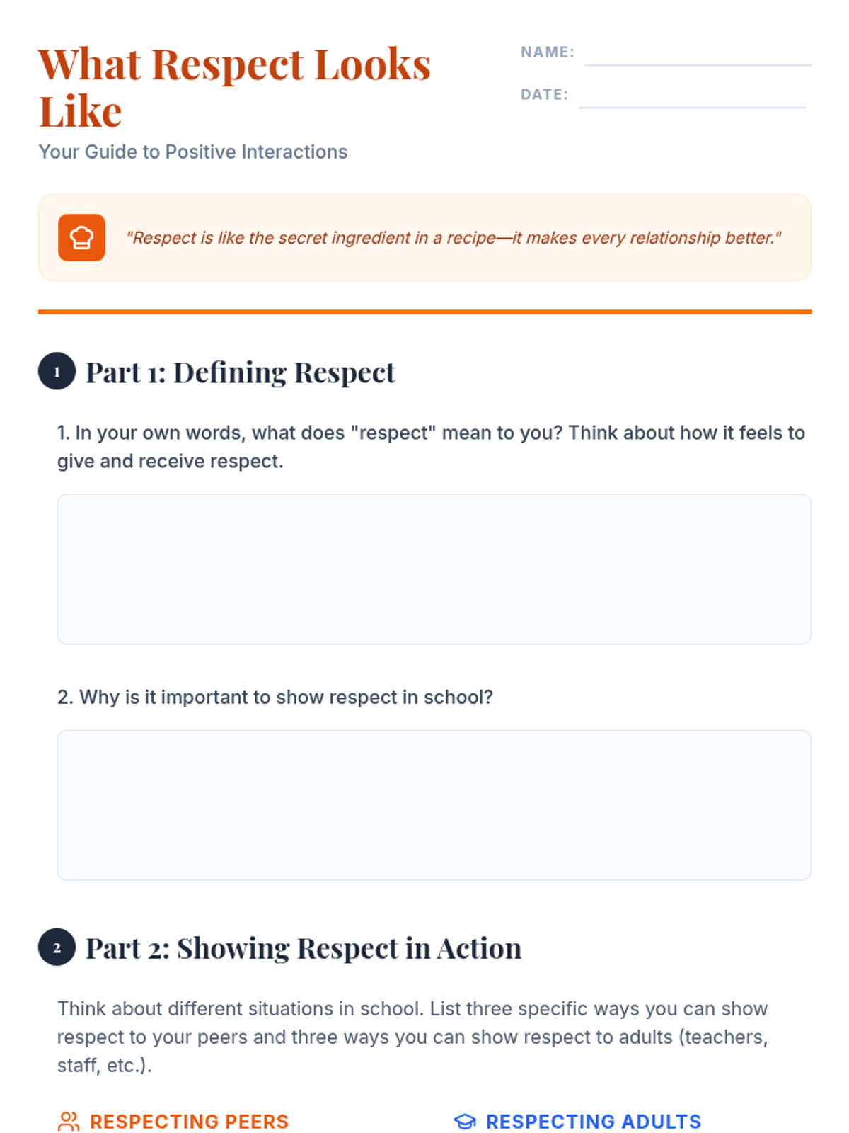 This lesson helps middle school students understand what respect truly means and why it's crucial for positive interactions. Students will learn to define respect and practice showing it to peers and adults, fostering a more harmonious school environment.