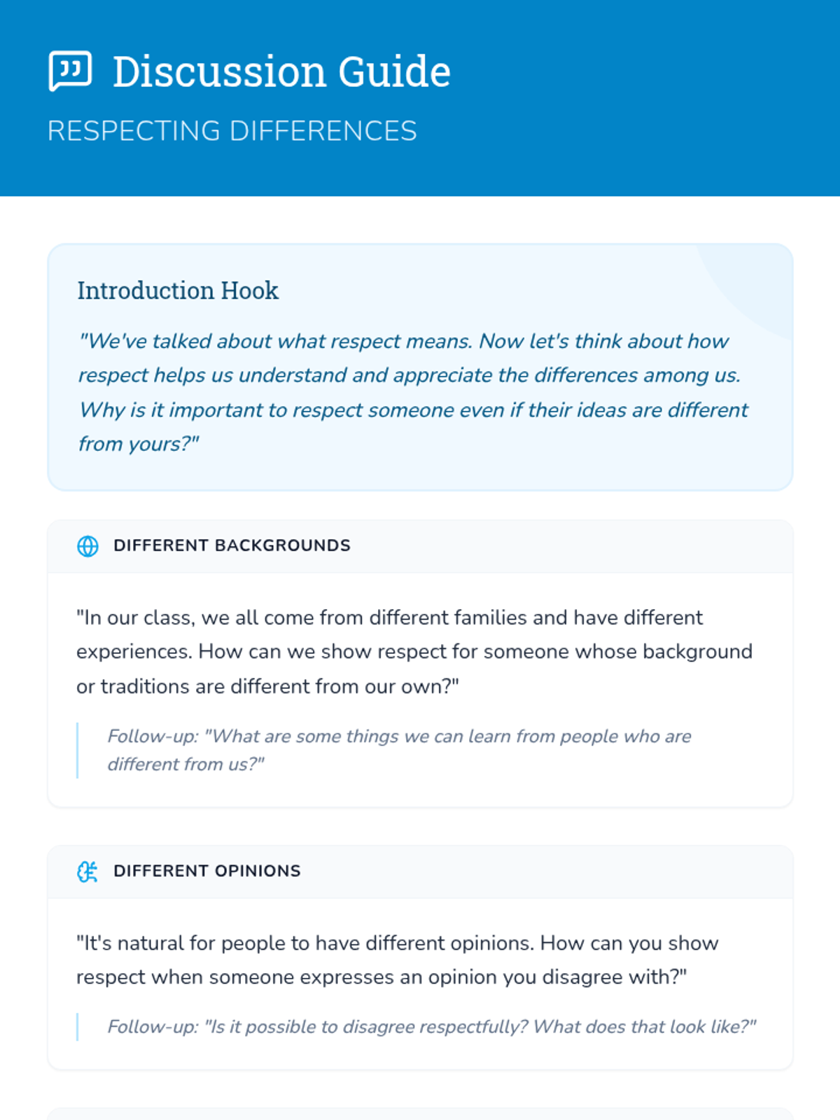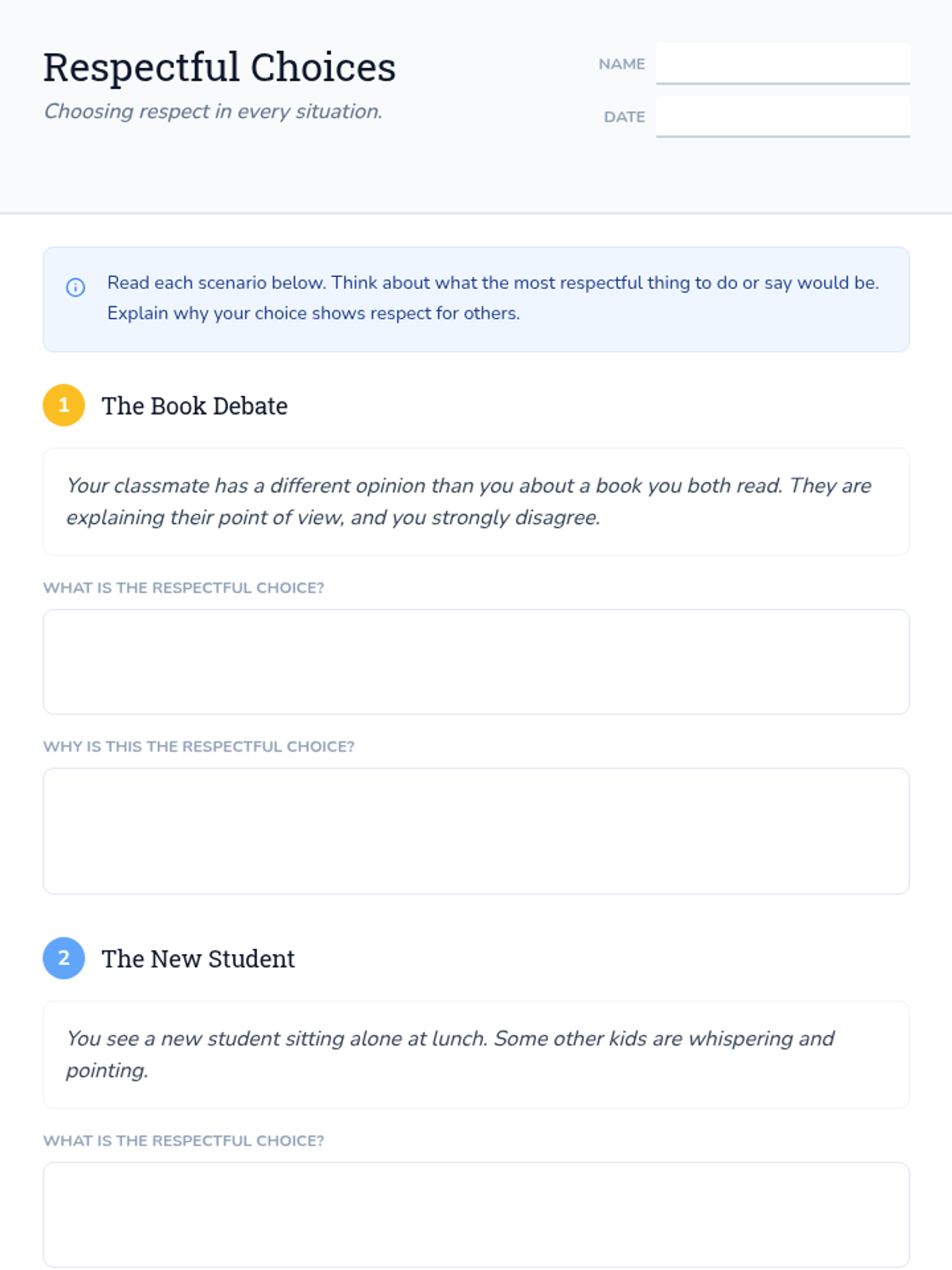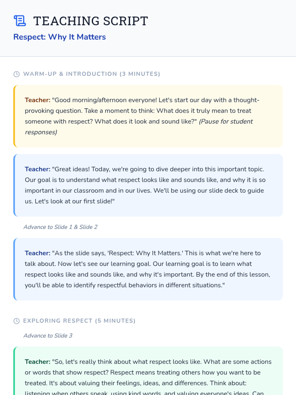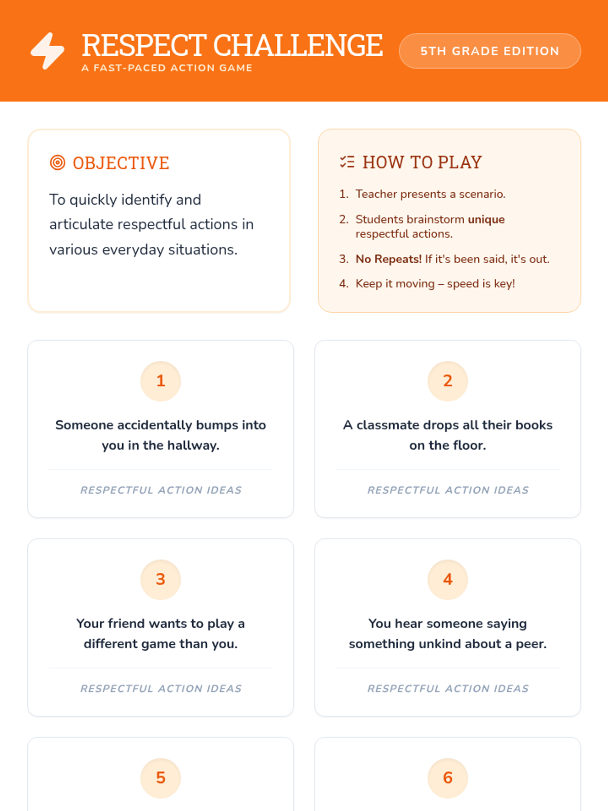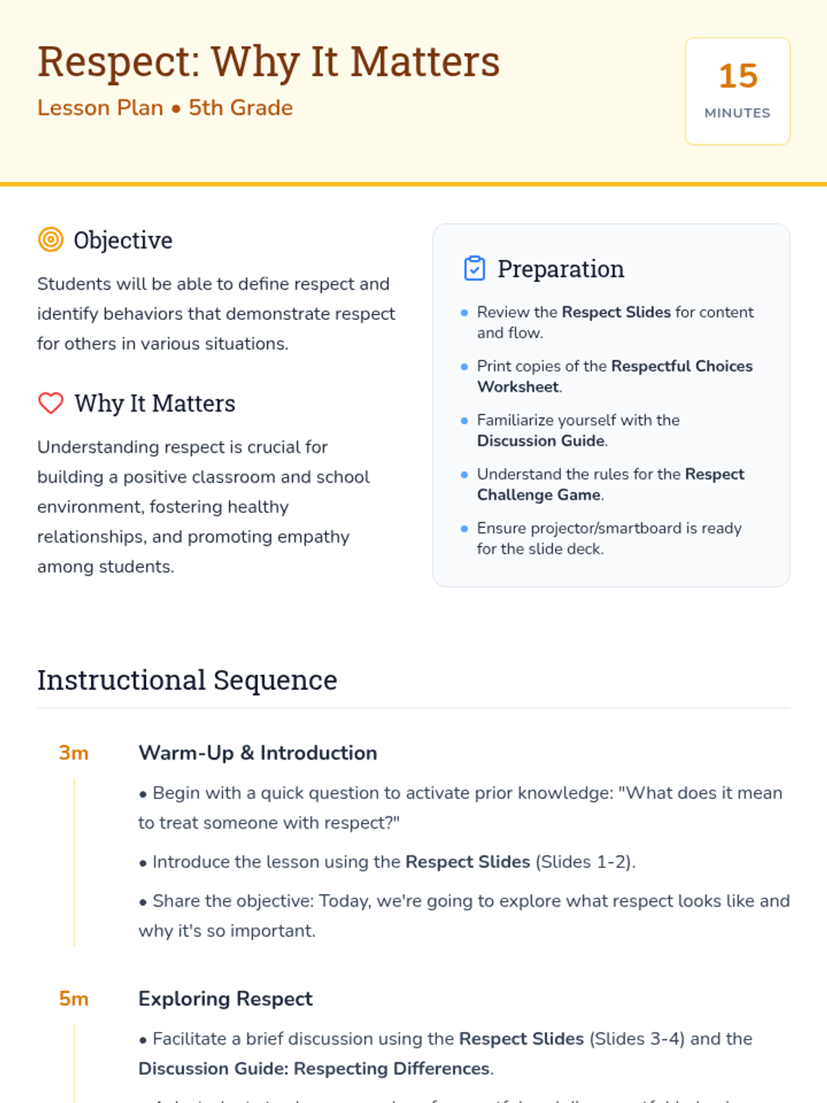 A 15-minute lesson for 5th graders to understand mutual respect, identify respectful behaviors, and build a positive classroom community.