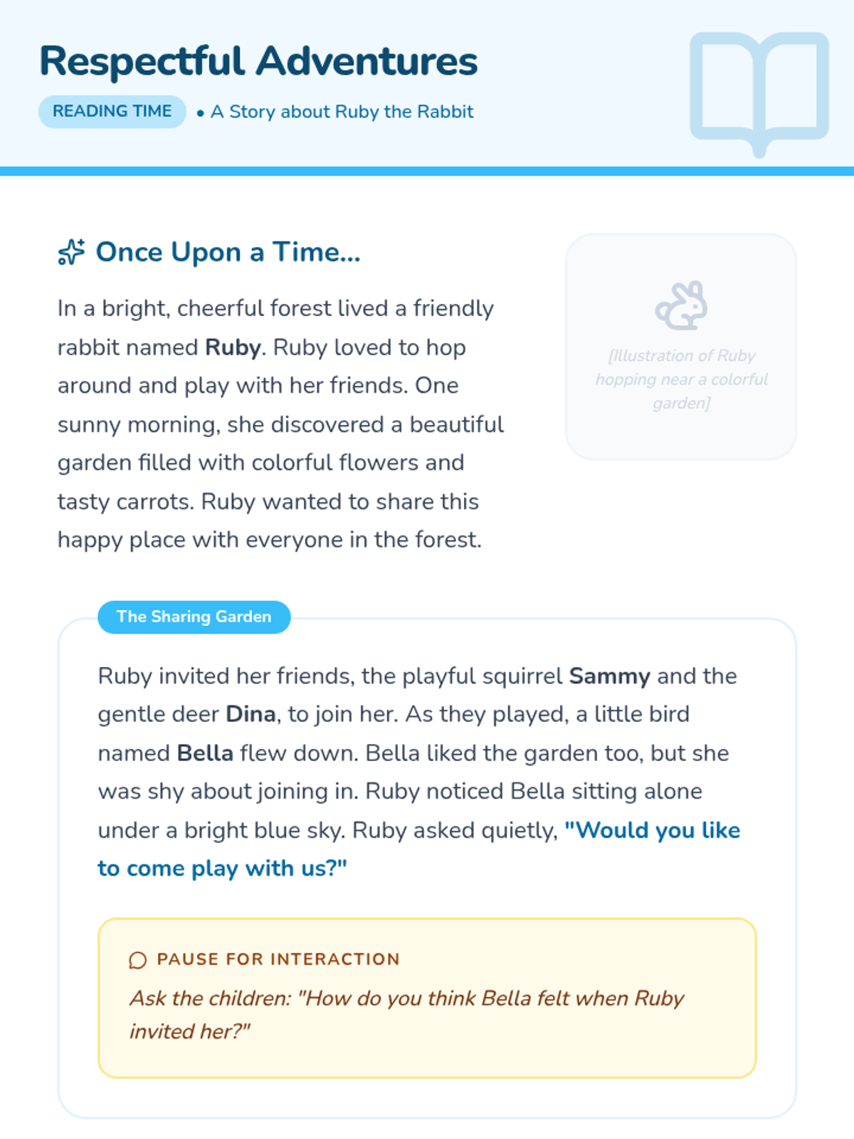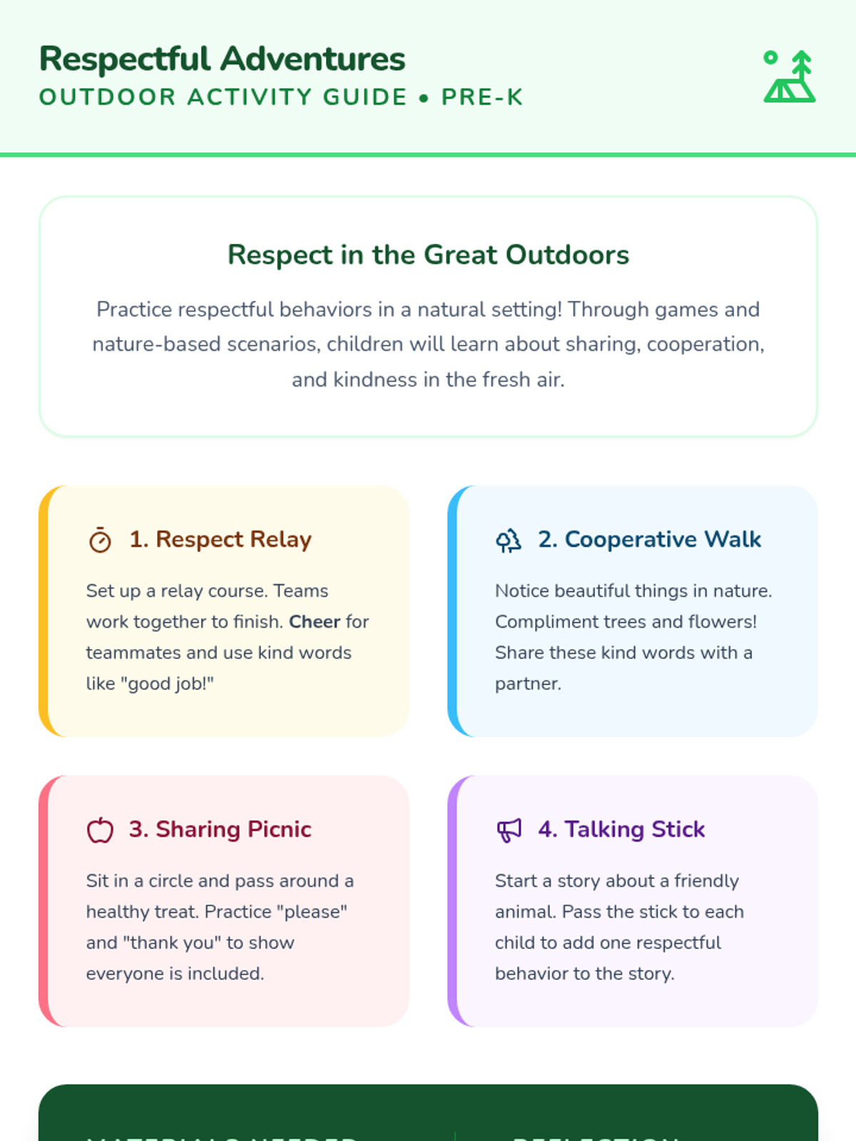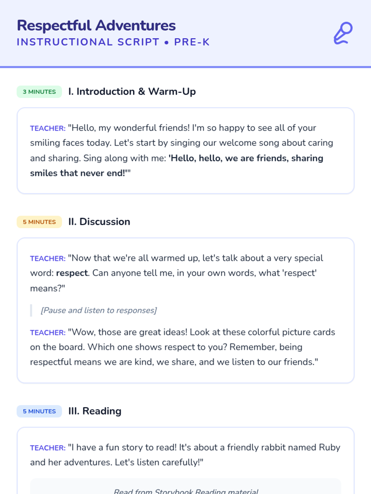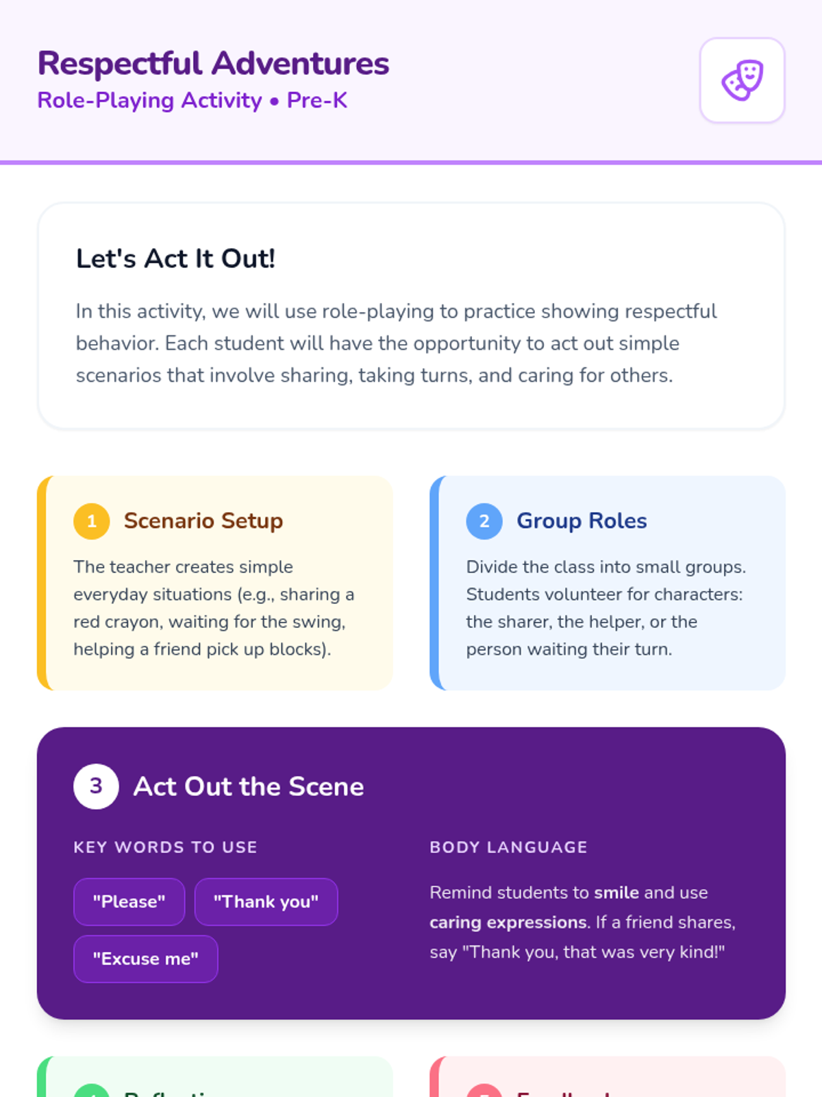 A 25-minute interactive lesson for pre-K students exploring respect, kindness, and consideration through storytelling, role-play, and a creative 'Respect Tree' project.