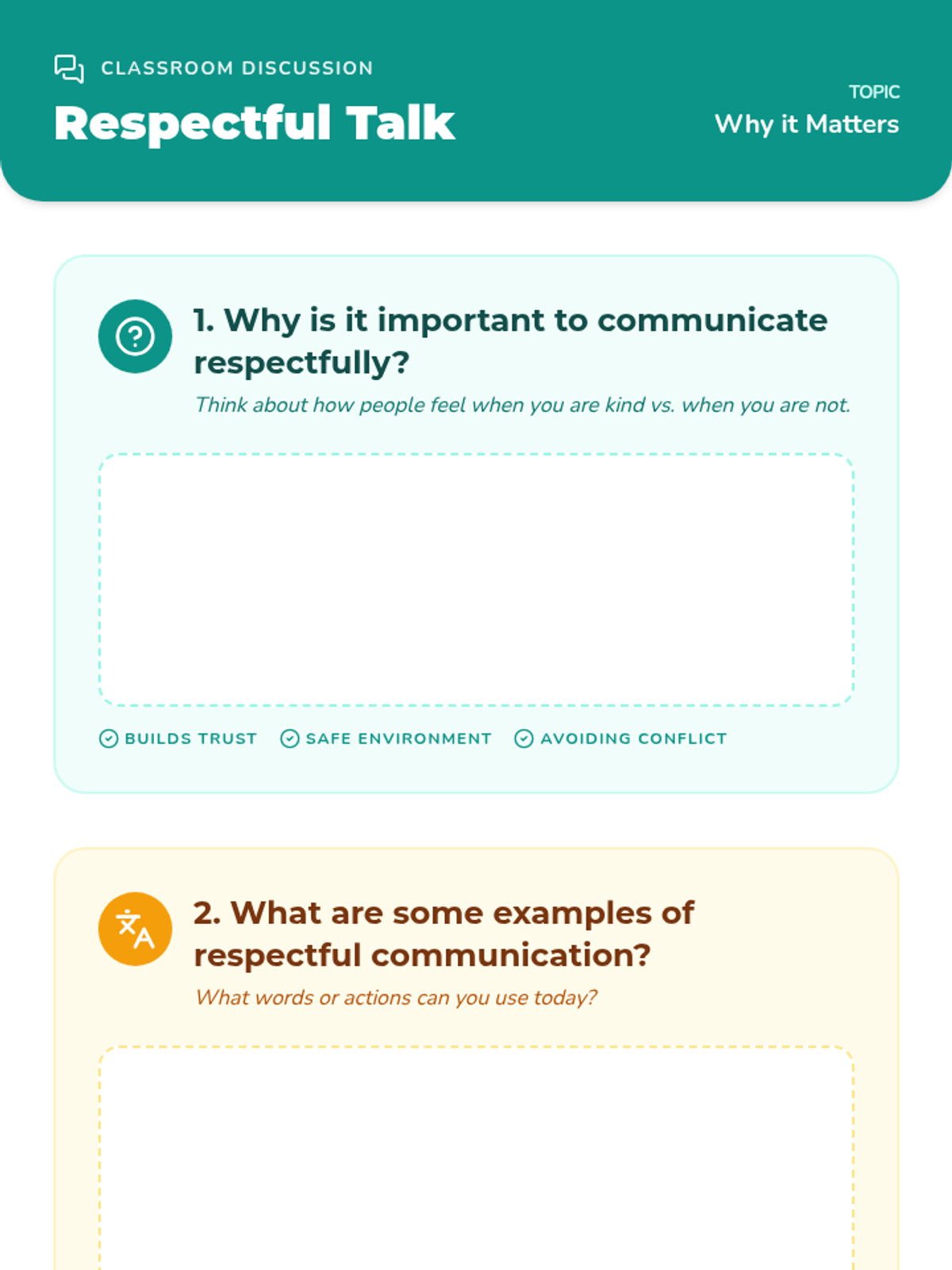 A toolkit designed to help students with expressive language challenges engage meaningfully in group discussions while remaining focused on the core topic.