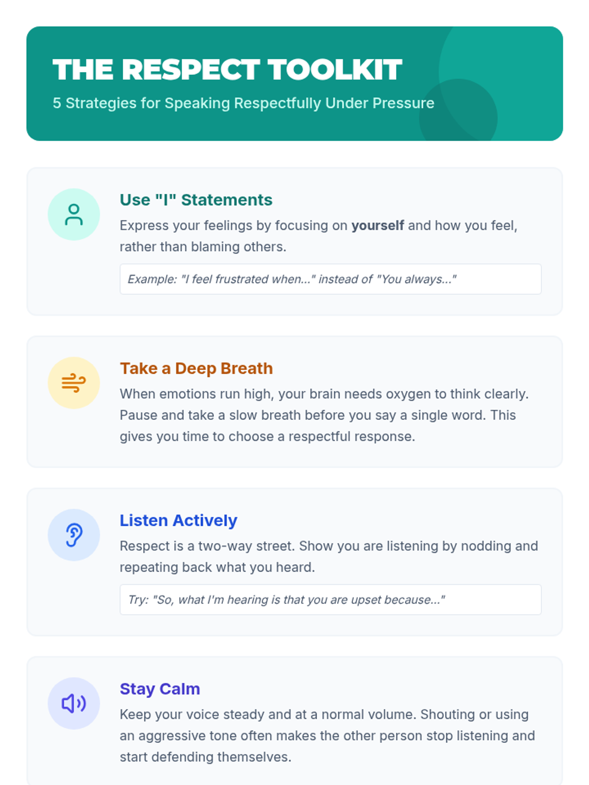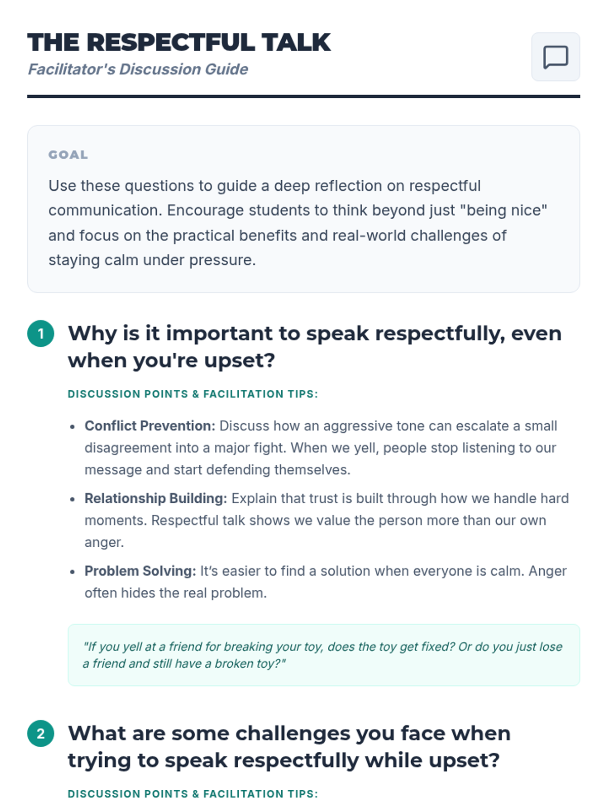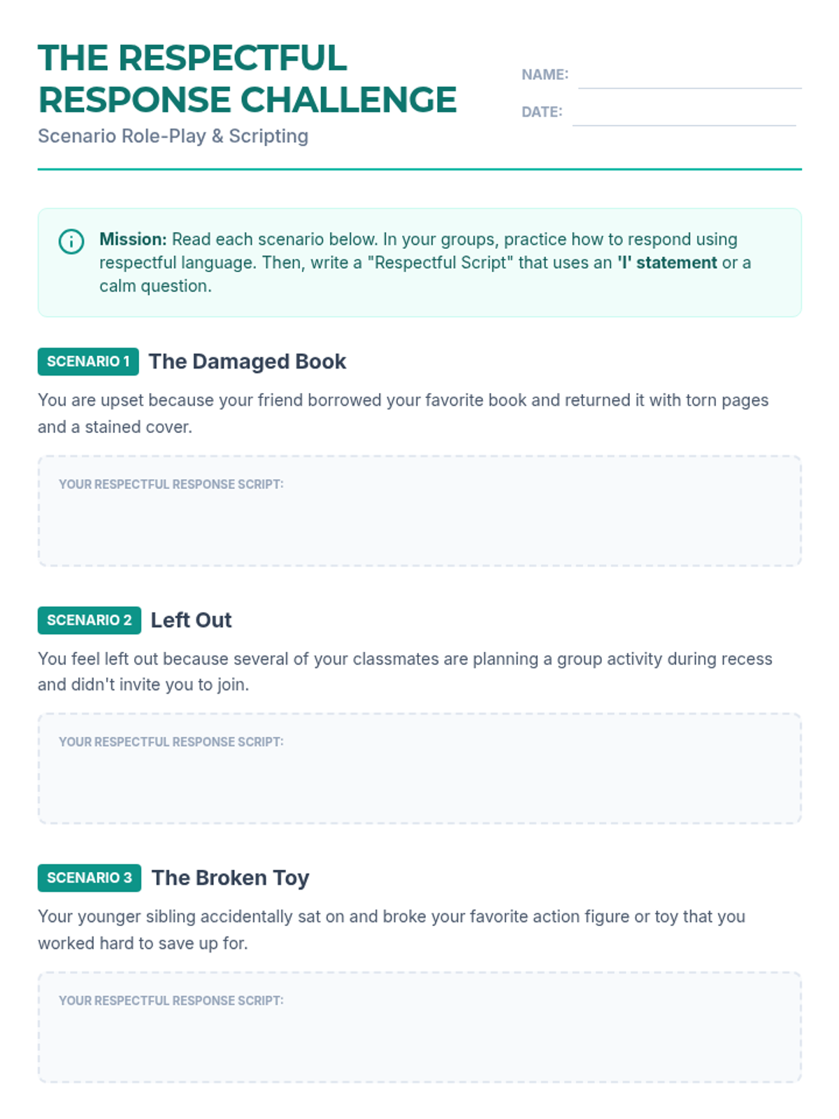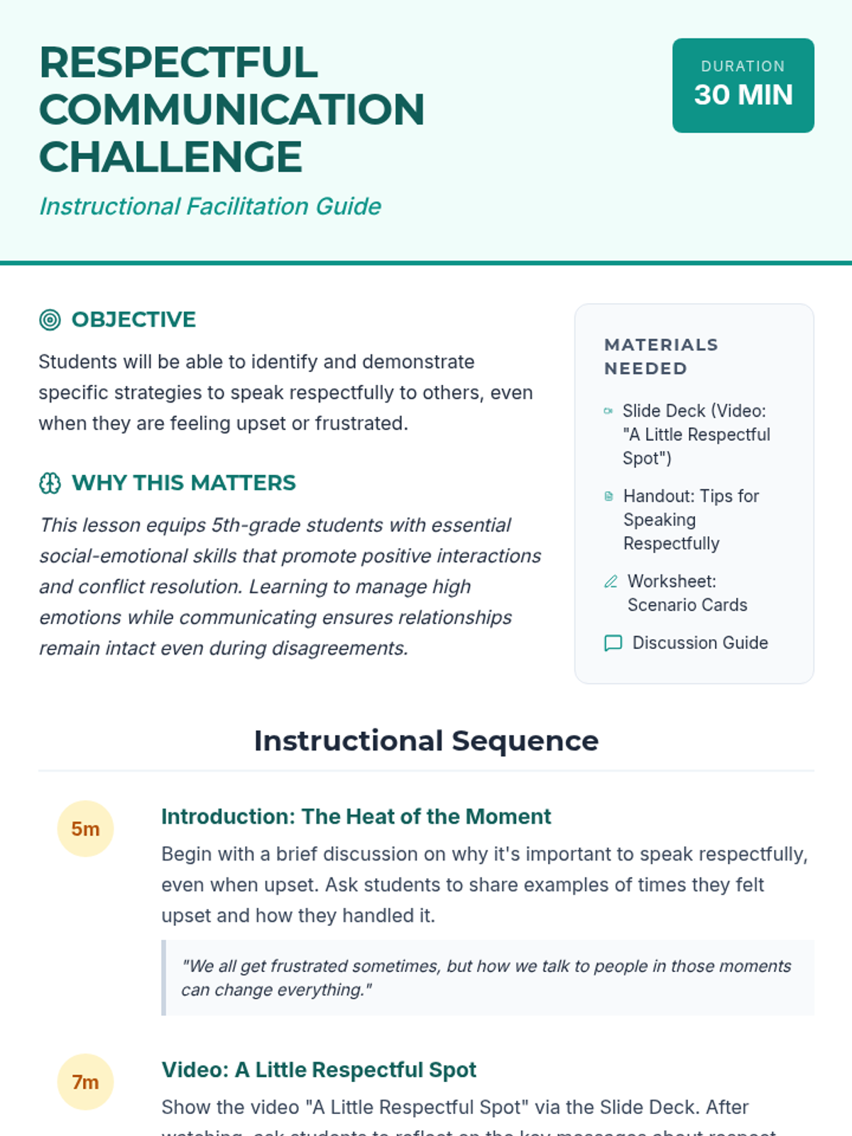A 5th-grade social-emotional learning lesson that uses a challenge-based approach to teach students how to maintain respectful communication even when feeling upset or frustrated.
