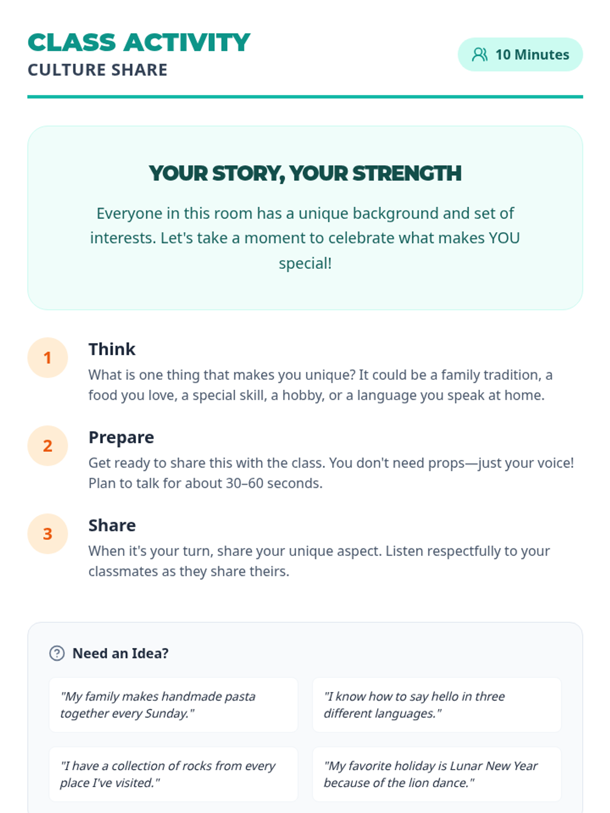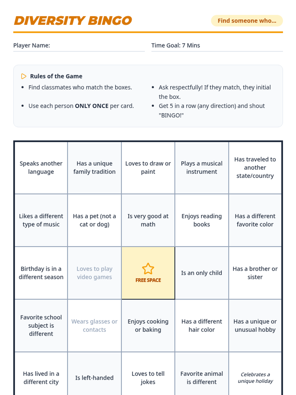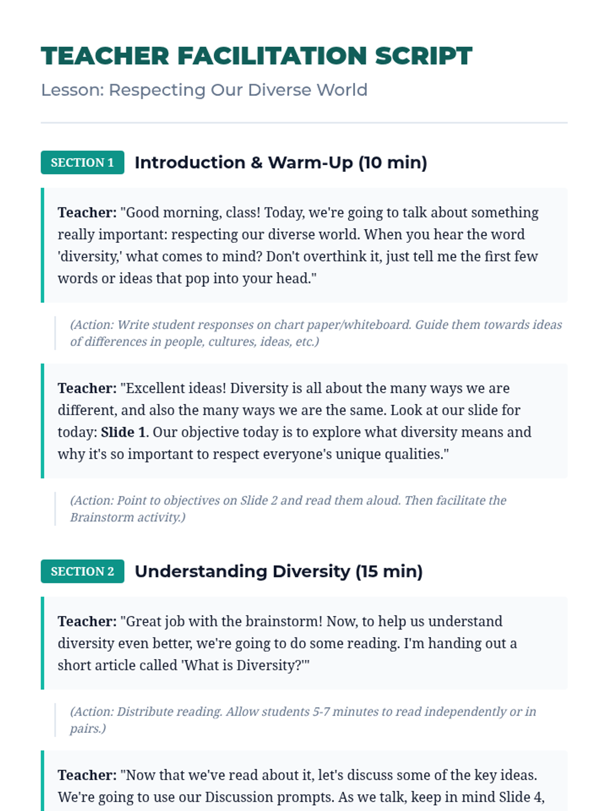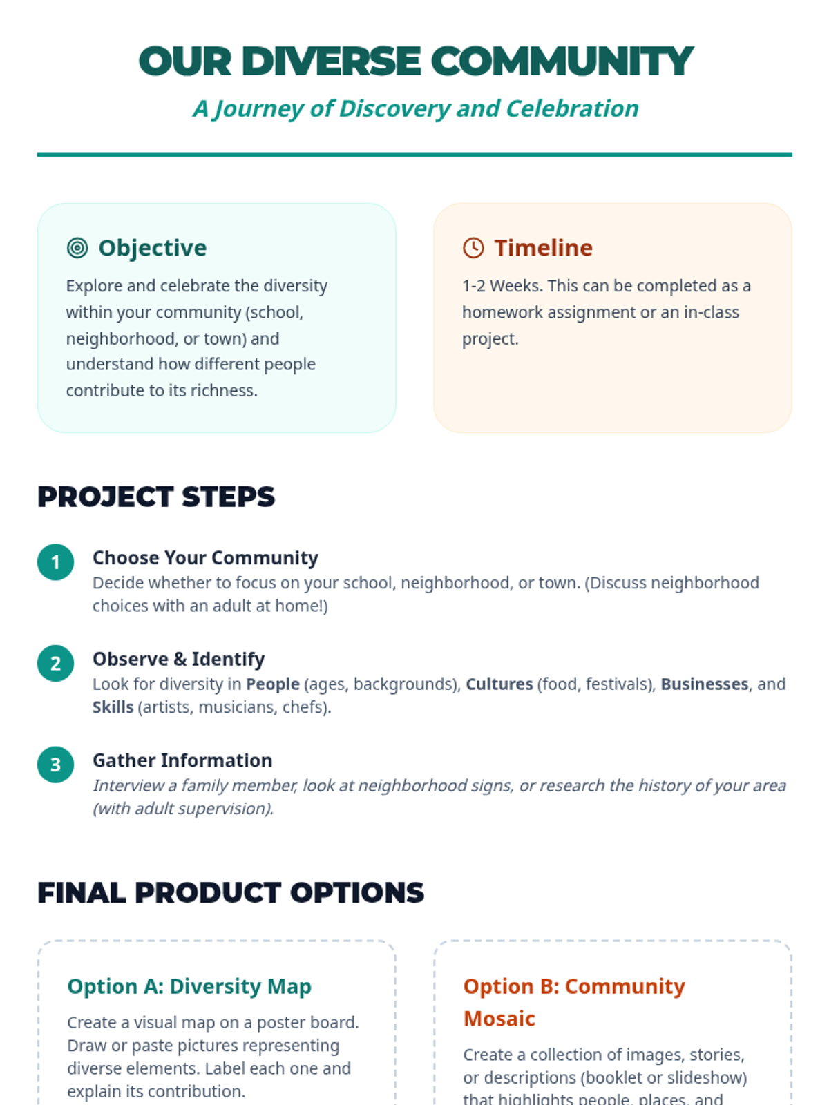 This lesson helps students explore the meaning of diversity, celebrate unique backgrounds, and develop empathy and respect for all people through interactive activities and reflection.