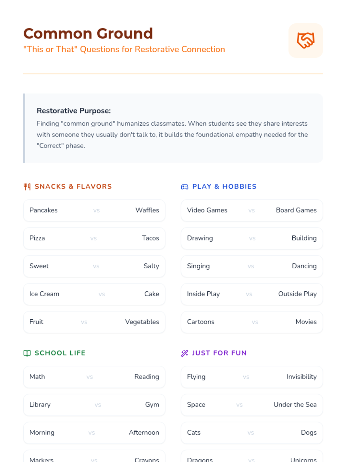 A comprehensive professional development session for elementary teachers on implementing restorative practices, focusing on building community through the Connect, Correct, and Consequence phases.