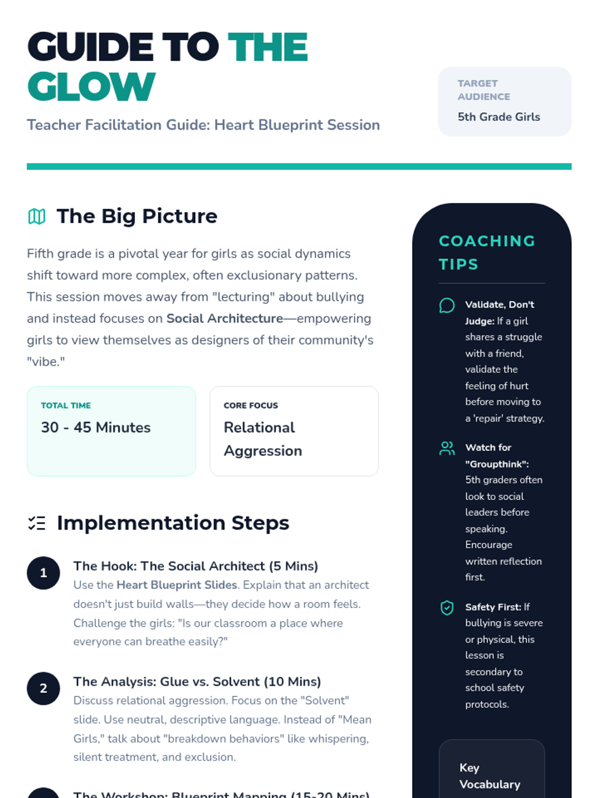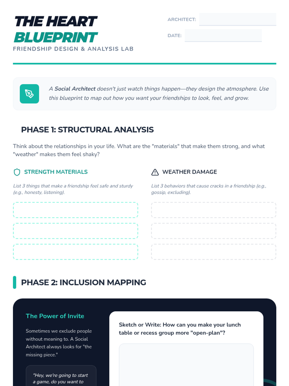 A social-emotional learning lesson designed for fifth-grade girls focusing on empathy, bullying prevention, and building respectful relationships through a 'social architect' lens.