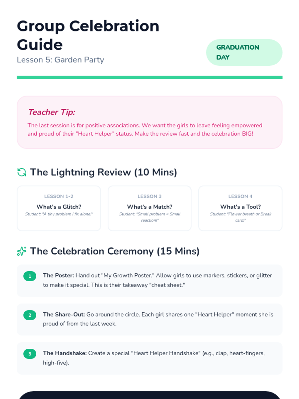 A cumulative review lesson where students create a personalized "Calm Plan" and celebrate their growth.