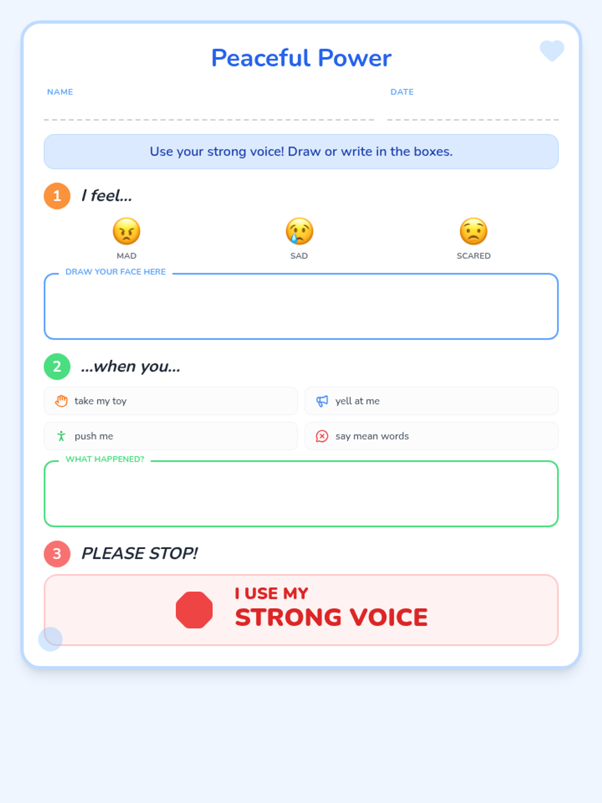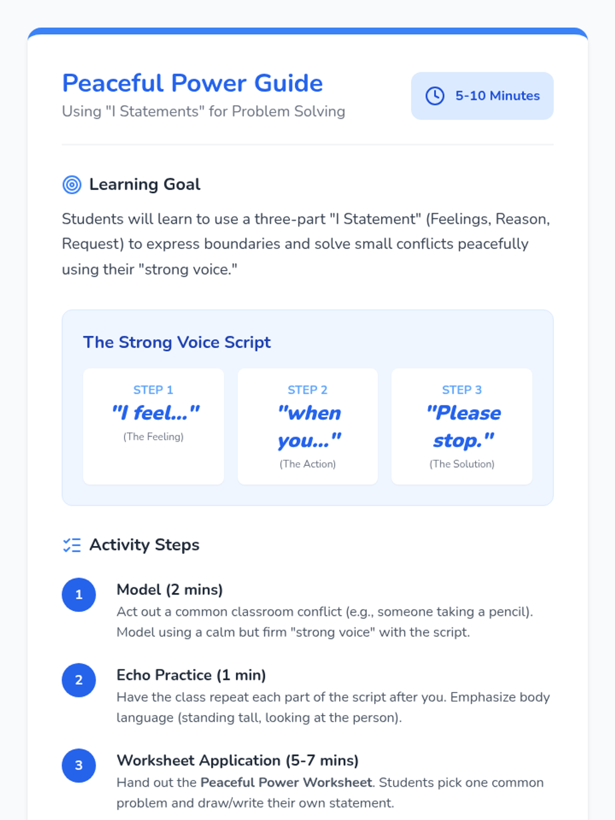 A quick 5-10 minute activity to teach kindergarteners how to use 'I statements' to express their feelings and set boundaries peacefully.